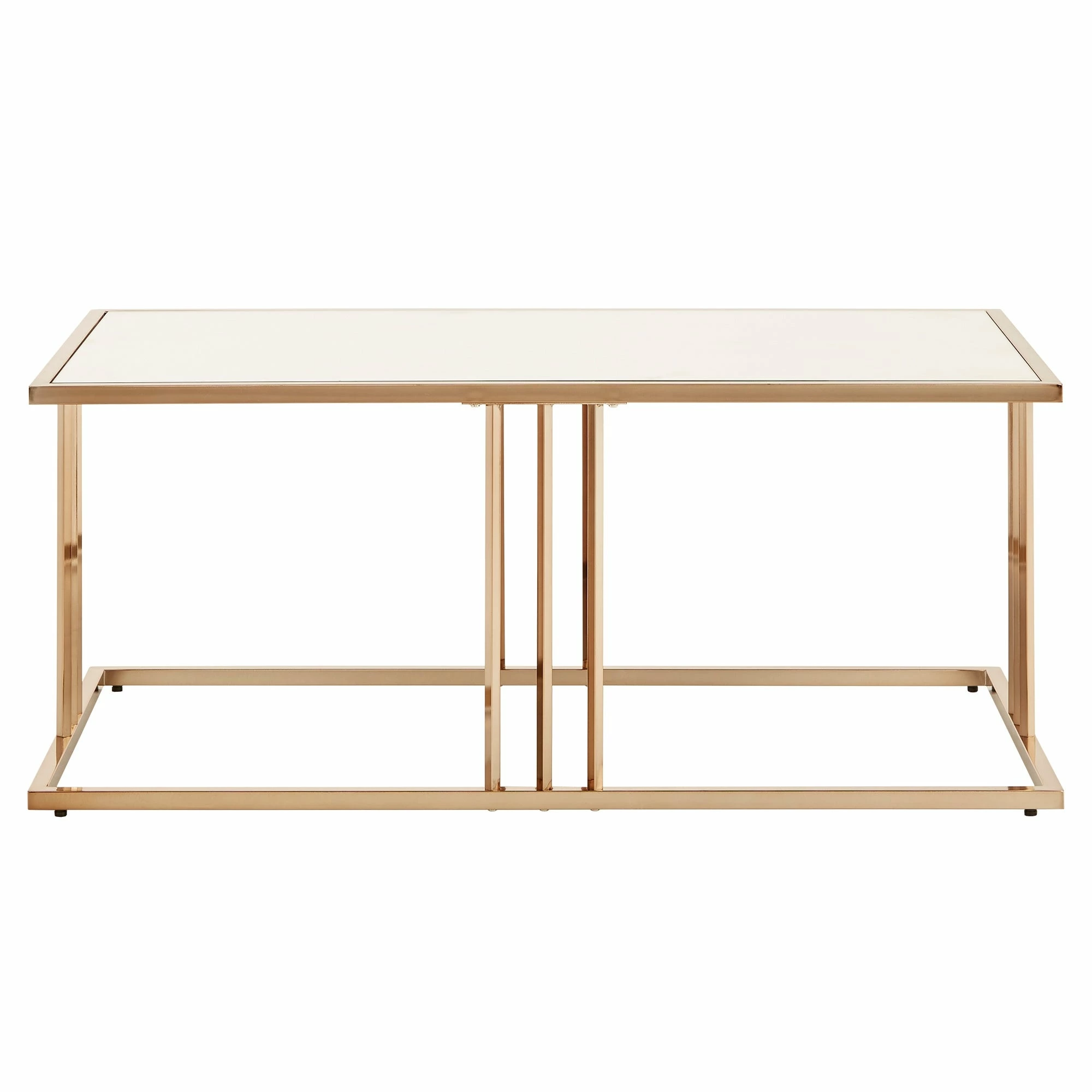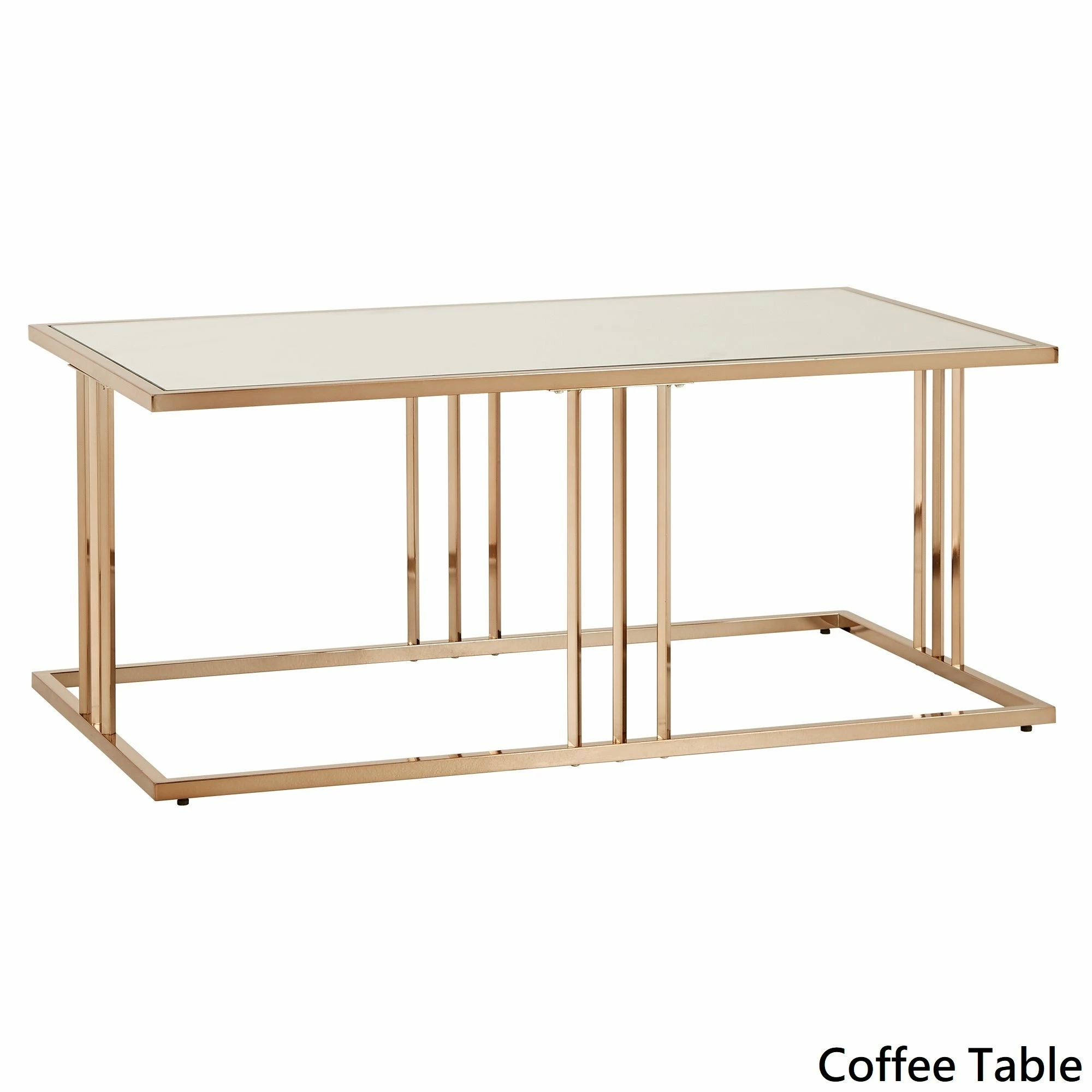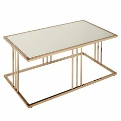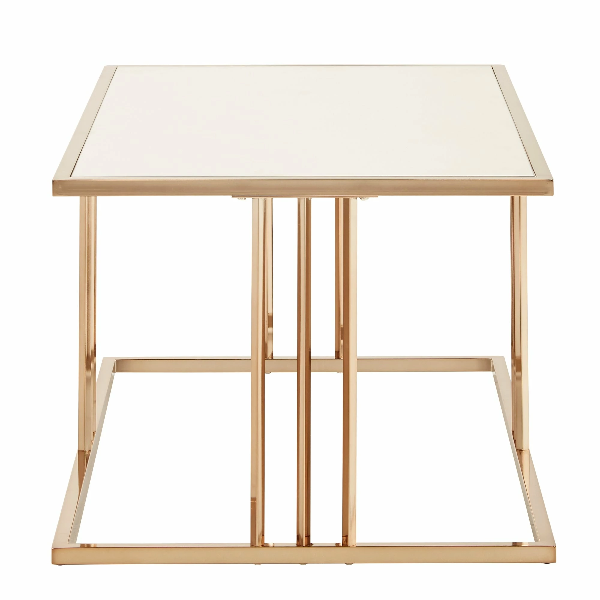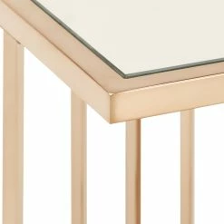 The perfect addition to an upscale, themed space, the iNSPIRE Q Maddison champagne gold finish end table brings serious luxury to any room in your home. A beautiful mirrored table top is connected to the bold metal base with a shiny, champagne gold frame that features three parallel bars on each table side. Place this collection in your home for a sophisticated, glam style that’s sure to make a statement.