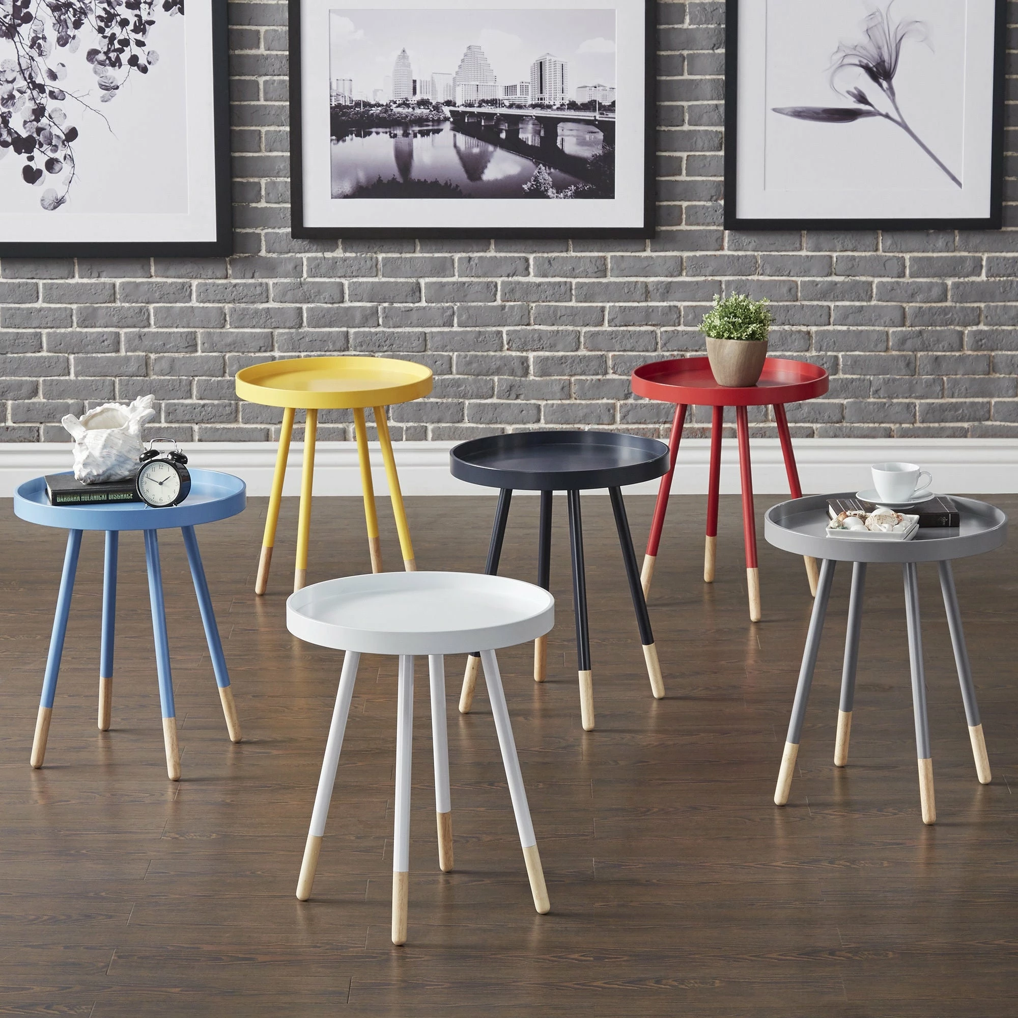 Inject color and convenience into your living space with this stylish Marcella side table from iNSPIRE Q Modern. The table features a tray-style top with a rim to keep items secure, and four spindle legs that add traditional appeal to the design. The chic table is available in a variety of trendy colors with natural finish feet for a paint-dipped look that emphasizes casual elegance.