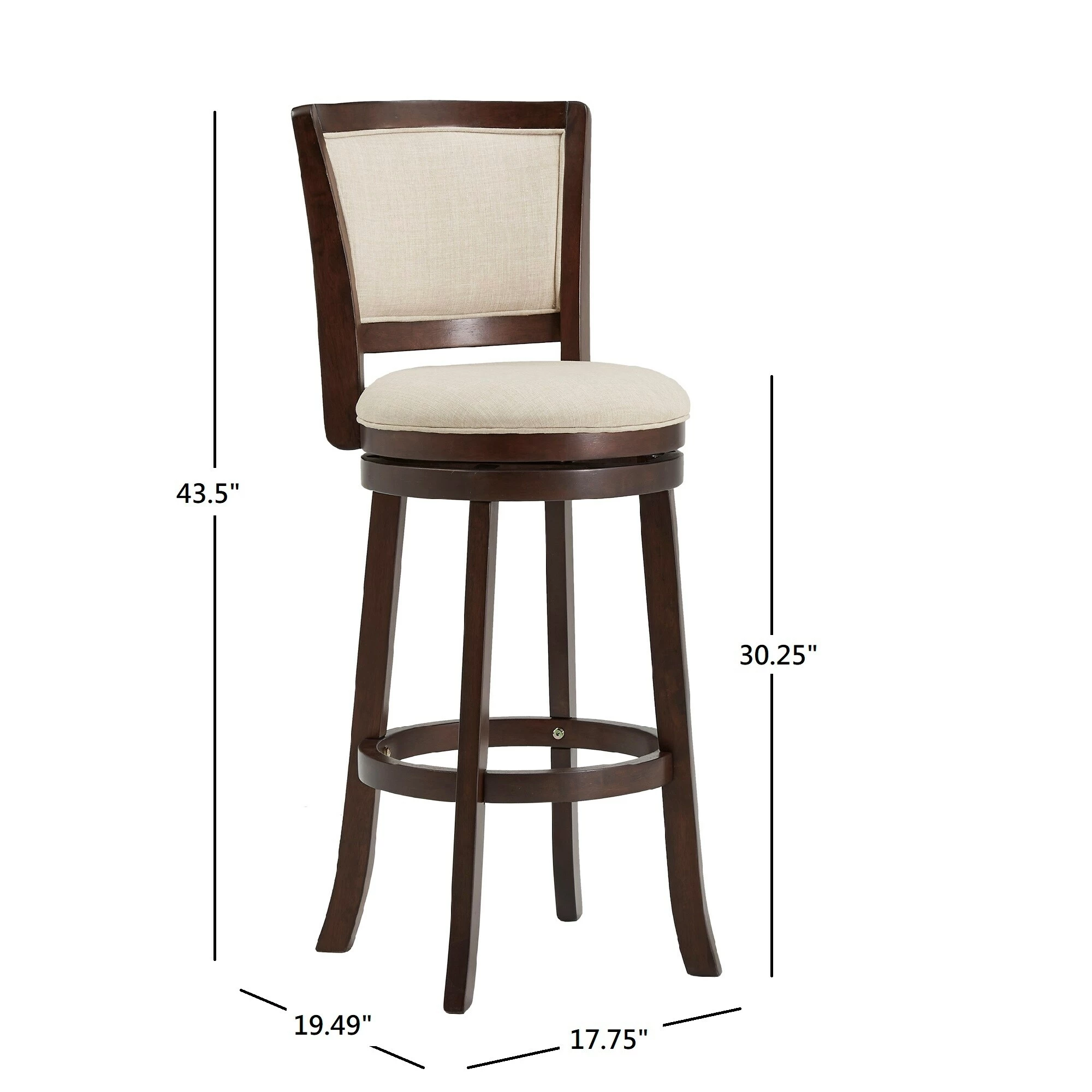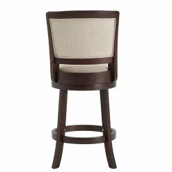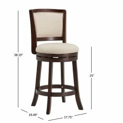 There is no better companion to your counter or bar than the Menas Dark Cherry Finish Beige Linen Swivel Chair from iNSPIRE Q Classic. This traditional chair radiates sophistication with the beige linen cushioning and dark cherry finish. Sit comfortably on the upholstered seat and lean against the contoured backrest provided for ultimate relaxation. The swivel feature makes conversations light and breezy. A sturdy wooden construction promises strength and resiliency throughout everyday use.