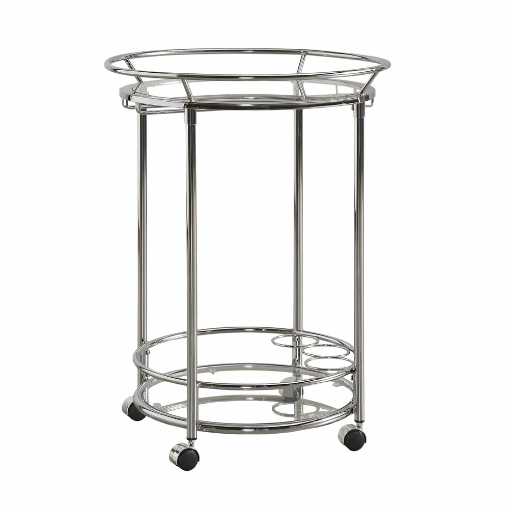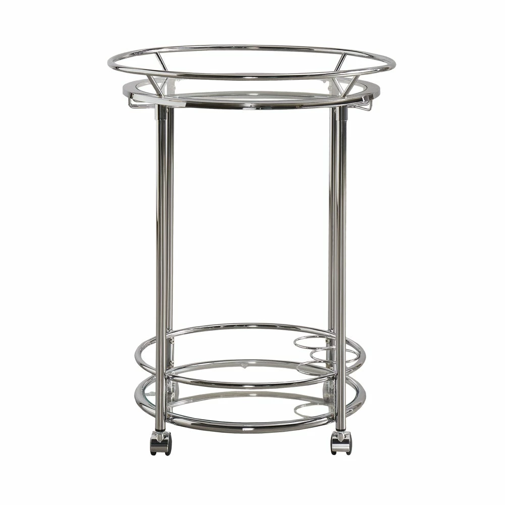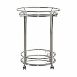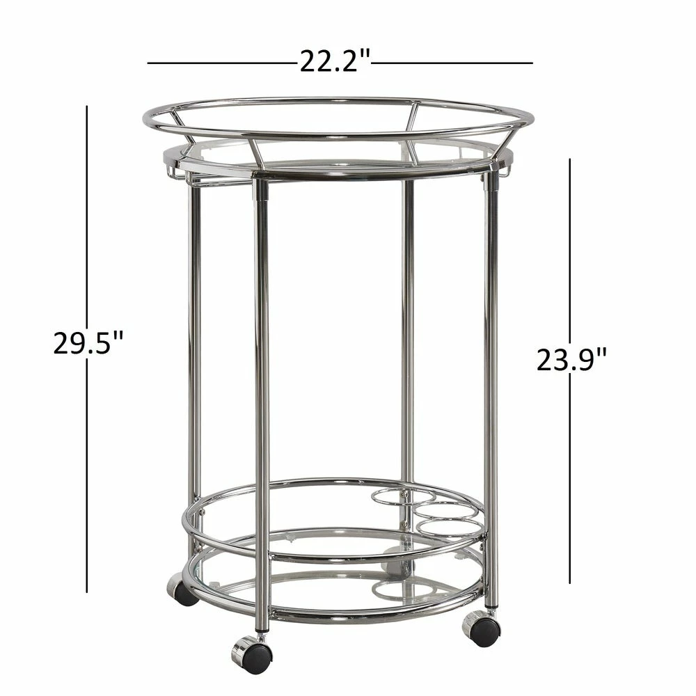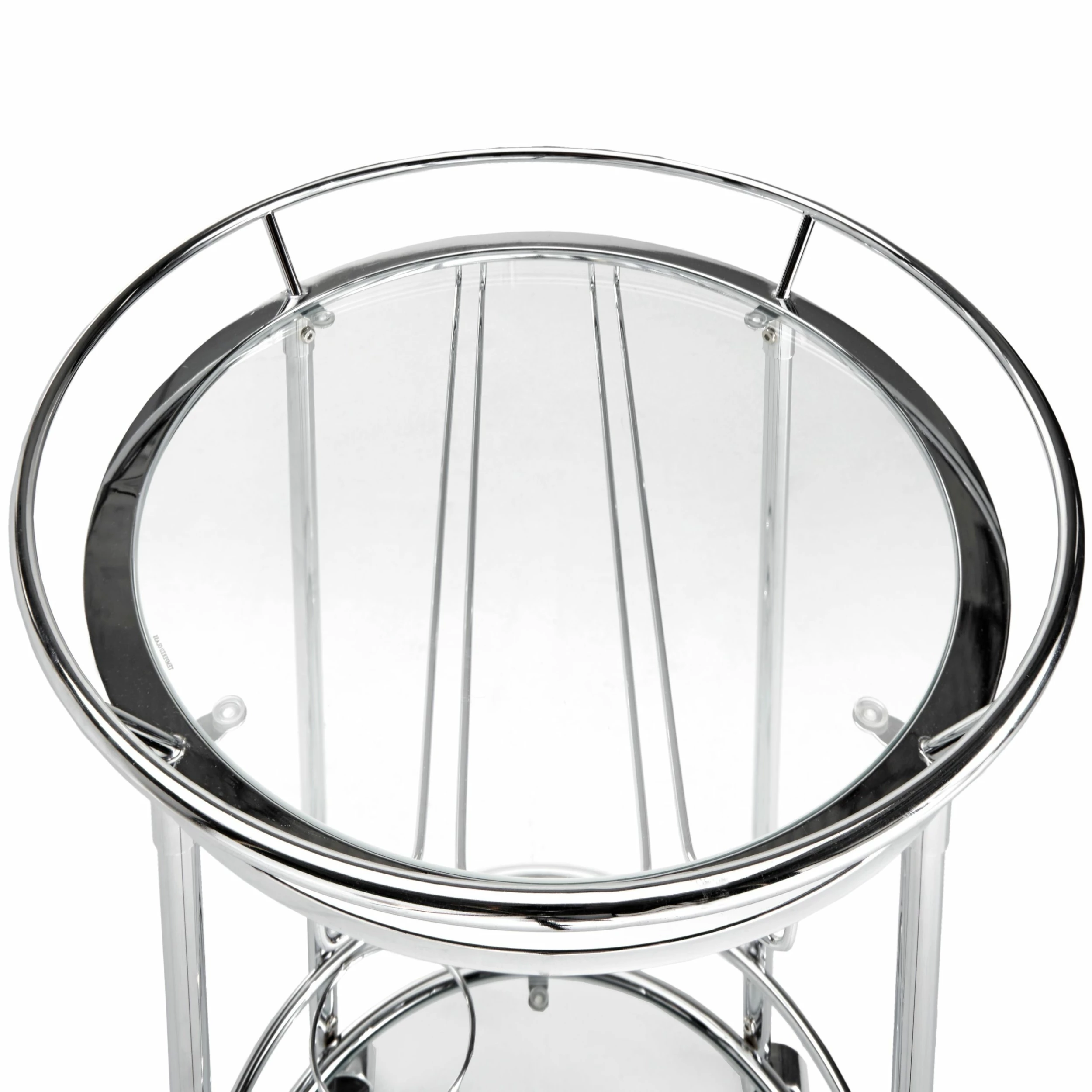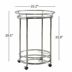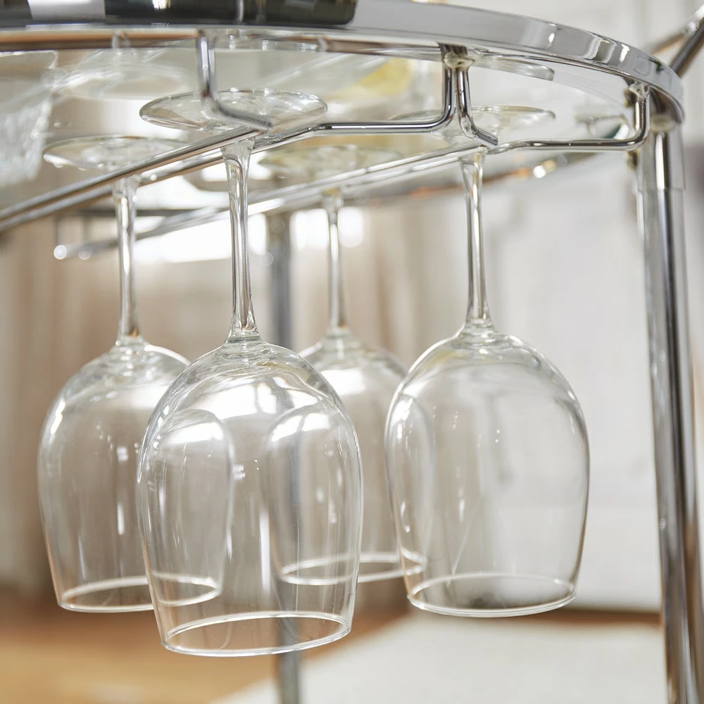 With striking style and a compact size, the Metropolitan Bar Cart from iNSPIRE Q Bold is functional and chic. Clean and simple with a touch of glam, this piece is sure to make a statement with your guests. Uncomplicated lines and a chrome finish create a sleek, modern look that will match an array of contemporary design schemes.