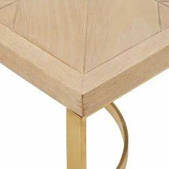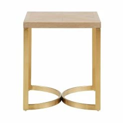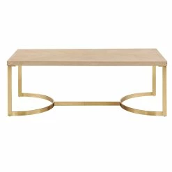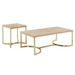 Make your living room the most stylish and sophisticated room of your home with the addition of the Minato Natural Finish and Gold Table Set from iNSPIRE Q Bold. Choose from a coffee table or a set that includes a coffee table and a matching end table. Both pieces of this set are built to last with a construction consisting of oak, veneer, and stainless steel. The oak and veneer table tops display an artful, natural wood grain finish that is beautifully complemented by the shiny gold metal base for a refined look of elegance.