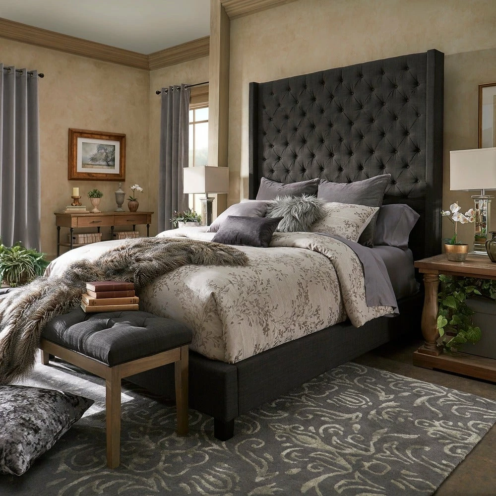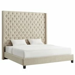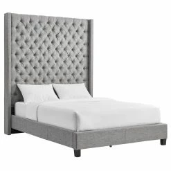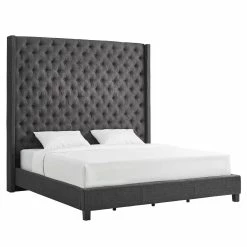 With a tall, sweeping silhouette rife with the classic elements of traditional styling, this platform bed is sure to please. A handsome wingback headboard makes the bed the centerpiece of your bedroom, giving off a sophisticated air. The sturdy frame is finished with espresso legs for a sleek and rich accent.