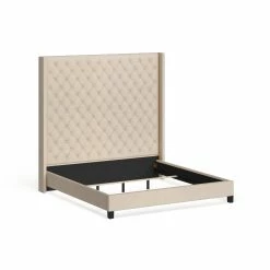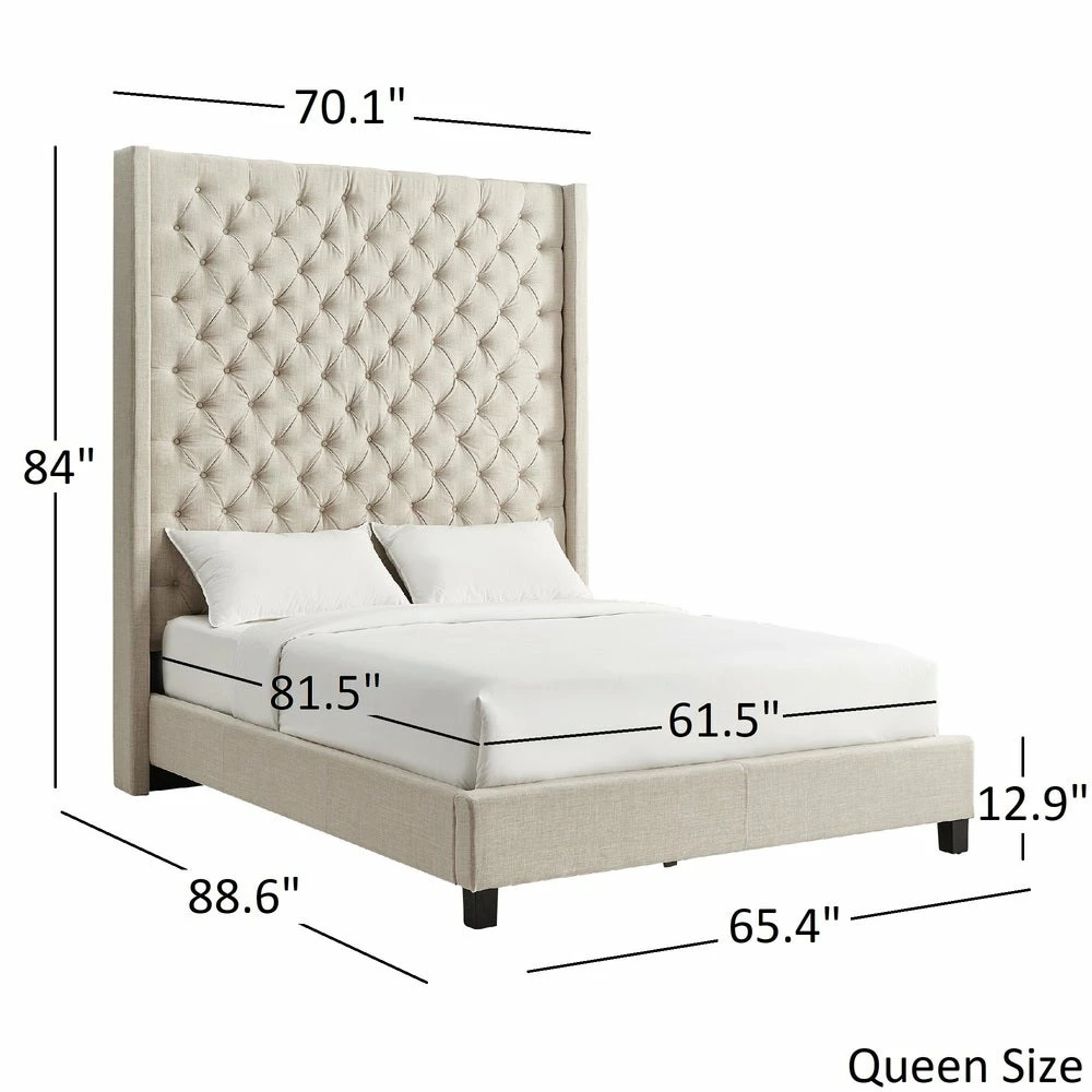 Surround yourself in plush comfort with the Naples Wingback Button Tufted High Headboard Bed by iNSPIRE Q Artisan. The extra tall, button-tufted, wingback headboard makes your bed the centerpiece of your room. The linen upholstery are the perfect backdrop for your unique bedding. The sturdy frame is finished with espresso finish legs for a beautiful combination of function and style.