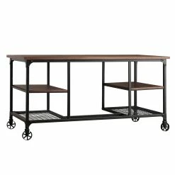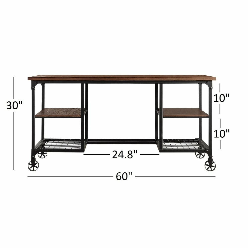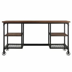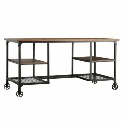 Store all of your papers, books and other materials with the Nelson Rustic Industrial Desk from iNSPIRE Q® Classic. A perfect addition to any home office, living room or bedroom, this versatile piece includes four shelves as well as ample table space, giving you plenty of room to work. The industrial styling of this desk includes a combination of poplar wood and metal for a truly rustic vibe.