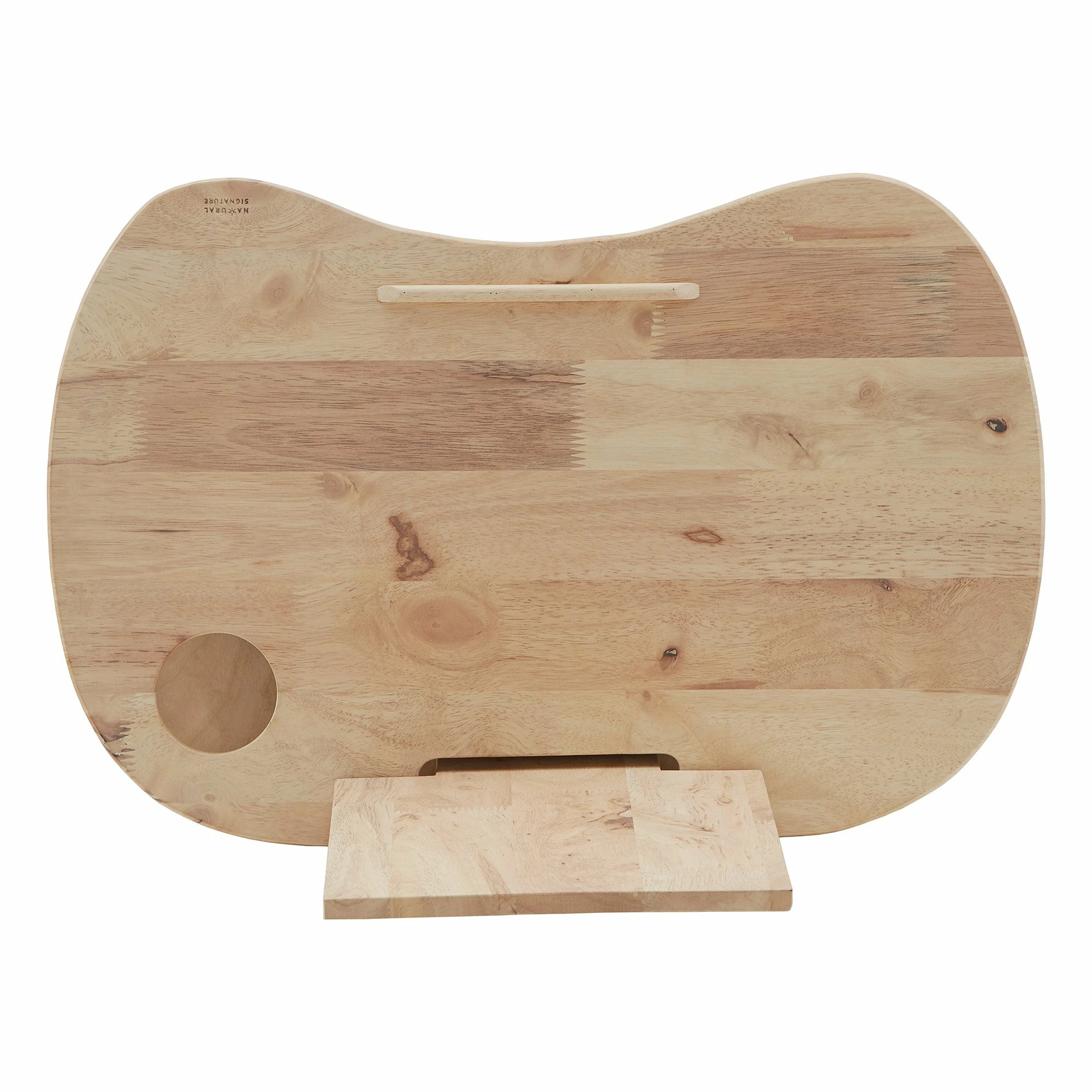 Meet the ultimate portable lap desk! This versatile workstation is perfect for everything from studying to surfing the web. It features a cushioned, ergonomic design to keep you comfortable while you work. The included stand panel makes it easy to set up your tablet for work or watching your favorite shows. Don’t worry about your drink going dry – the cup hole ensures that your drink stays secure. Plus, the edge-stopper keeps objects from sliding off. Whether studying, surfing the net, or just taking a break on a couch or your bed, the 22″ Wide Lap Desk with Stand Panel is the perfect place to get things done.