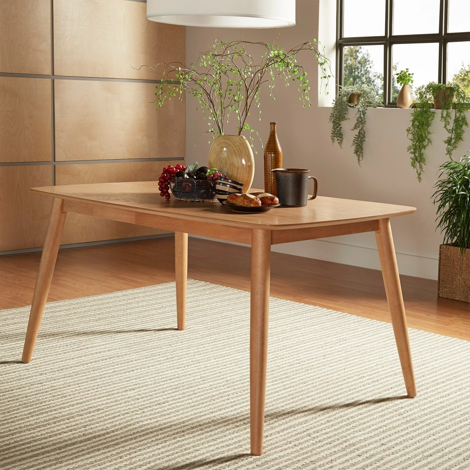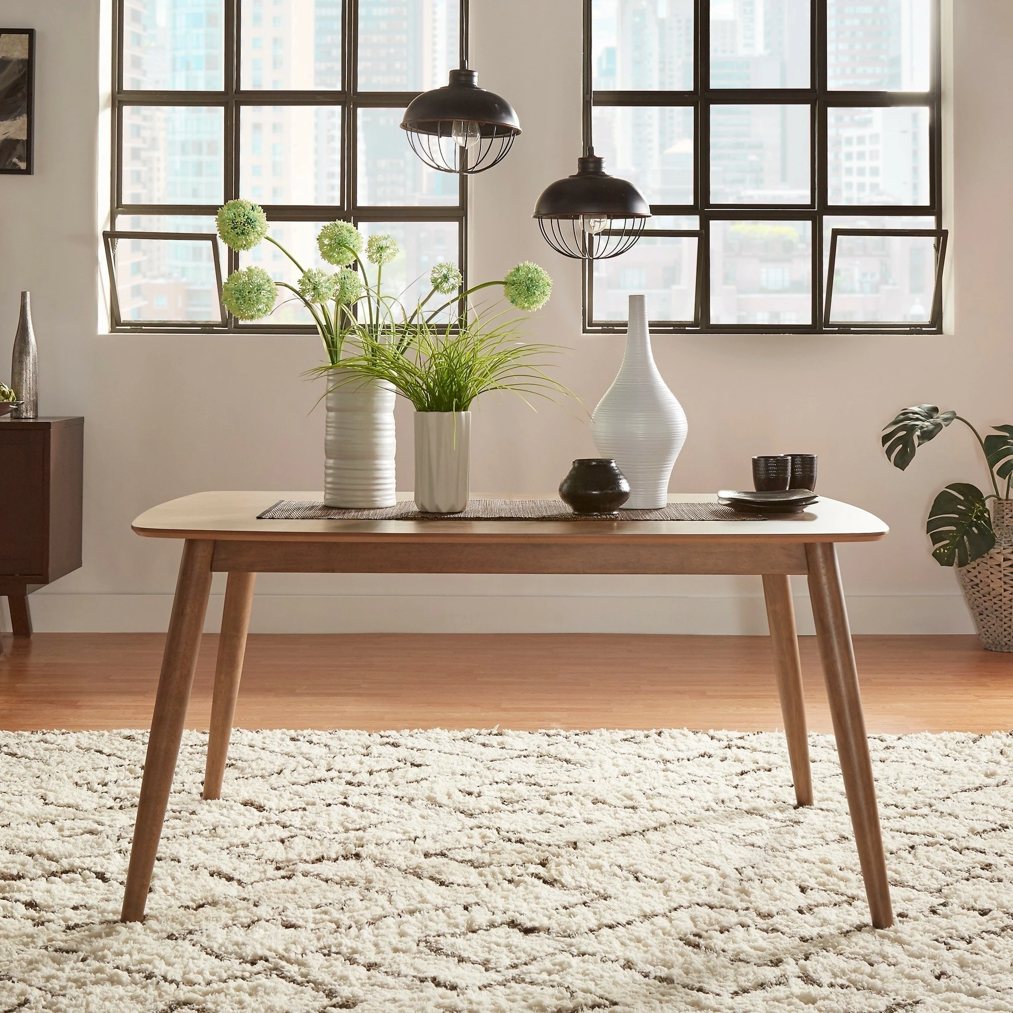 Bring the beauty of beveled edges, sleek angled legs and natural finishes to your mid-century dream dining room with the Norwegian Mid Century Dining Table from iNSPIRE Q® Modern. Fits into most areas effortlessly and will be a stylish statement in any home with its unique presence. Accommodates up to 6 comfortably as you enjoy your favorite meal with your loved ones.