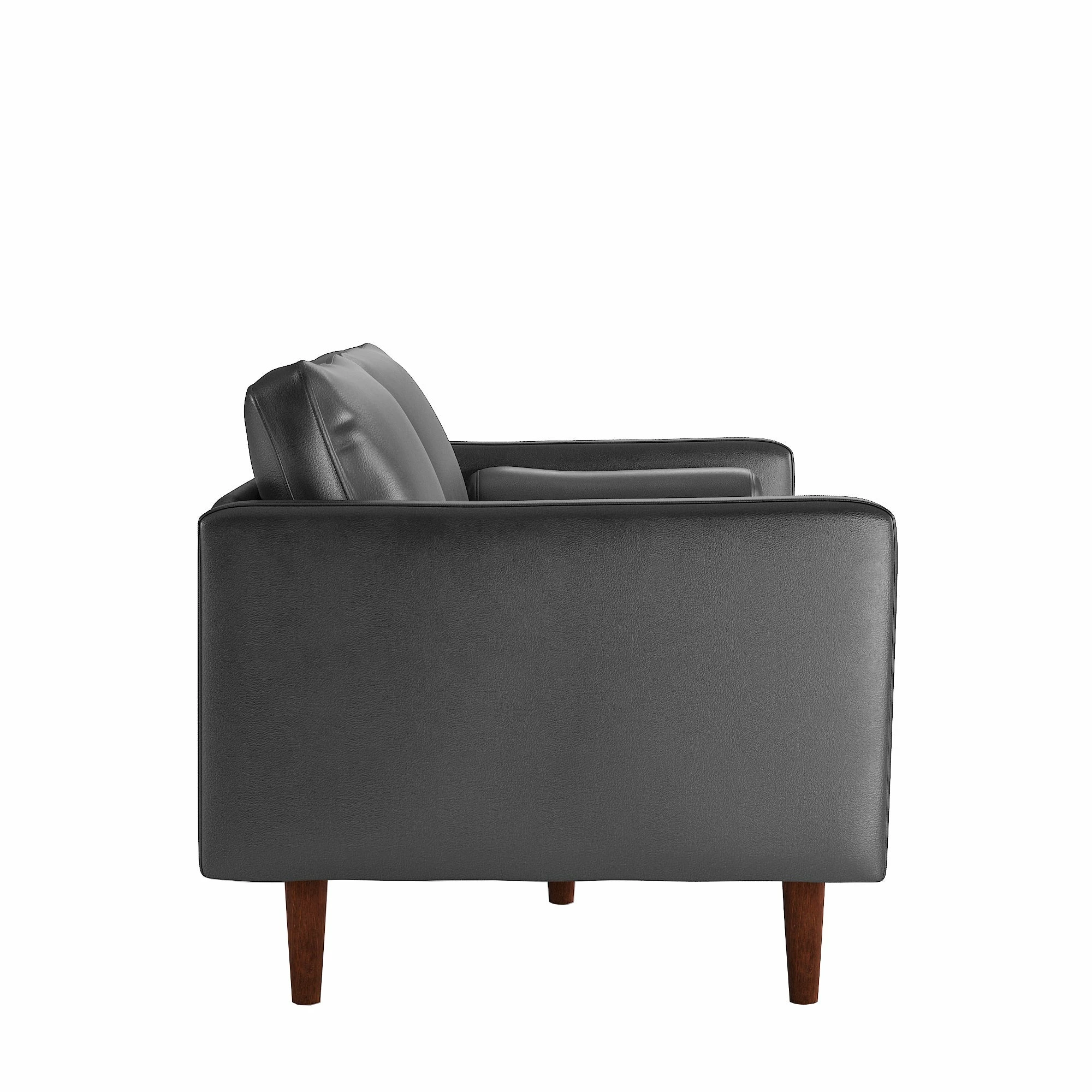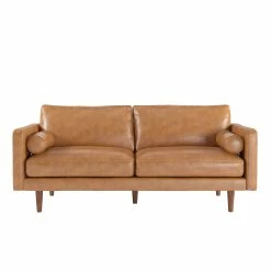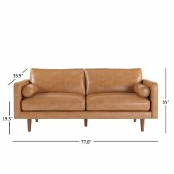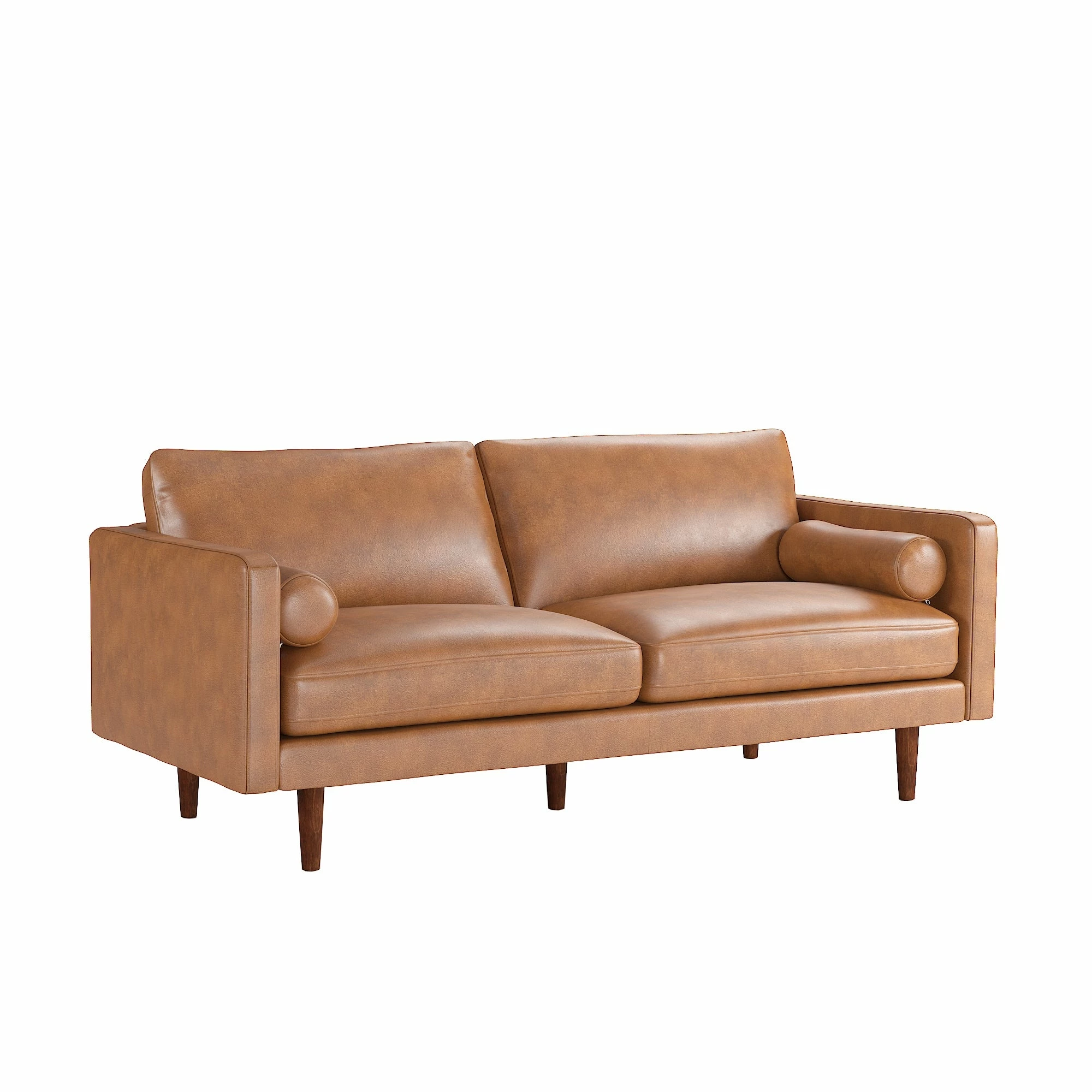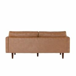Throwback to yesteryear with the Oana Mid-Century Faux Leather Sofa from iNSPIRE Q Modern. With plush round pillows and a square silhouette, this sofa delivers vintage vibes to any living room. However, this sofa can smoothly match any style or color scheme with its neutral tones of caramel or black. There’s a bit of rustic charm from the walnut finish of the tapered legs. Your body will melt into the soft faux leather upholstery while your weight is distributed evenly by the foam cushioning. This sofa is crafted from solid rubber wood, promising stability and durability every day.