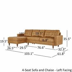 - 4-seat sofa and chaise: 103.1 inches wide x 61.8 inches deep x 35.5 inches high