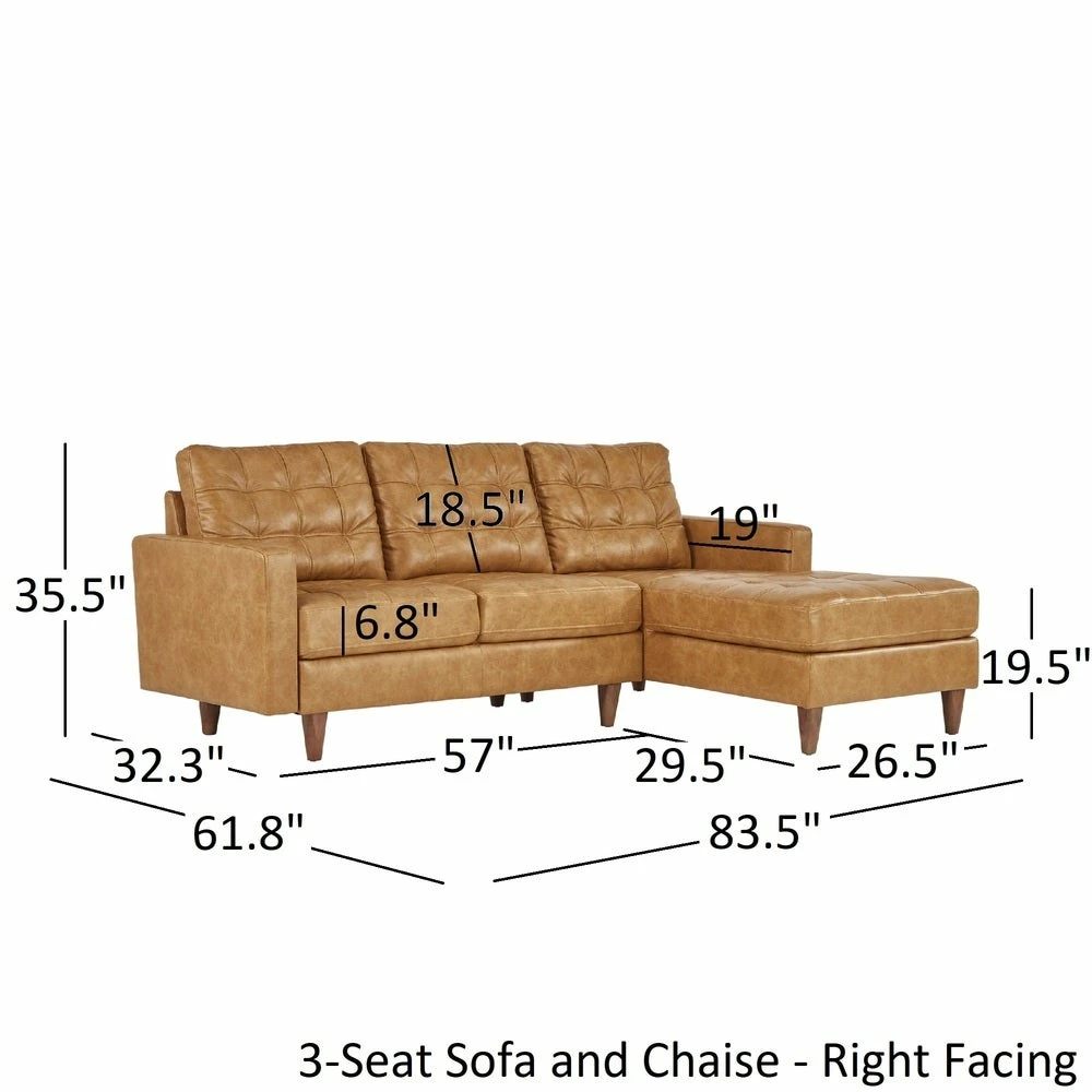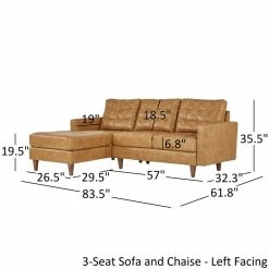- 3-seat sofa and chaise: 83.5 inches wide x 61.8 inches deep x 35.5 inches high