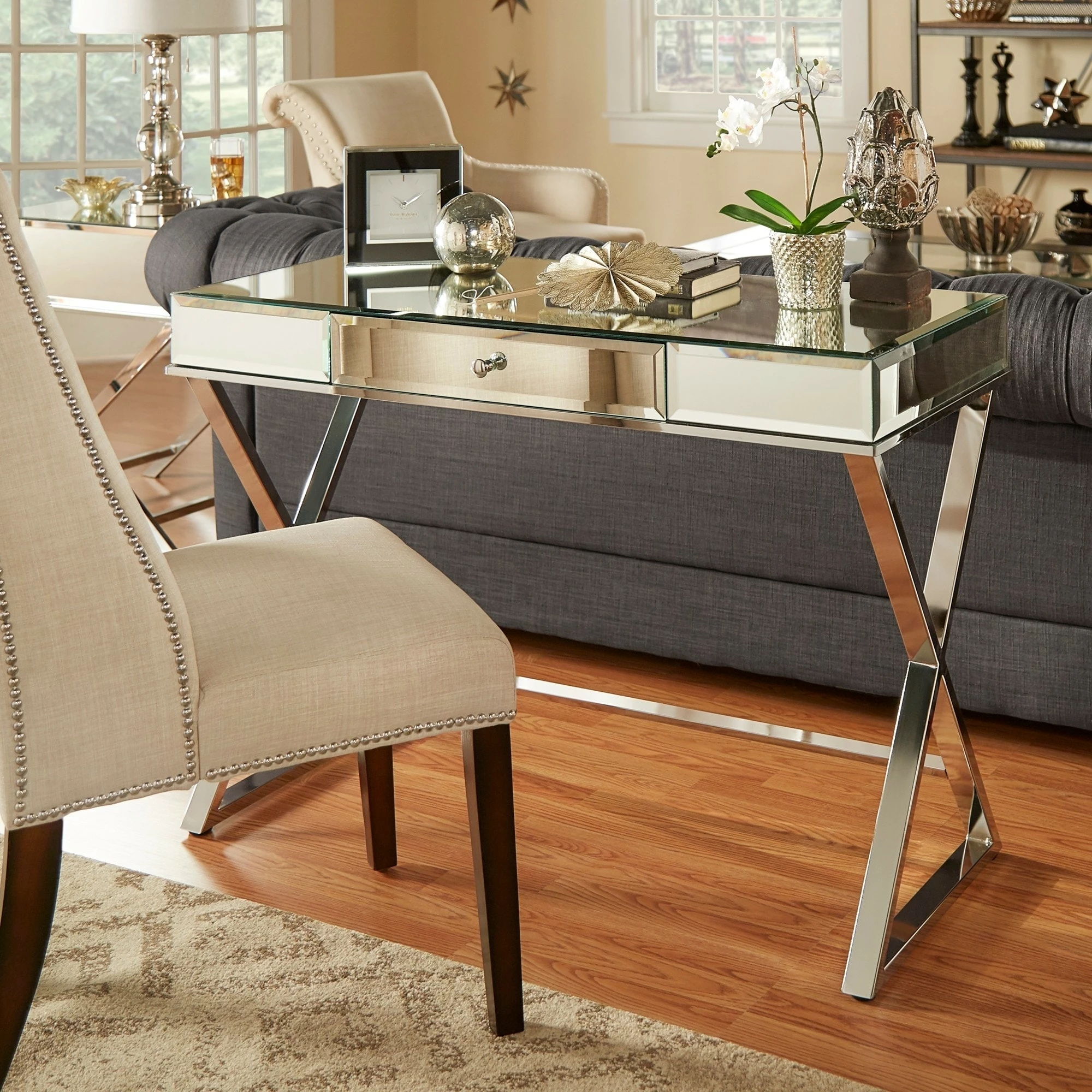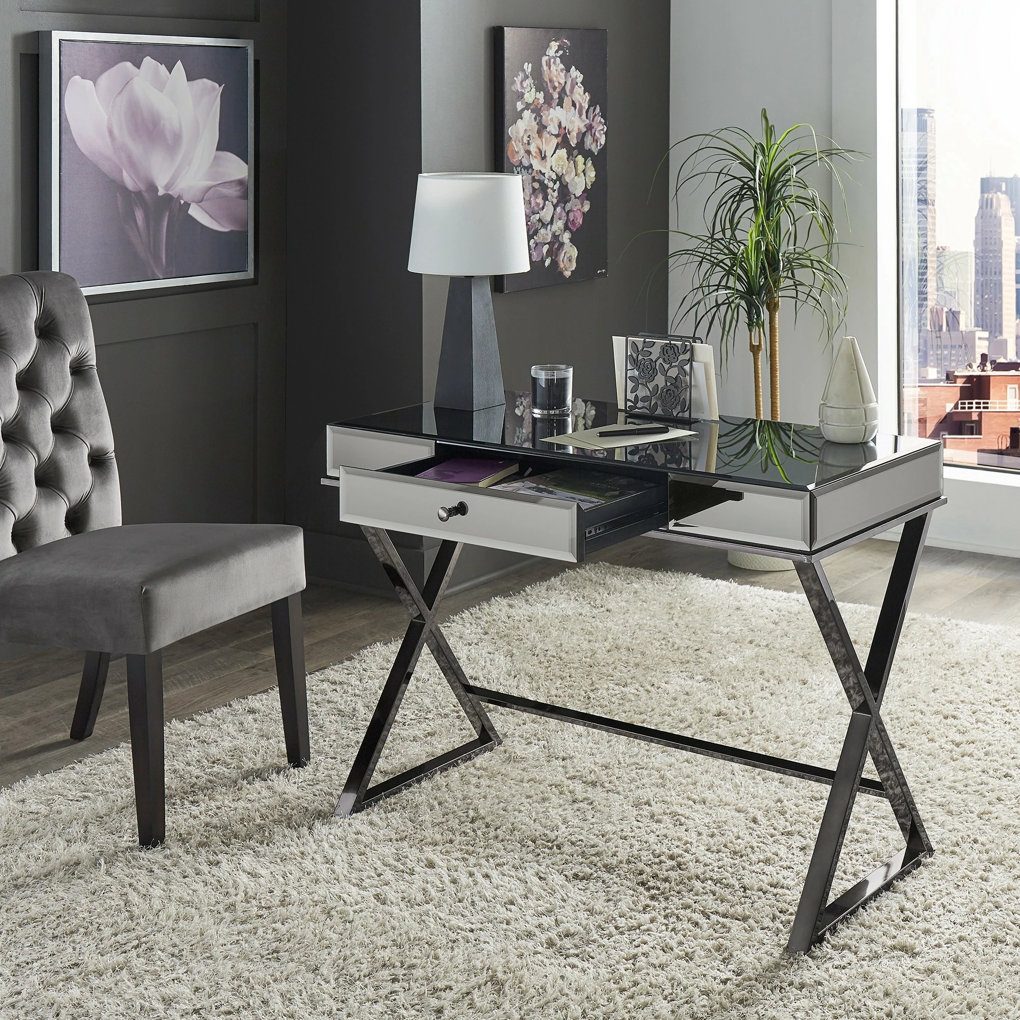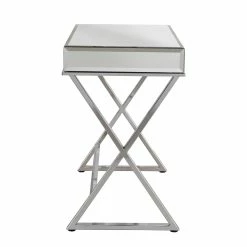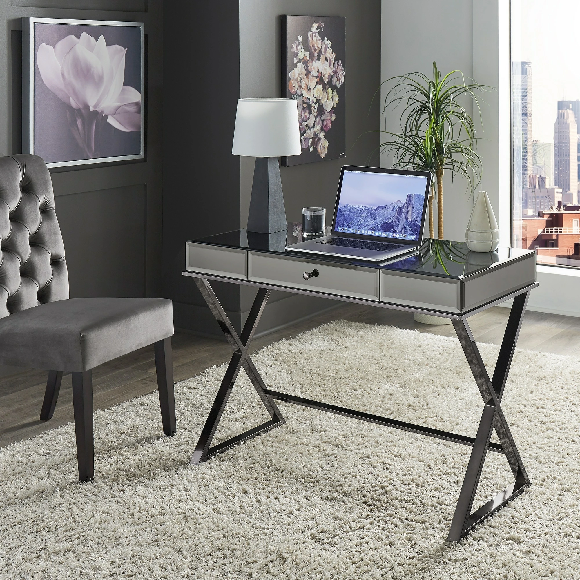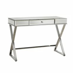 Make your bedroom look glamorous and elegant with this Omni campaign desk from iNSPIRE Q Bold. Featuring an x-shaped metallic base with a mirrored top and chrome finish, this table accentuates contemporary home décor. With a drawer to store your things, this desk crafted from MDF is highly durable and versatile.