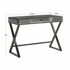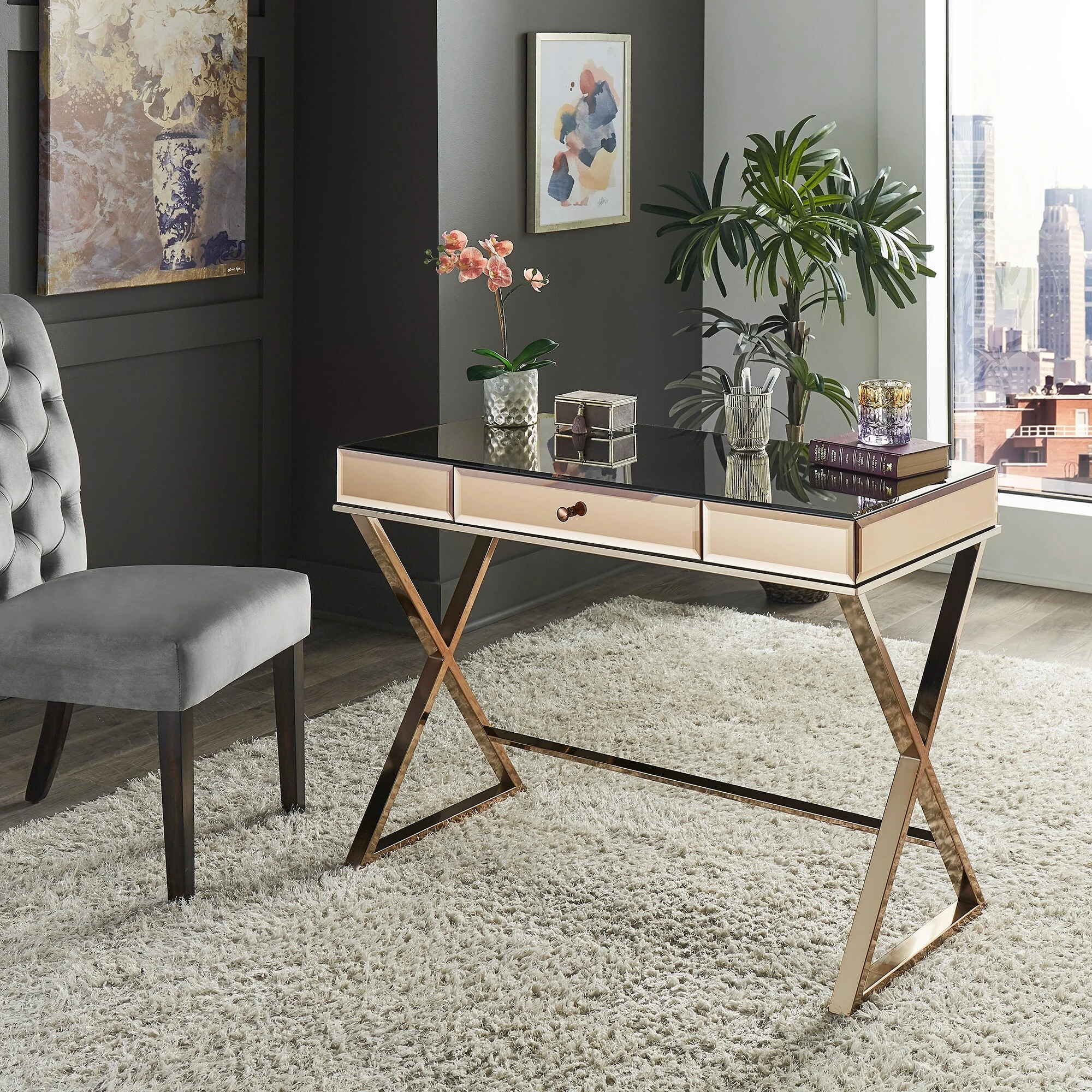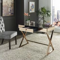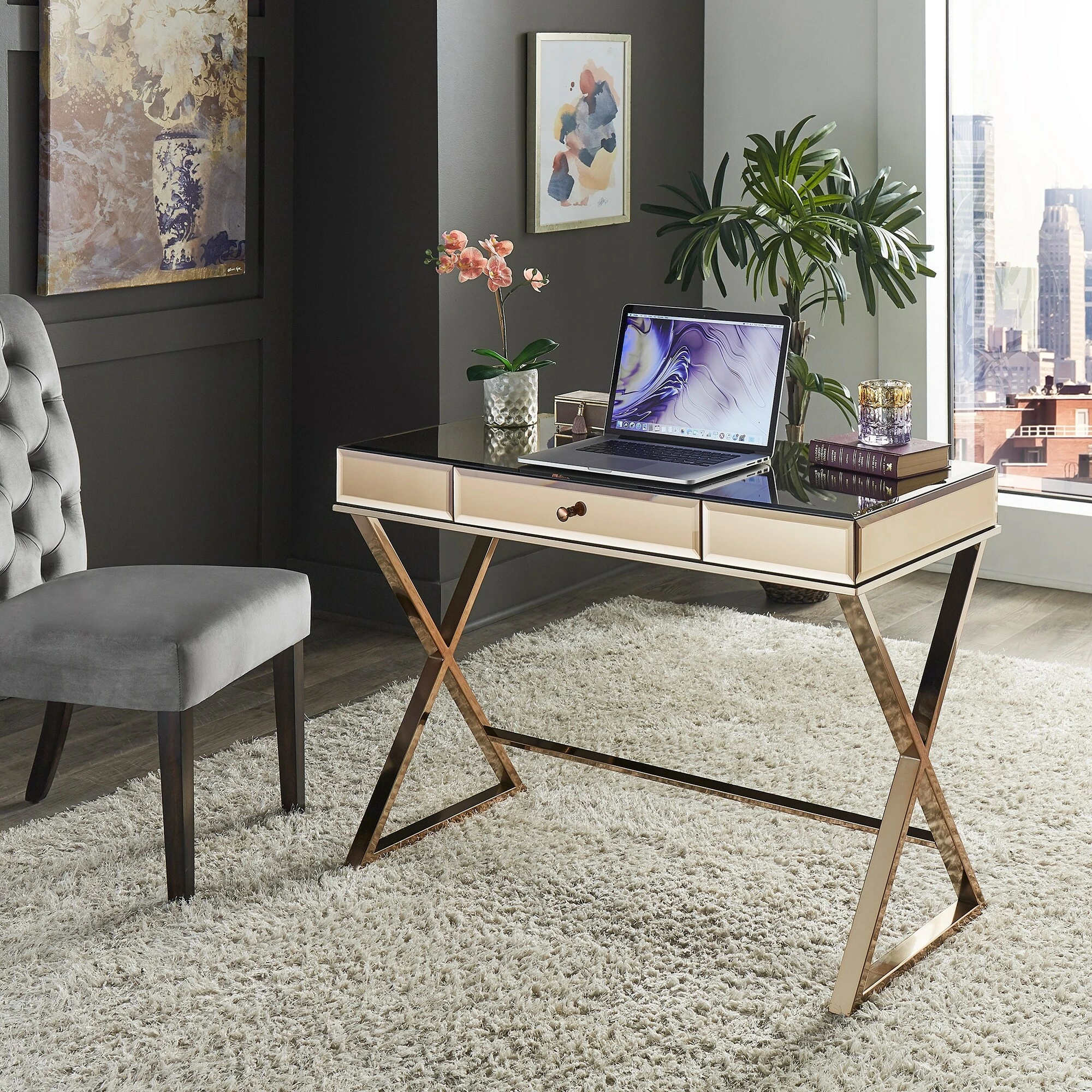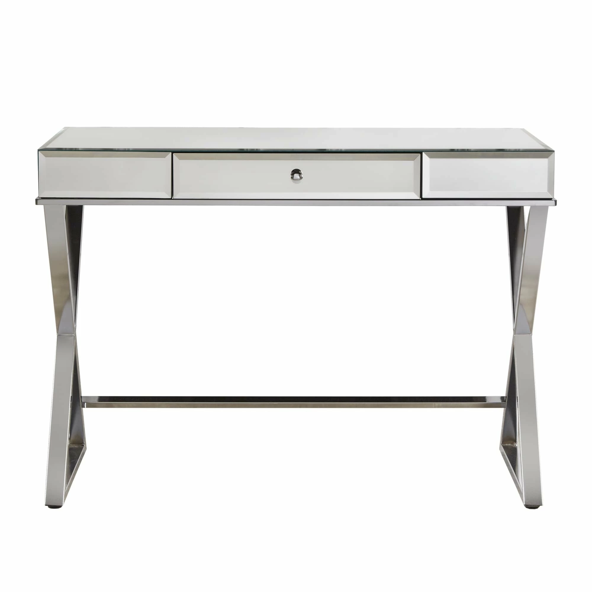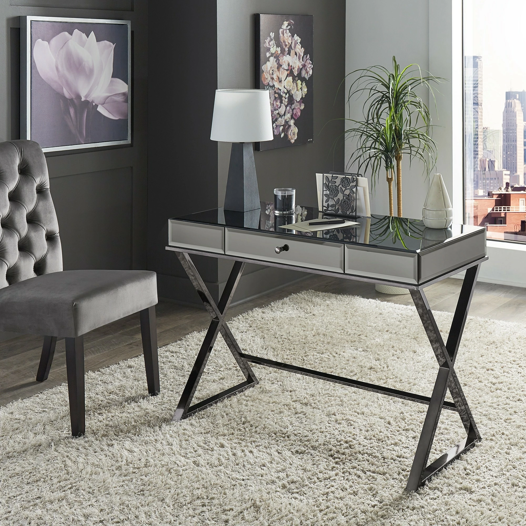 Make your bedroom look glamorous and elegant with this Omni campaign desk from iNSPIRE Q Bold. Featuring an x-shaped metallic base with a mirrored top and chrome finish, this table accentuates contemporary home décor. With a drawer to store your things, this desk crafted from MDF is highly durable and versatile.