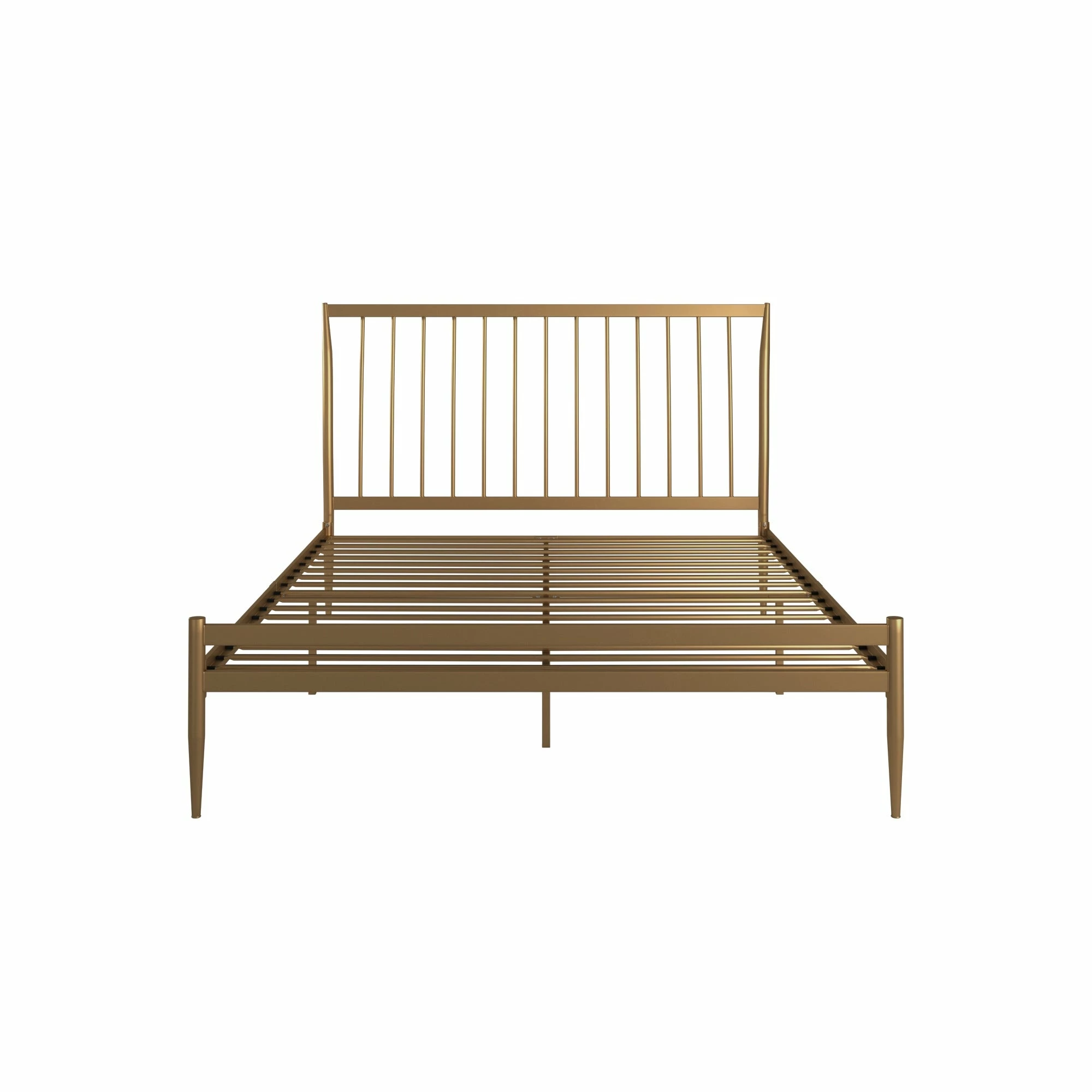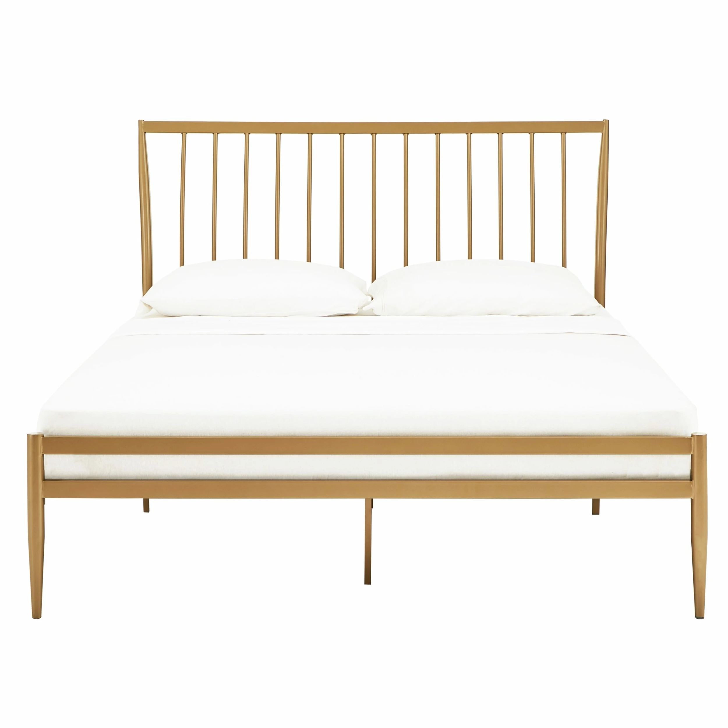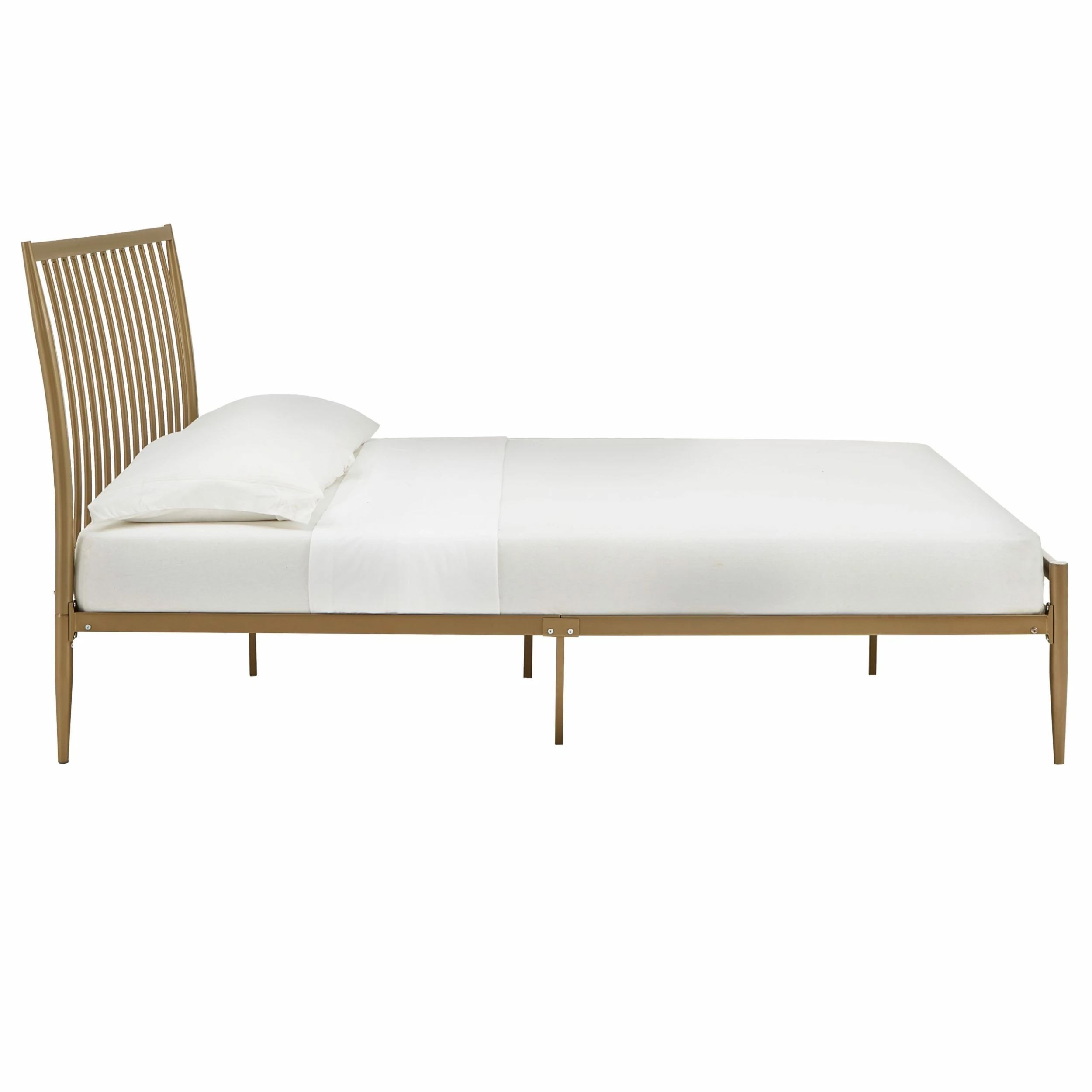 Complete your contemporary bedroom with the Parkcrest bed from iNSPIRE Q. The matte gold metal frame features sleek legs, a slatted headboard, and supportive slats. Choose from two sizes to pair with your mattress.