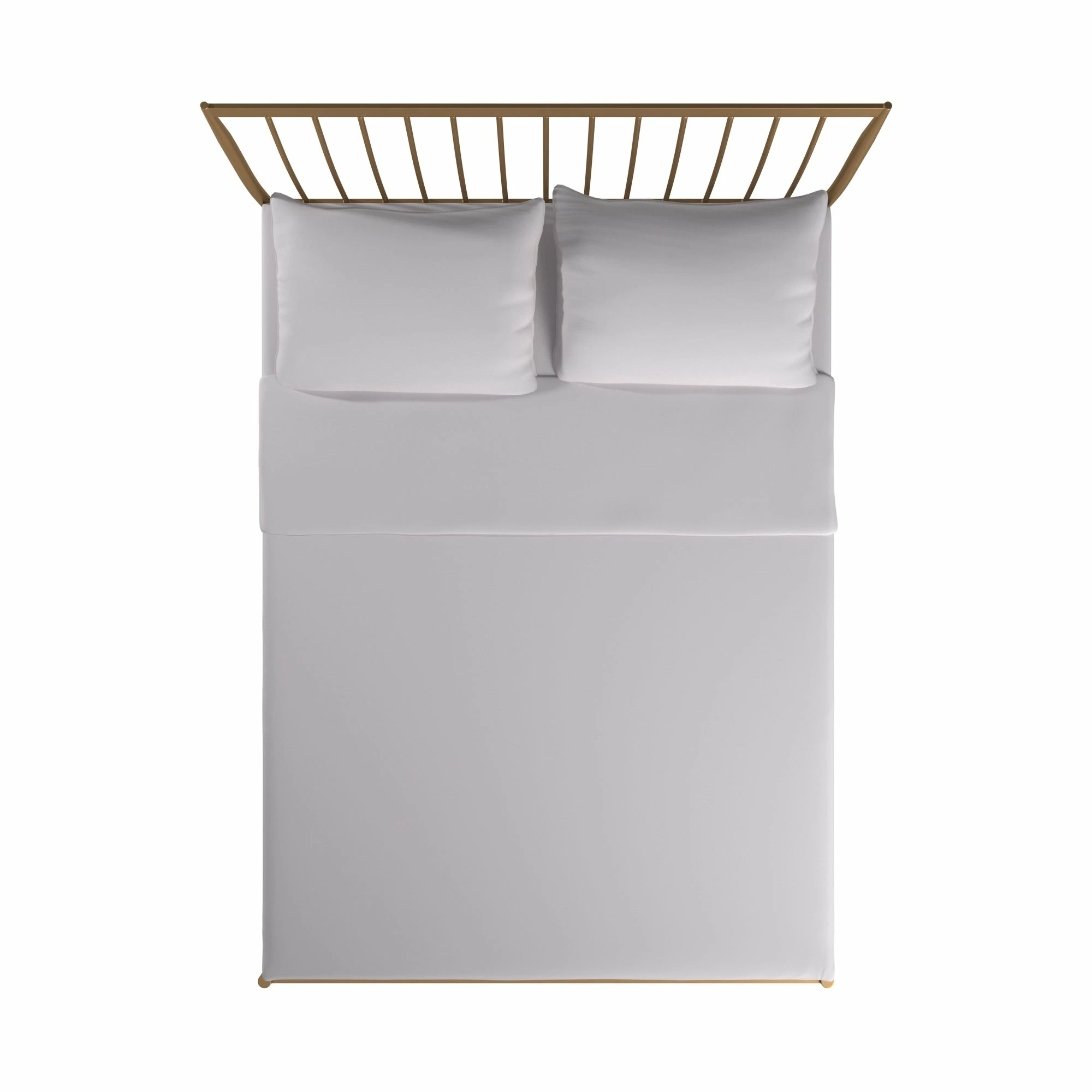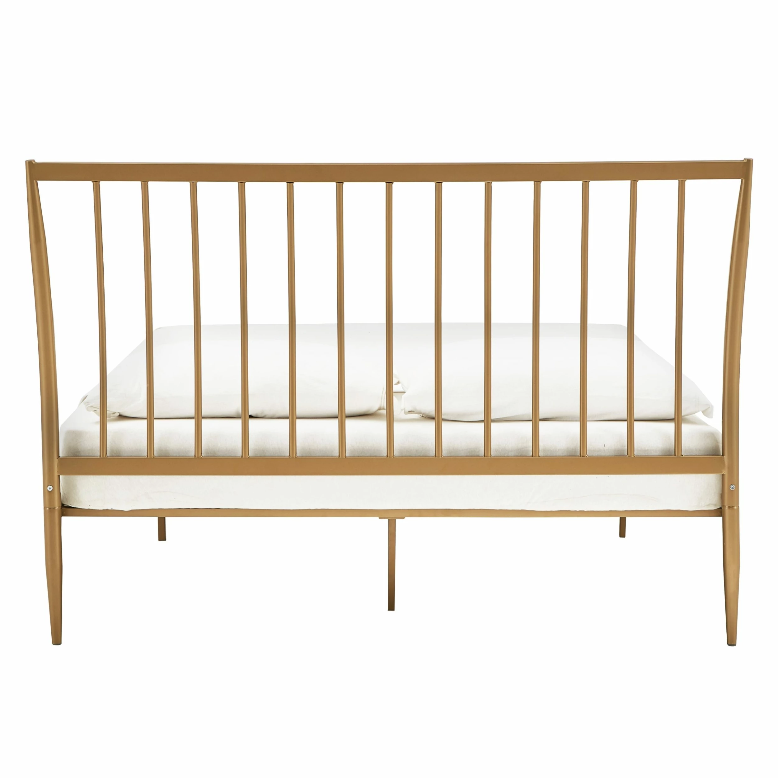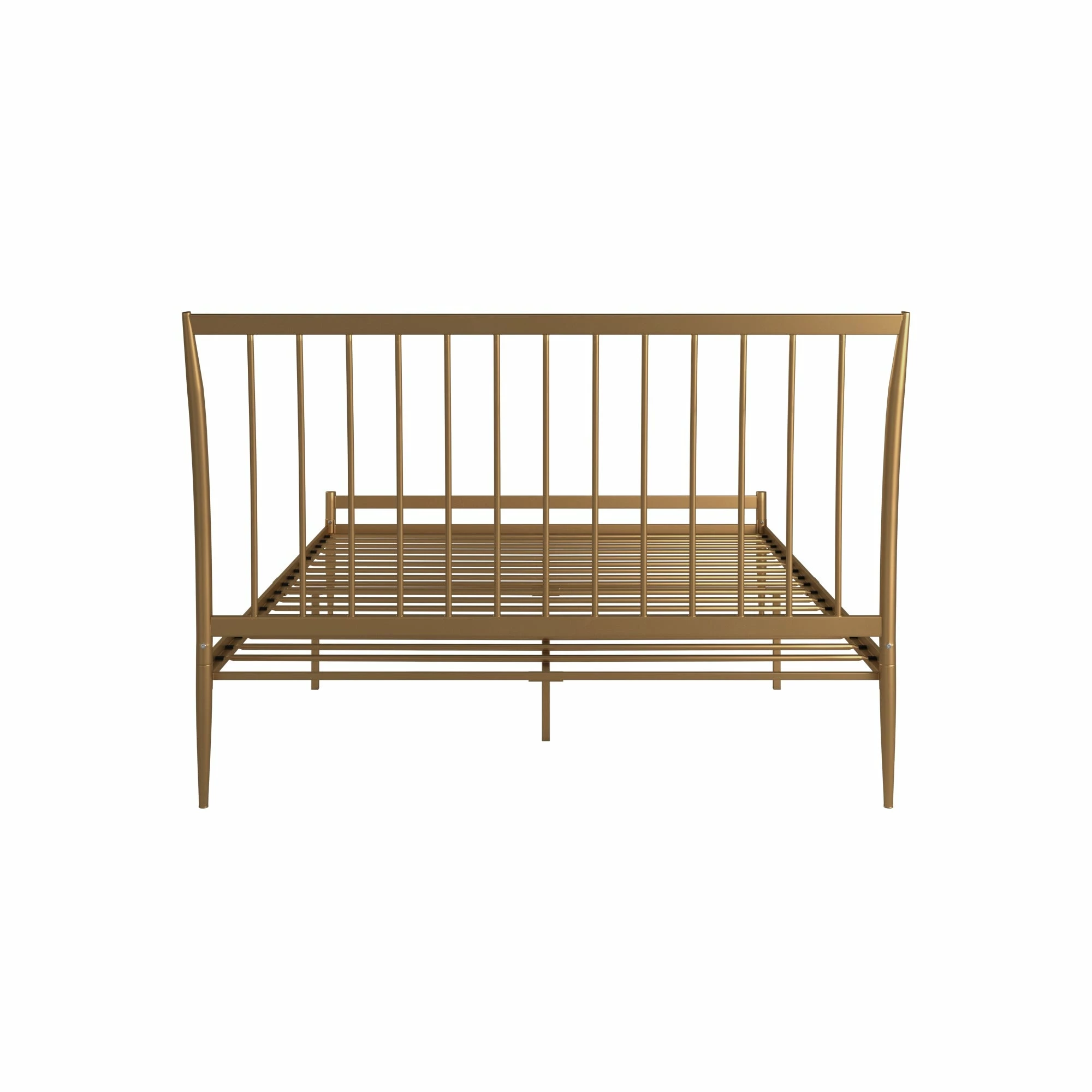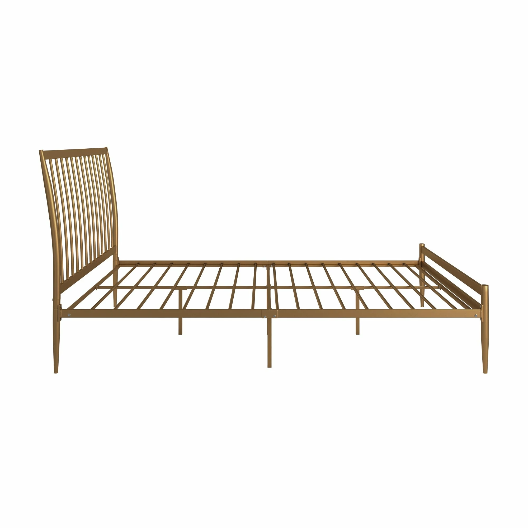Complete your contemporary bedroom with the Parkcrest bed from iNSPIRE Q. The matte gold metal frame features sleek legs, a slatted headboard, and supportive slats. Choose from two sizes to pair with your mattress.