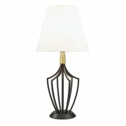 Update the look of your living room with the Paula Matte Black Finish Modern 1-light Table Lamp by iNSPIRE Q Modern. This table lamp features an intricate shaped base that enhances any room and is complemented by the softness of natural white fabric shade. Simple yet classy, this table lamp is a lovey accent that adds depth and texture to your home.