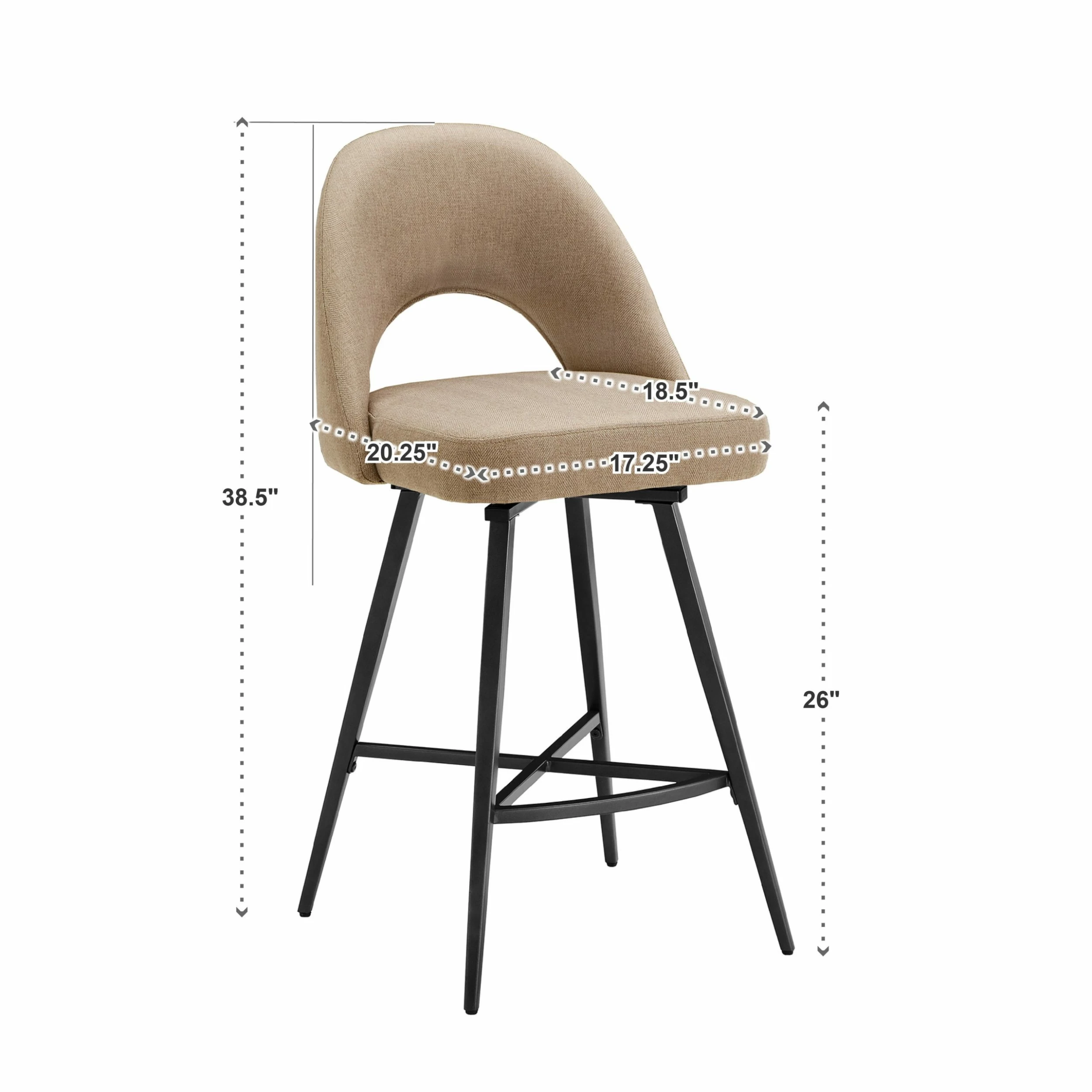 - Counter height seat height: 24 in.