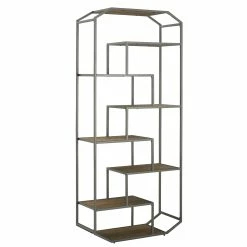 Add to your fresh aesthetic with the Rogers Dark Grey Finish Metal Clipped Corner Bookcase by iNSPIRE Q Modern! This bookcase includes 7 tiered shelves and is styled in a unique geometric pattern, perfect for your modern styled space. Set in a stunning dark grey cubist frame, this trendy bookshelf includes unique styling from bottom to top. Each of the 7 shelf openings allow you to safely showcase books, pictures, plants and more in a sturdy and secure way. Create a space to captivate your cherished items in your living room or office of your contemporary styled home.