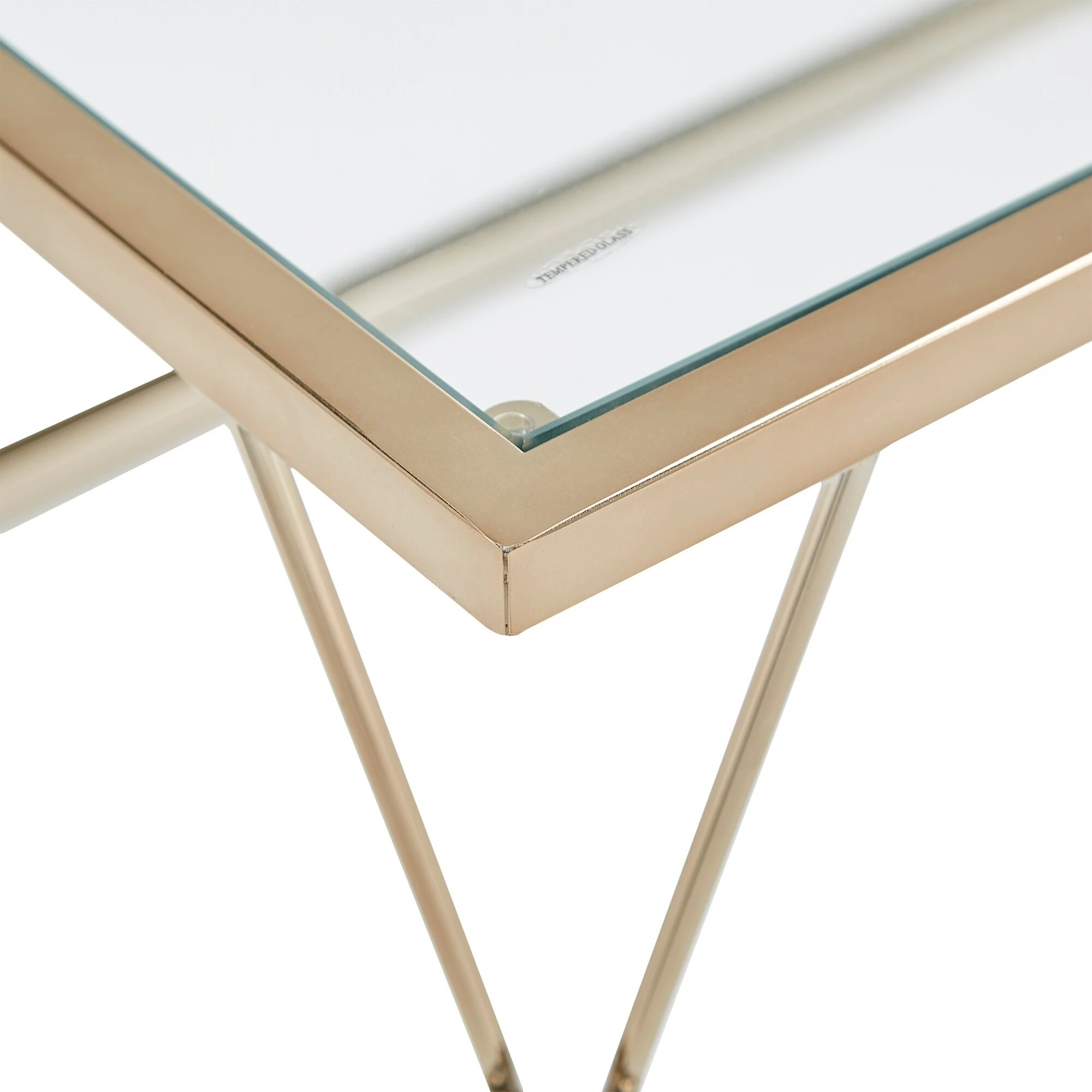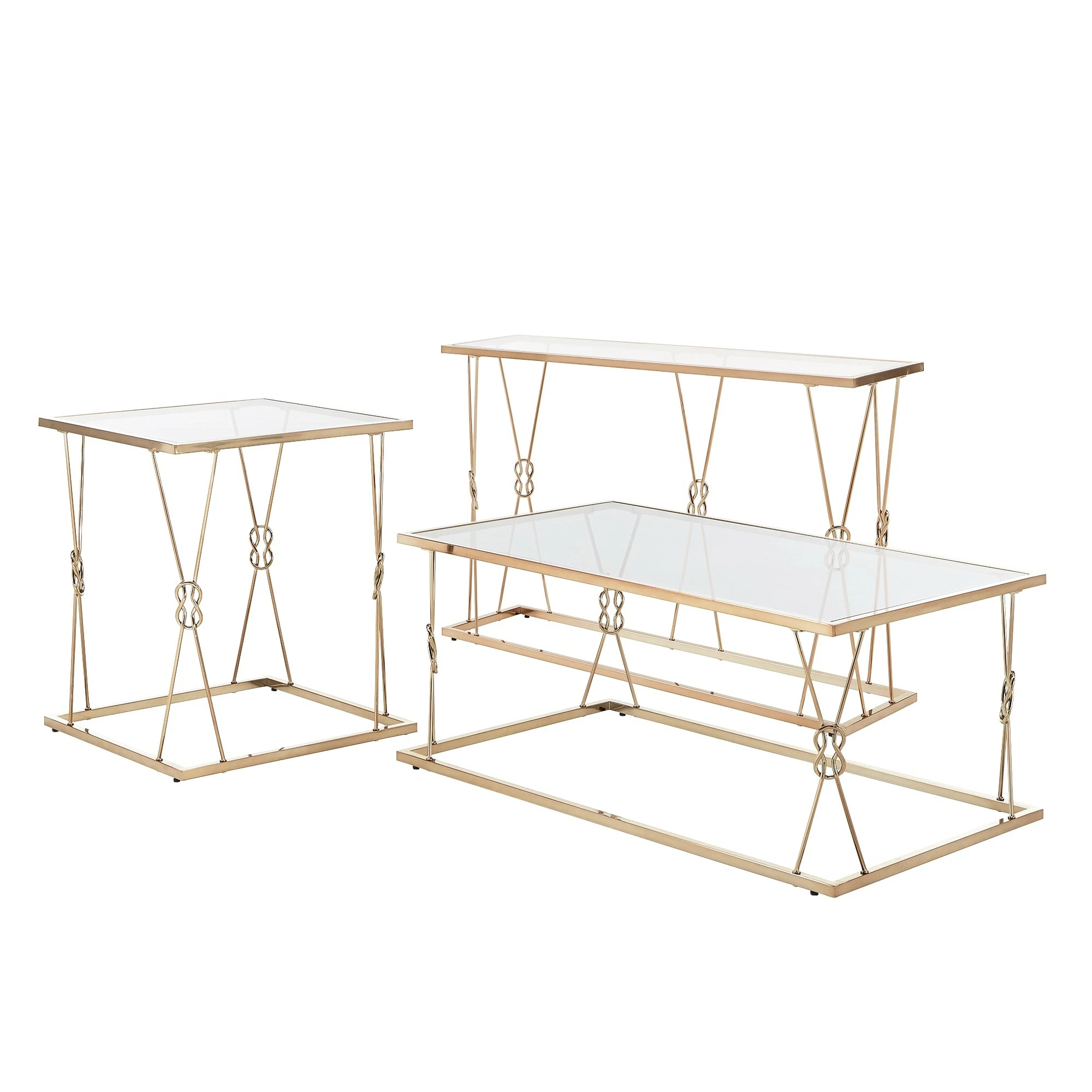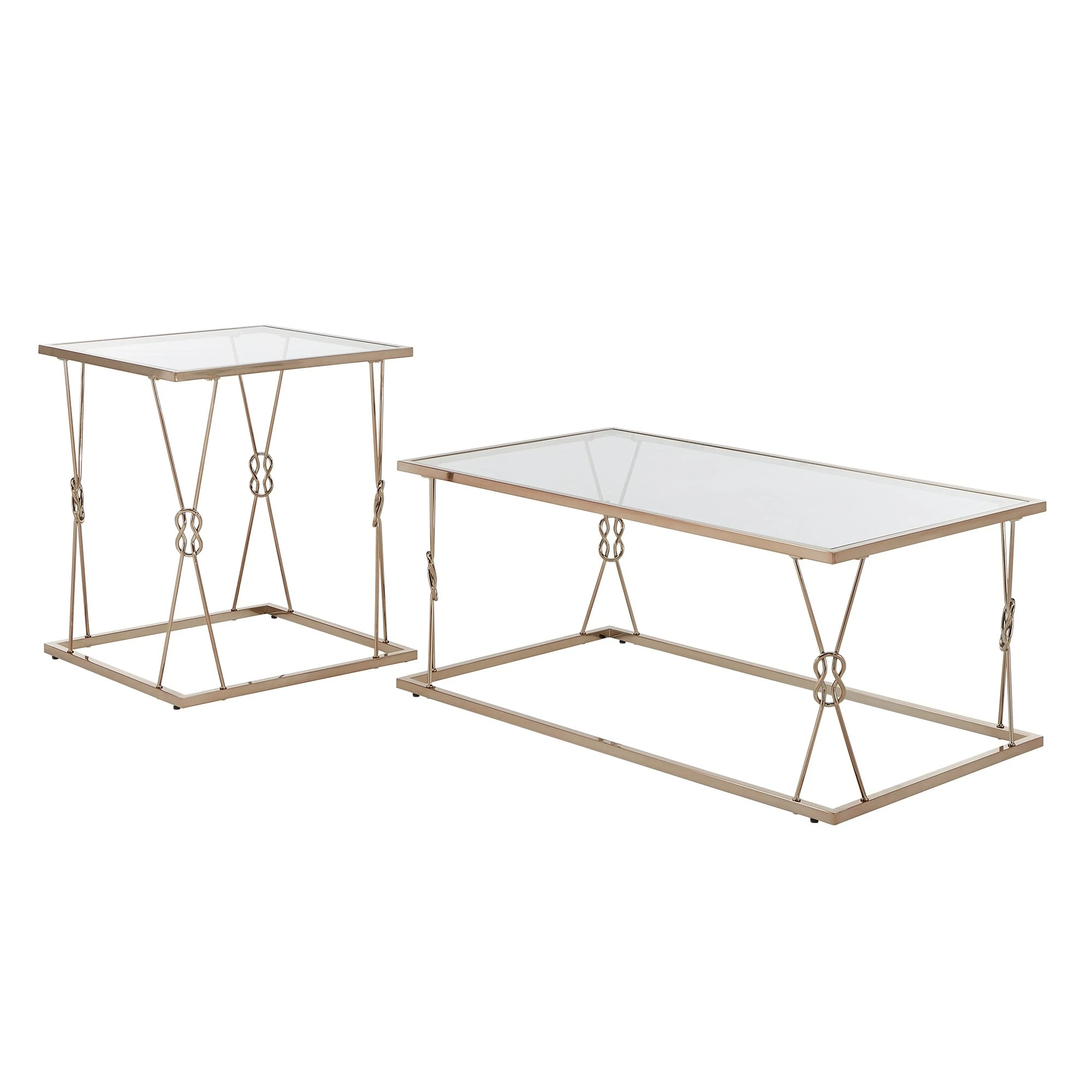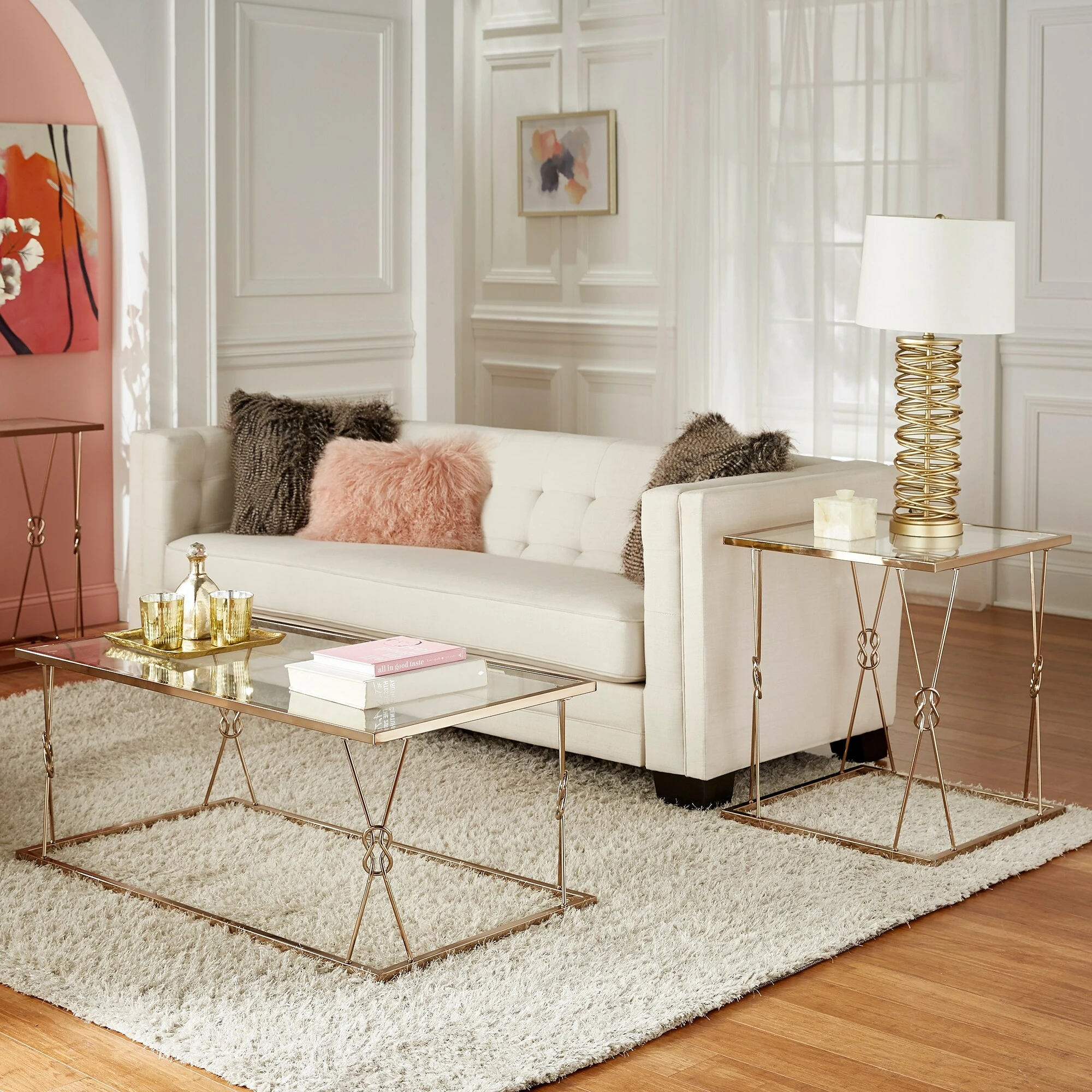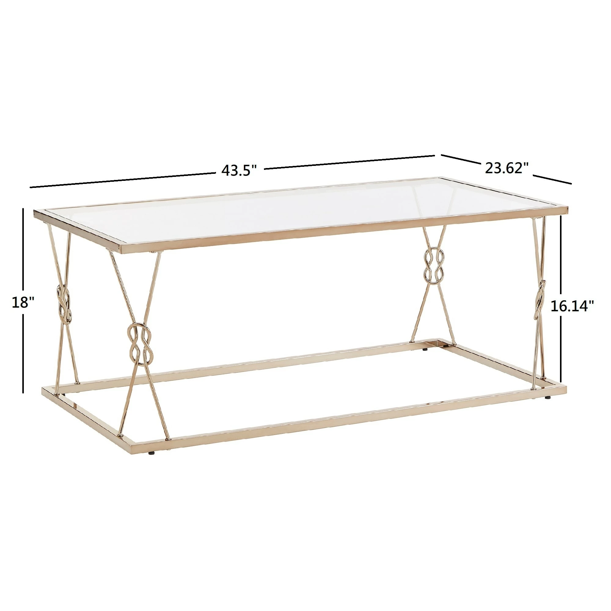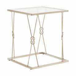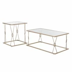 A timeless piece of furniture with the love of humble reef knot elegantly integrated into its champagne gold frame. Sophisticated and glamorous, the iNSPIRE Q Champagne Gold Finish with Reef Knot Frame and Glass Top Table Set creates the tone for a luxurious setting. With a beautiful tempered glass top and gold metal frame, this table displays high class elegance. Bring this wonderful example of metal artistry into your home.