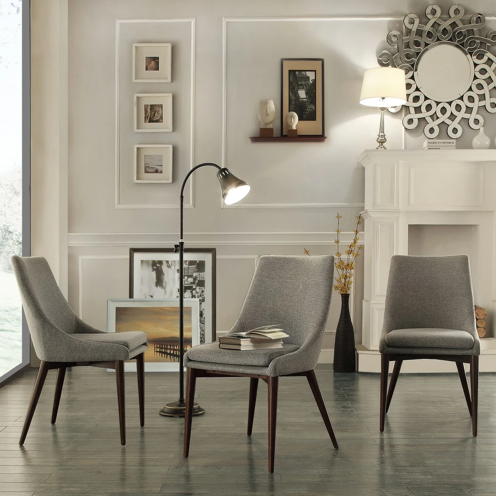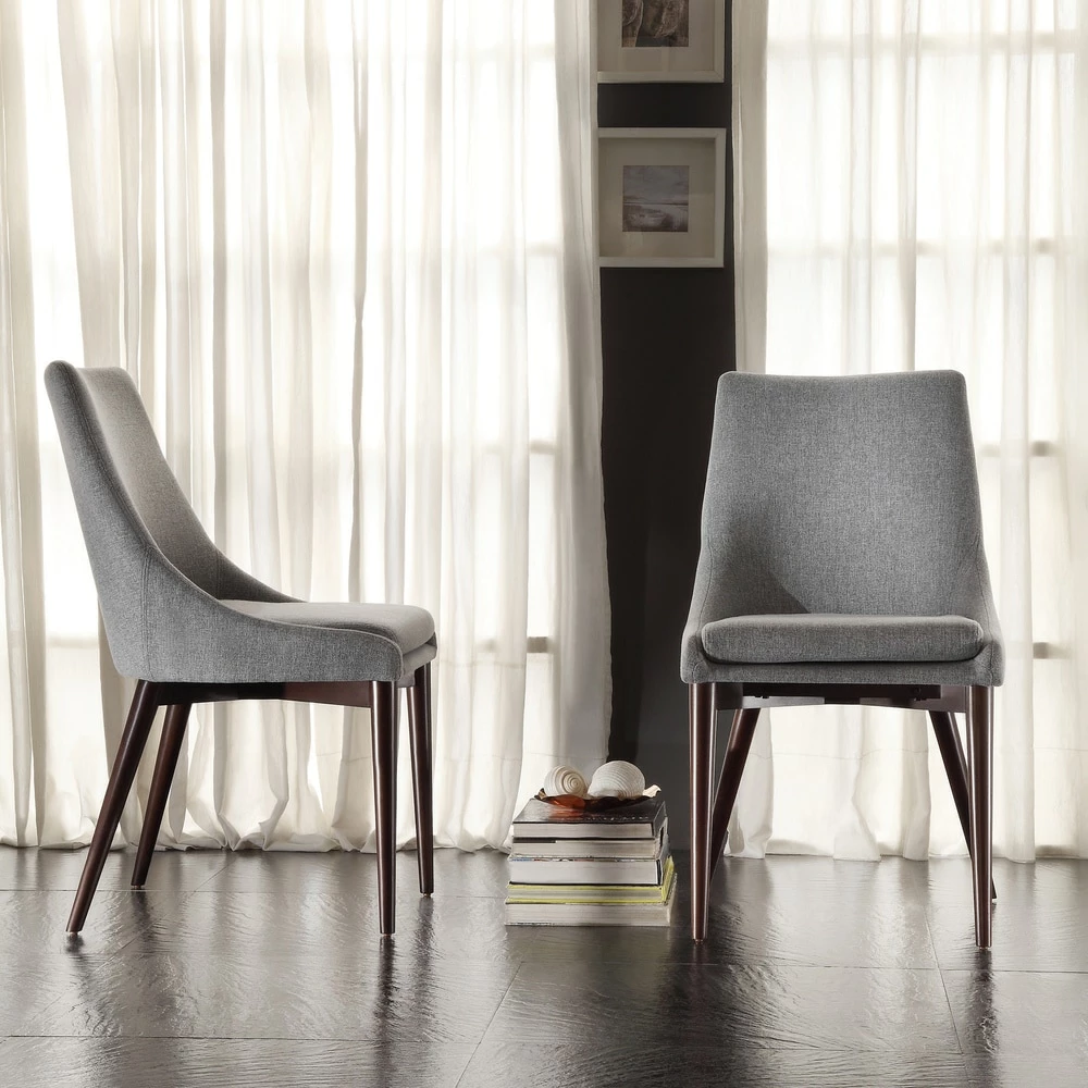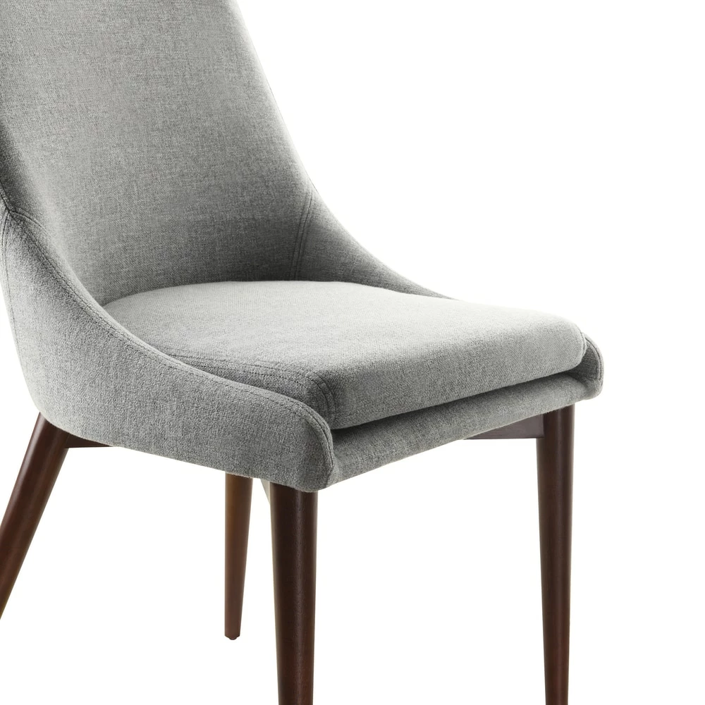 The Sasha dining chair from iNSPIRE Q Modern collection features tapered, angled legs and stylish linen upholstery to coordinate with your mid-century inspired decor. The set of two dining chairs are constructed from durable rubberwood and available in three different fabric colors to fit your style. Create a calm and balanced look in your dining room with these plush barrel back dining chairs.