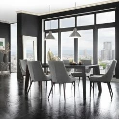- Cool grey upholstery complements most decors