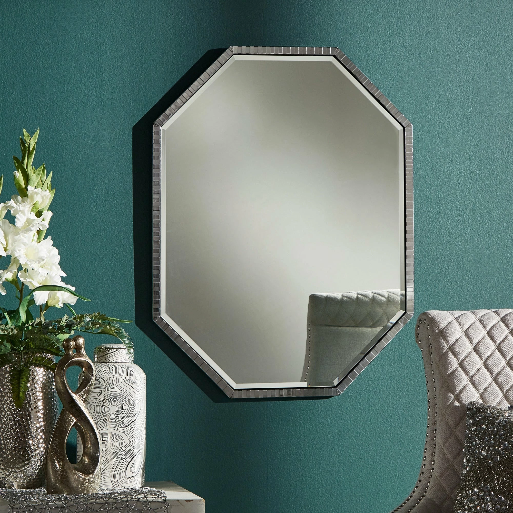 Keep your décor chic and up to date with the Schnee Shiny Metal Octagon Wall Mirror from iNPISRE Q Bold. This fancy mirror is sleek, simple, and sophisticated. The large mirrored surface is framed with shiny metal, which comes in your choice of finish to best suit your tastes. The frame is also delicately accented with clean lines for styled detail. Thanks to the minimalist design of this mirror, it works well with a wide variety of themes, including contemporary, glam, and eclectic.
