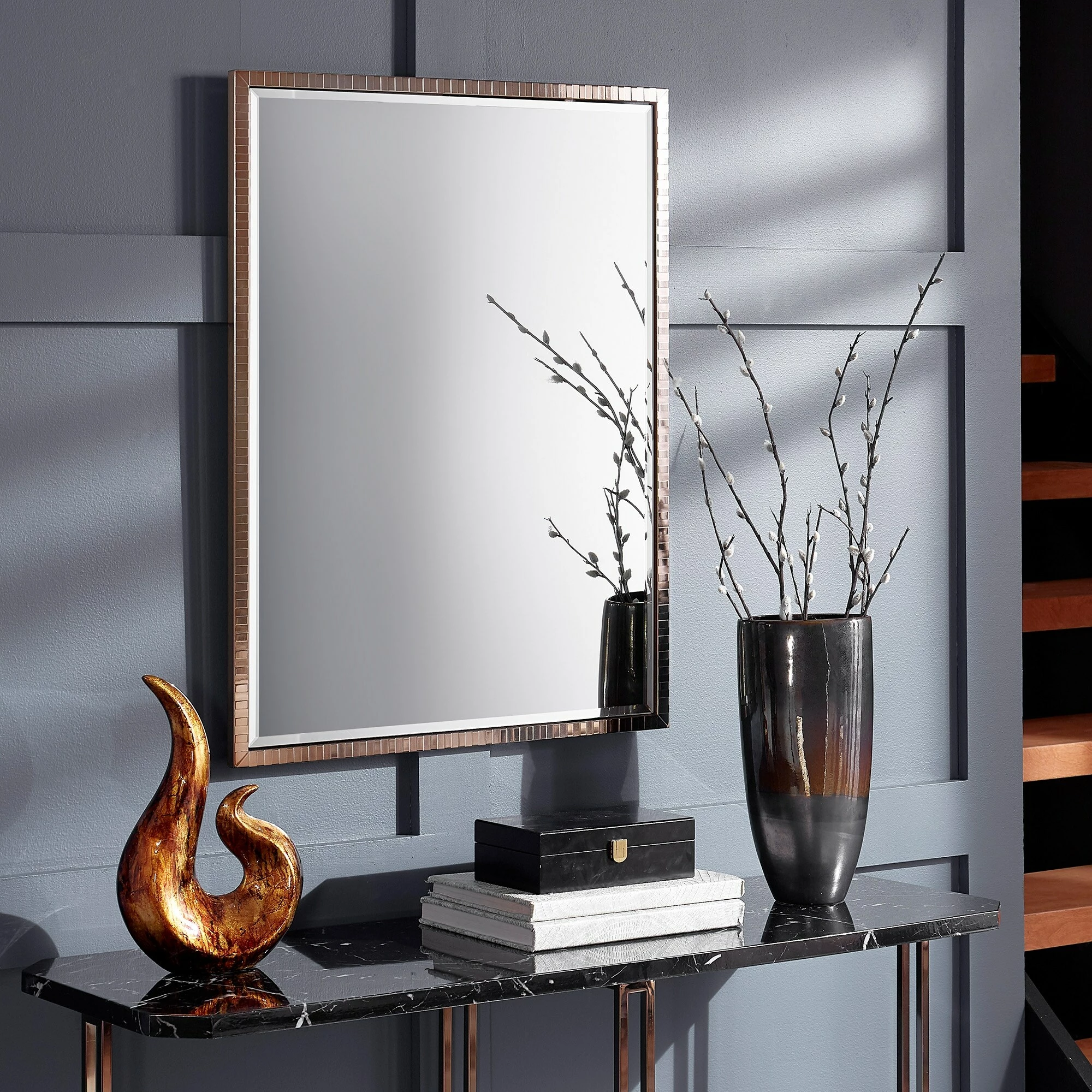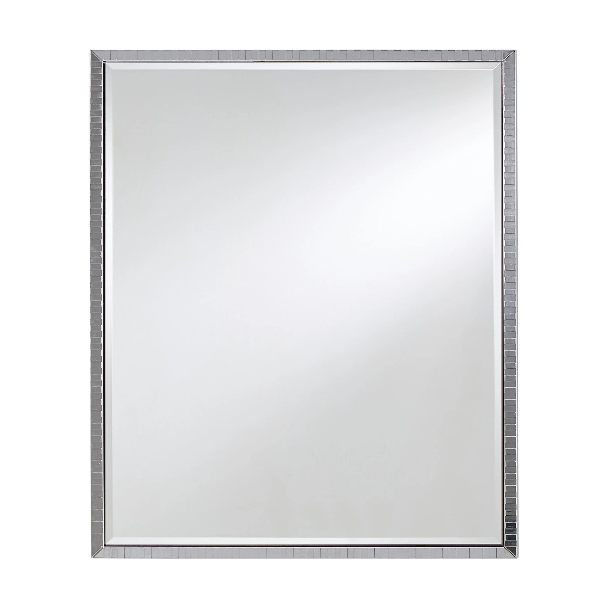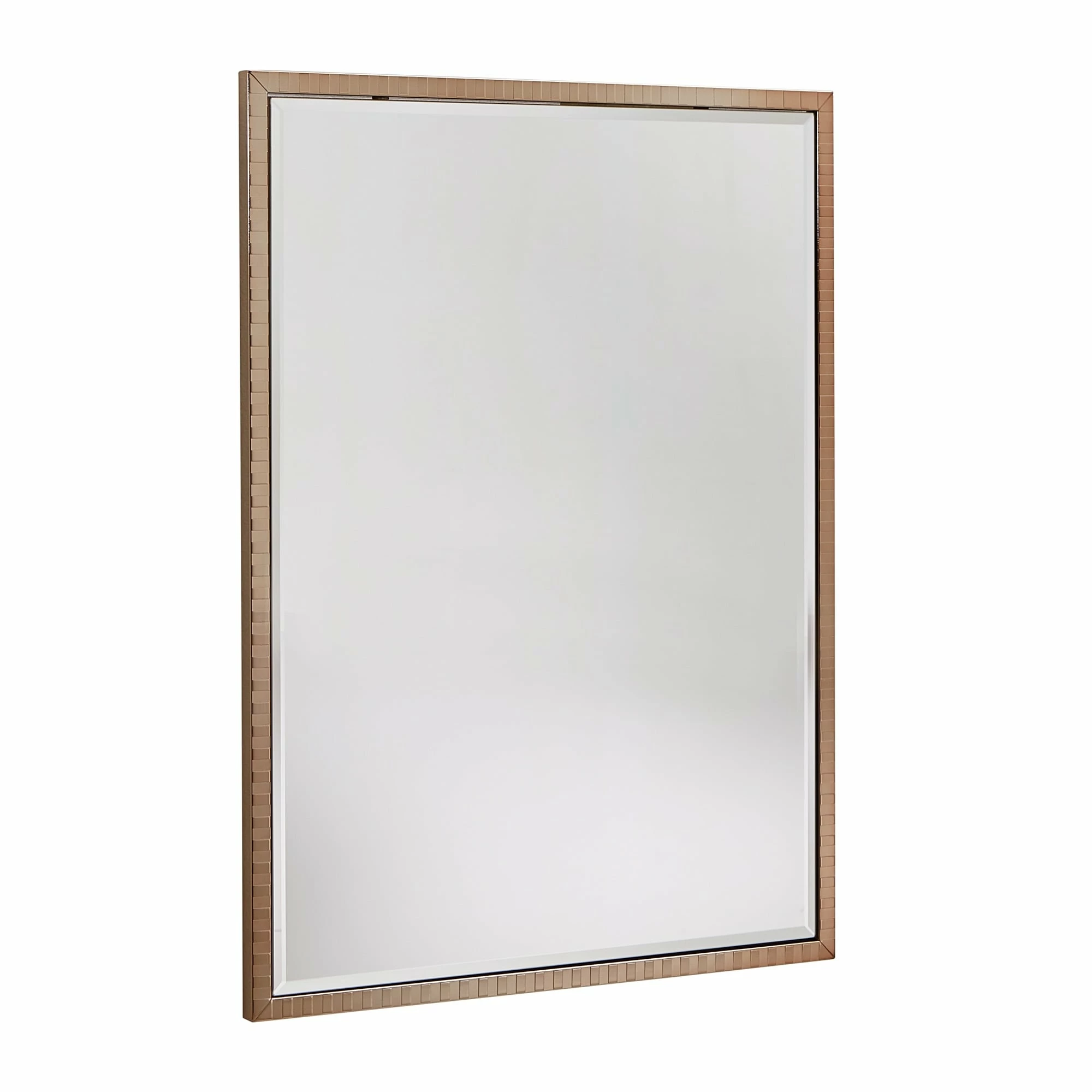 Keep your décor chic and up to date with the Schnee Shiny Metal Rectangular Wall Mirror from iNPISRE Q Bold. This fancy mirror is sleek, simple, and sophisticated. The large mirrored surface is framed with shiny metal, which comes in your choice of finish to best suit your tastes. The frame is also delicately accented with clean lines for styled detail. Thanks to the minimalist design of this mirror, it works well with a wide variety of themes, including contemporary, glam, and eclectic.