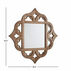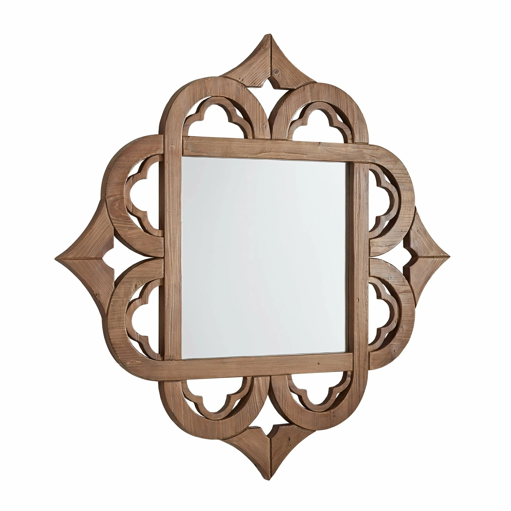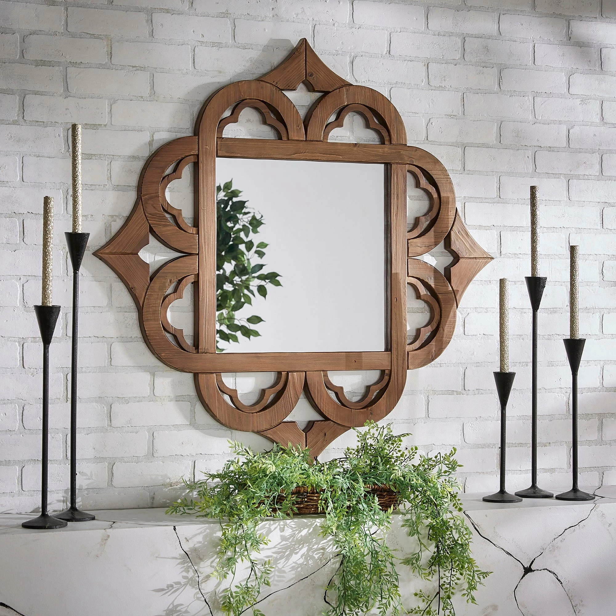 The Silas Wood Moroccan Pattern Wall Mirror from iNSPIRE Q Artisan lends style and sophistication to the walls in your home. This charming mirror showcases a beautiful, Moroccan pattern, crafted from reclaimed pine and solid wood. The natural wood finish is neutral to blend with existing color schemes while also giving off a rustic vibe, perfect for farmhouse-inspired settings.ย