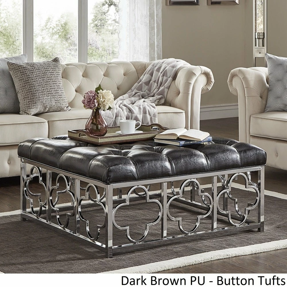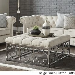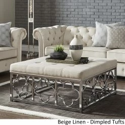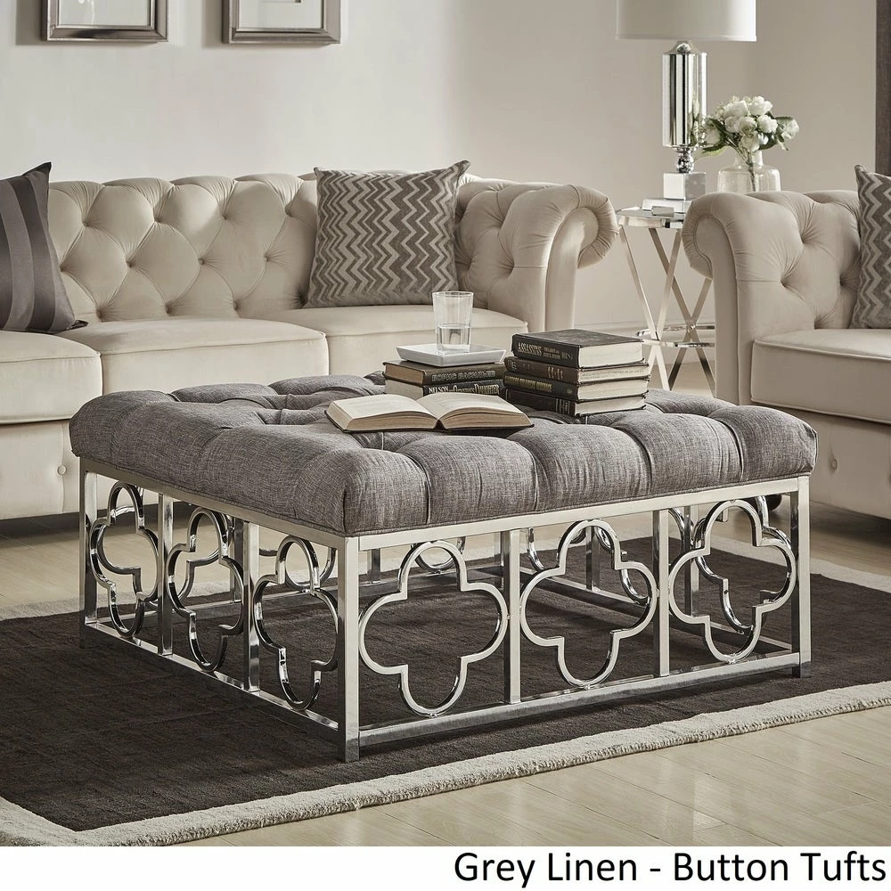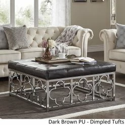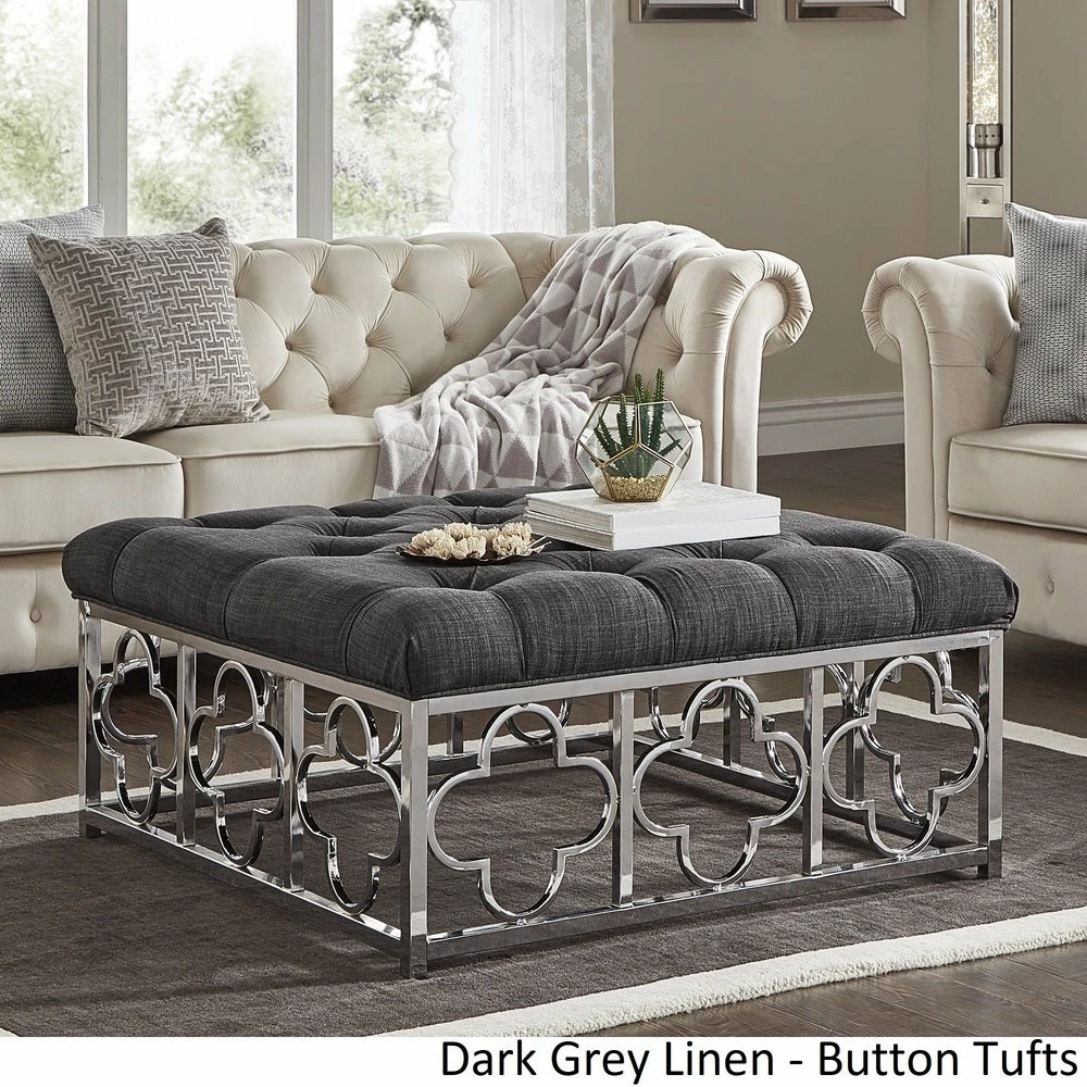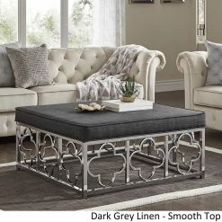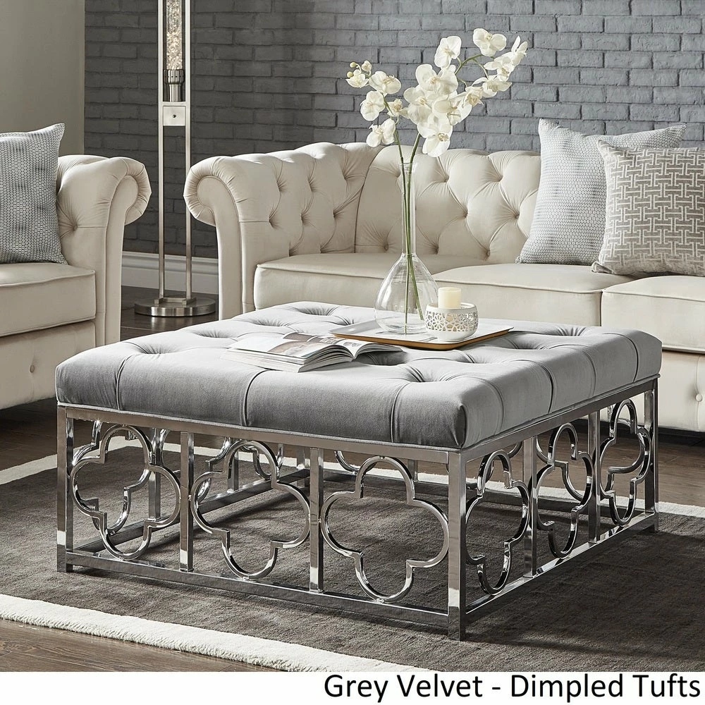 The Solene Chrome Quatrefoil Base Square Ottoman Coffee Table by iNSPIRE Q® Bold is a versatile piece offers the comfort of an ottoman and the convenience of a coffee table. With a large surface area to kick up your feet or keep your favorite snacks handy, this ottoman coffee table is an essential addition to your living space. While modern and sophisticated, the quatrefoil base design incorporates a Moroccan flair, creating a look that’s both contemporary and unique. Available in several different upholstery options, so you can customize this piece to match any design or color scheme.