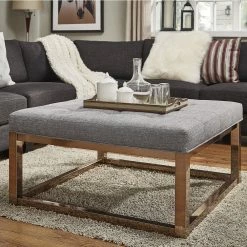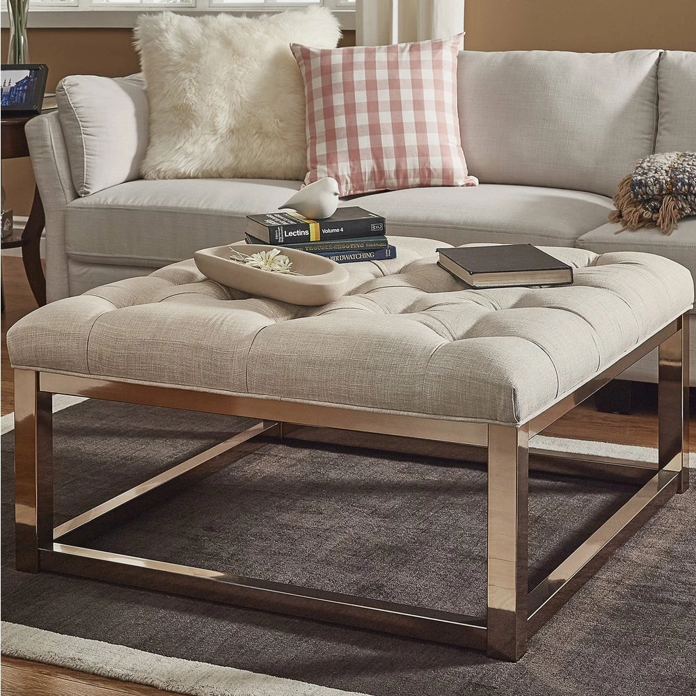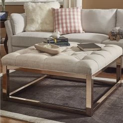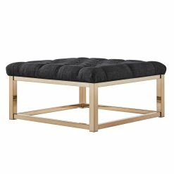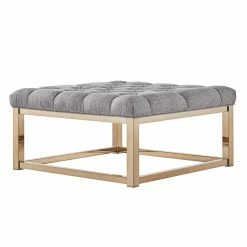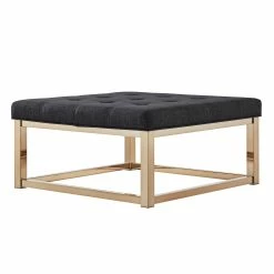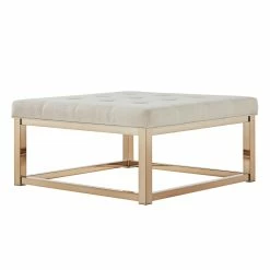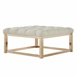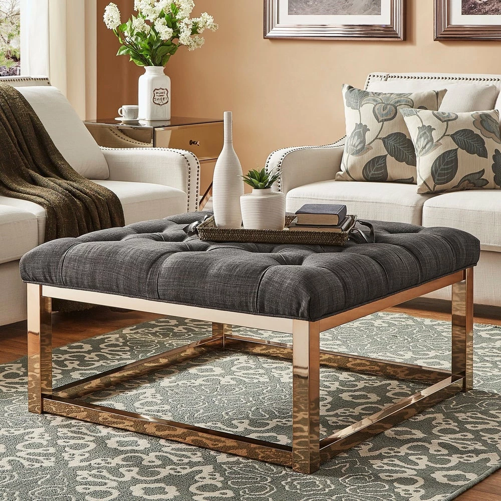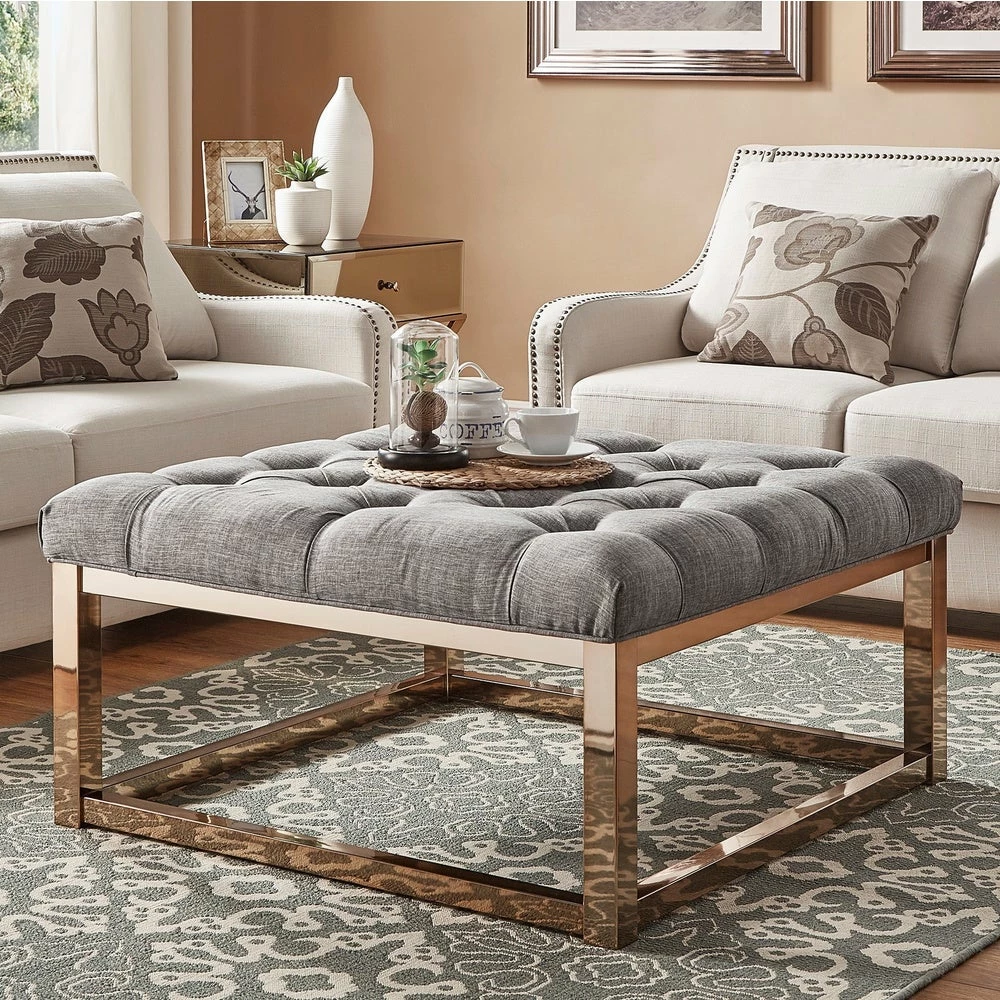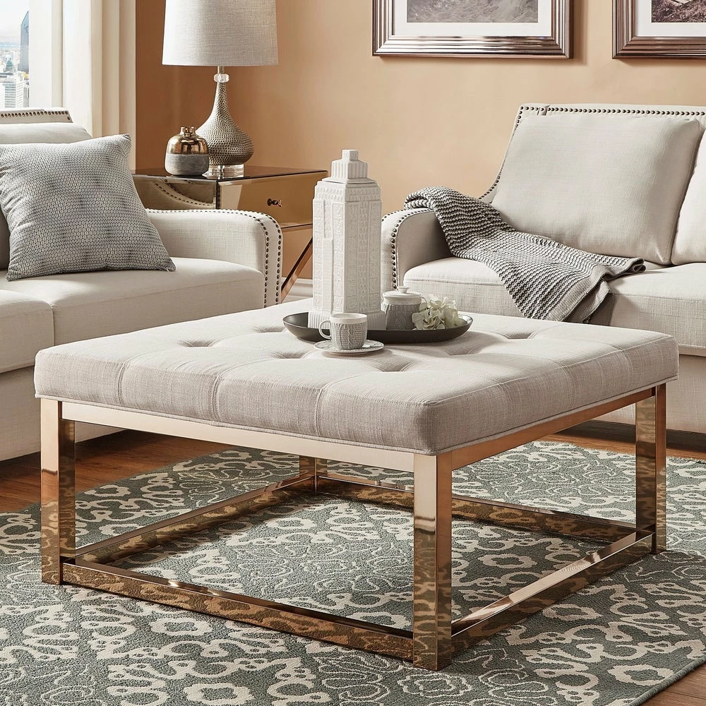 Bring a versatile piece of furniture into your home with this square ottoman table. This coffee table has a large surface area to kick up your feet or keep your favorite snacks handy. Sleek and simple contours combine with the warm champagne gold finish to create an eye-catching and contemporary look.