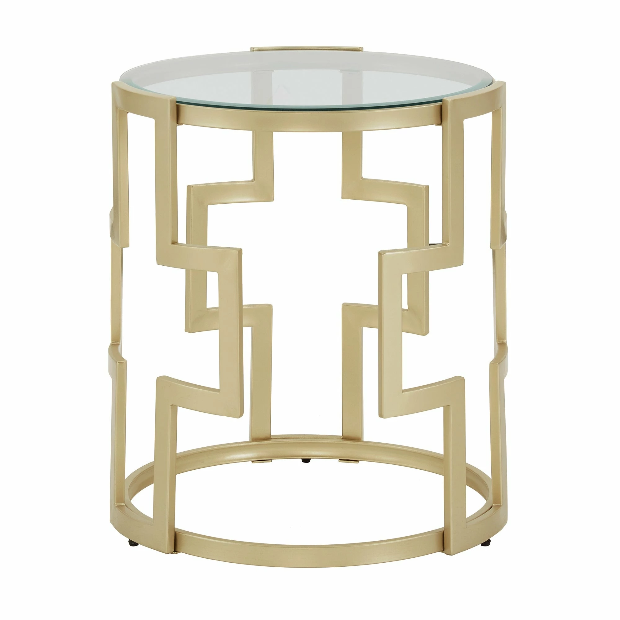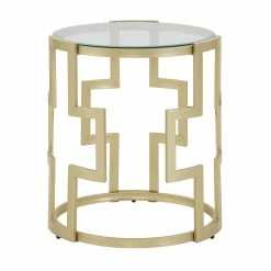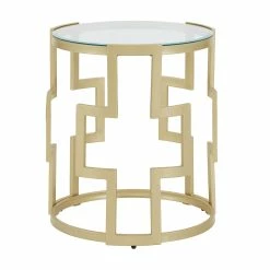 Introducing the fret pattern living room table! This stylish table is perfect for adding a touch of luxury to your living room. The matte gold finish open metal frame is eye-catching, making the small space look bigger and the clear glass top is perfect for displaying your favorite décor. The fret pattern metal frame is durable and easy to tuck into cramped corners, narrow nooks or on the rugs. Whether you need it to rest movie-night snacks or display your favorite décor, this piece will instantly elevate your aesthetic in glam galore. So don’t wait any longer, add the fret pattern living room table to your cart today!