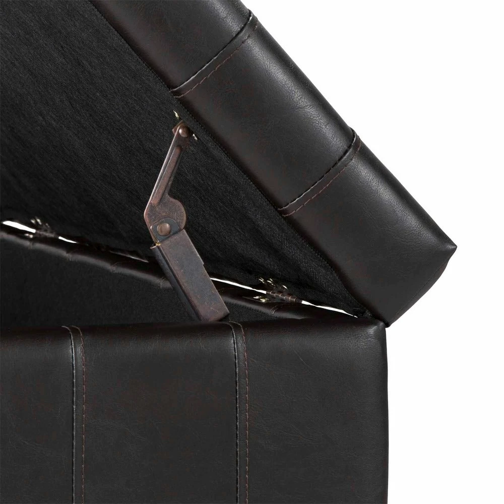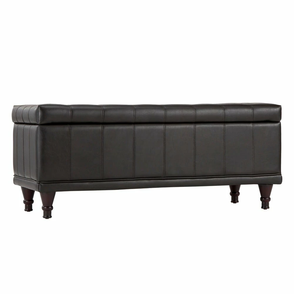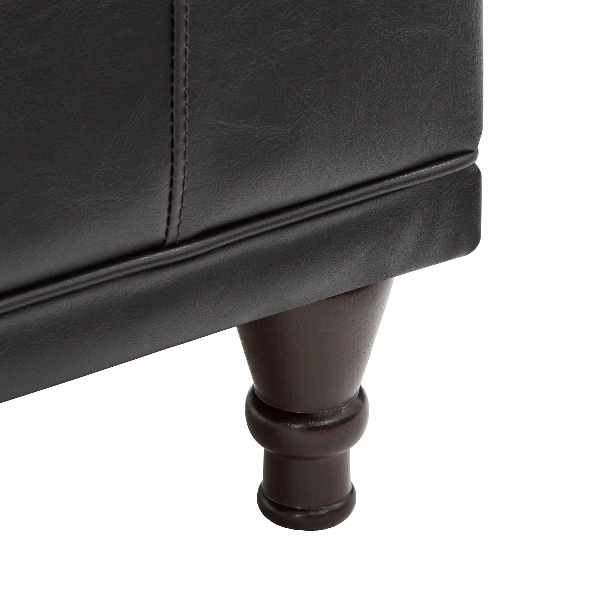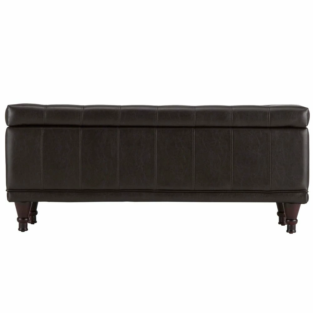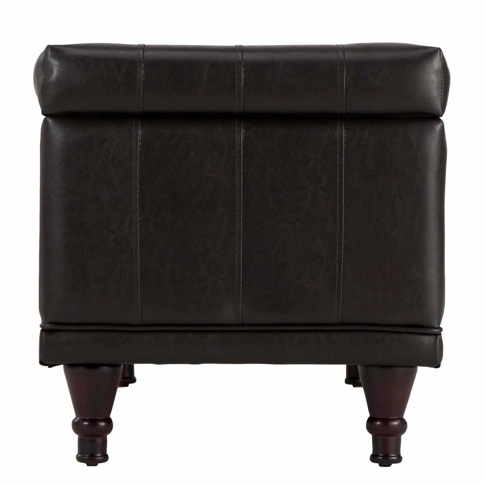 - Tufted dark brown faux leather upholstery