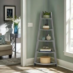 Give your space an eclectic flair with the Stoyan Corner Ladder Bookcase by iNSPIRE Q® Classic. Five tiered shelves allow this bookcase to showcase your belongings (large or small!) in a unique way. Display items such as snow globes, figurines, or small books on the first few shelves, while the larger shelves can hold items such as plants, diplomas, or picture frames. Durable rubberwood allows for hassle-free maintenance while maintaining a gorgeous rustic look. Complementary to classically styled homes, this bookcase is the perfect item to dress up a bare corner!