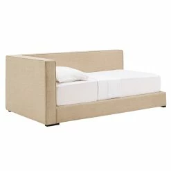 Introducing the Corner Lounge Bed! This luxurious lounge bed is perfect for those who want to relax in style. The long, low lines and soft linen upholstery make it a comfortable place to rest your head. The bed has a foundation and can fit most standard mattresses, so you don’t have to worry about finding the right one. It also comes with a matching mattress cover, so you can keep it clean with ease. The reversible headboard is another great feature – you can configure it to your space and change it up whenever you want. Whether you’re looking for a place to relax or just want a beautiful piece of furniture, the Corner Lounge Bed is the perfect choice.