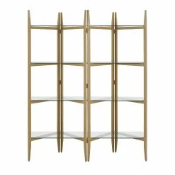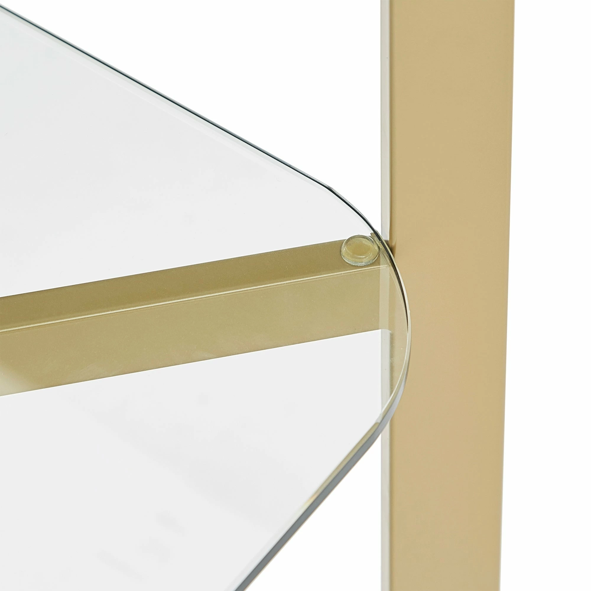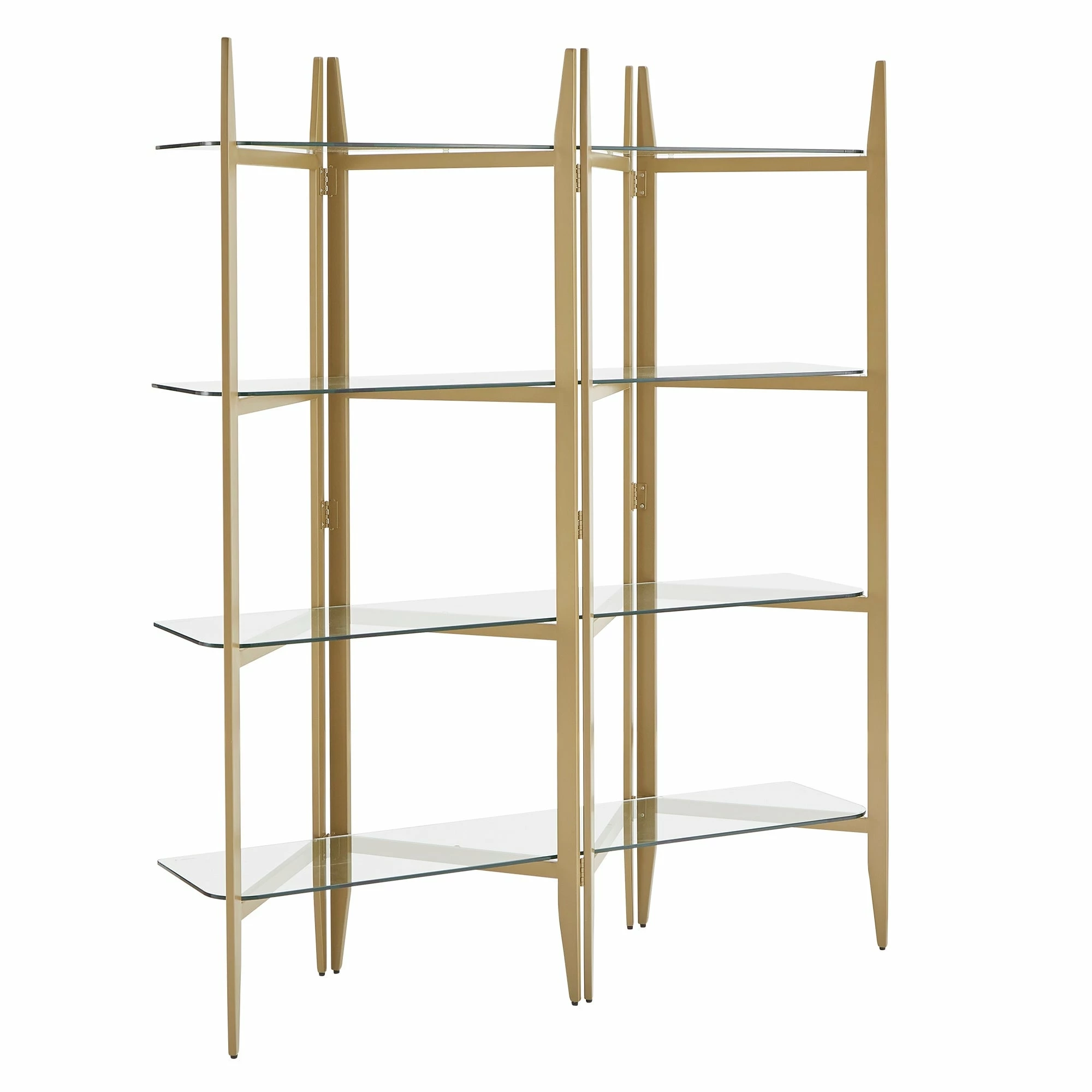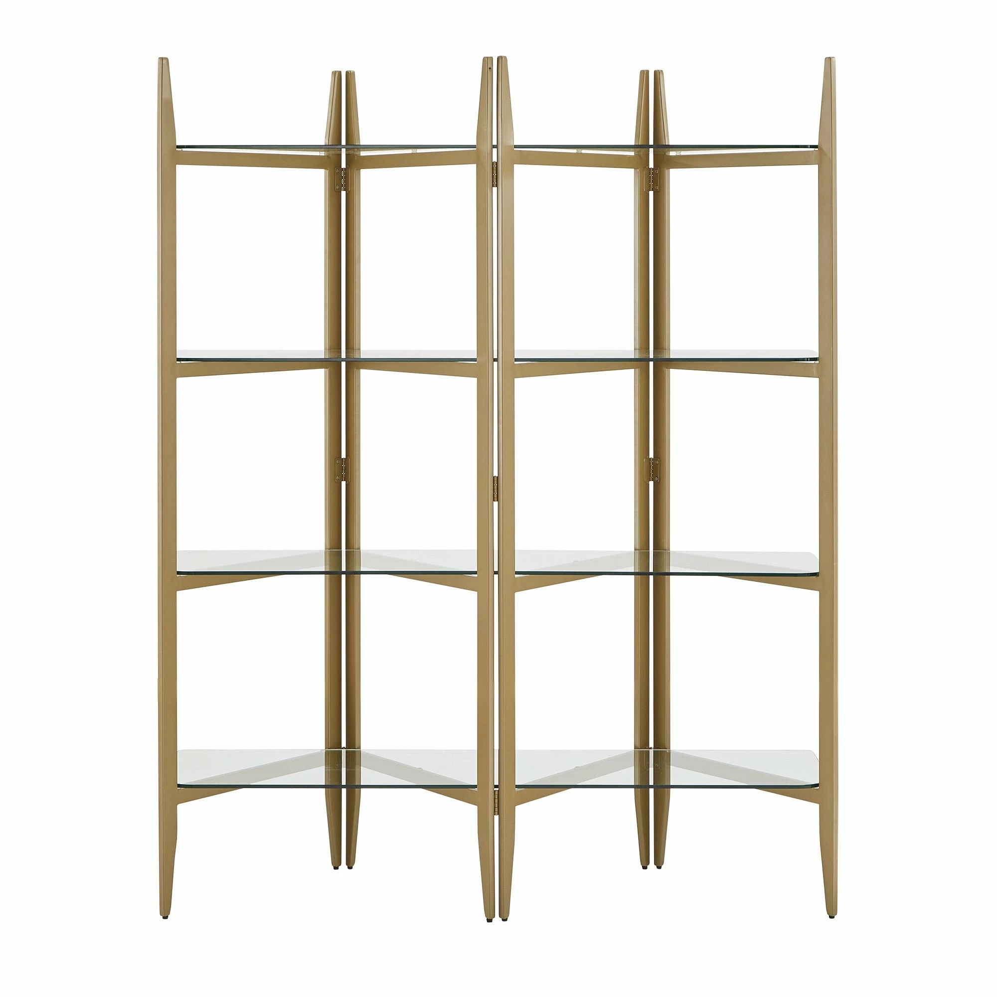 The Tove Gold Finish Metal Bookcase with Glass Shelves from iNSPIRE Q Bold delivers sleek style to any home. The open design of this piece allows for the spotlight to be placed on your prized possessions while also lending an airy appearance. A resilient gold-finish metal frame supports four, clear, tempered glass shelves, promising plenty of strength and room for your belongings.
