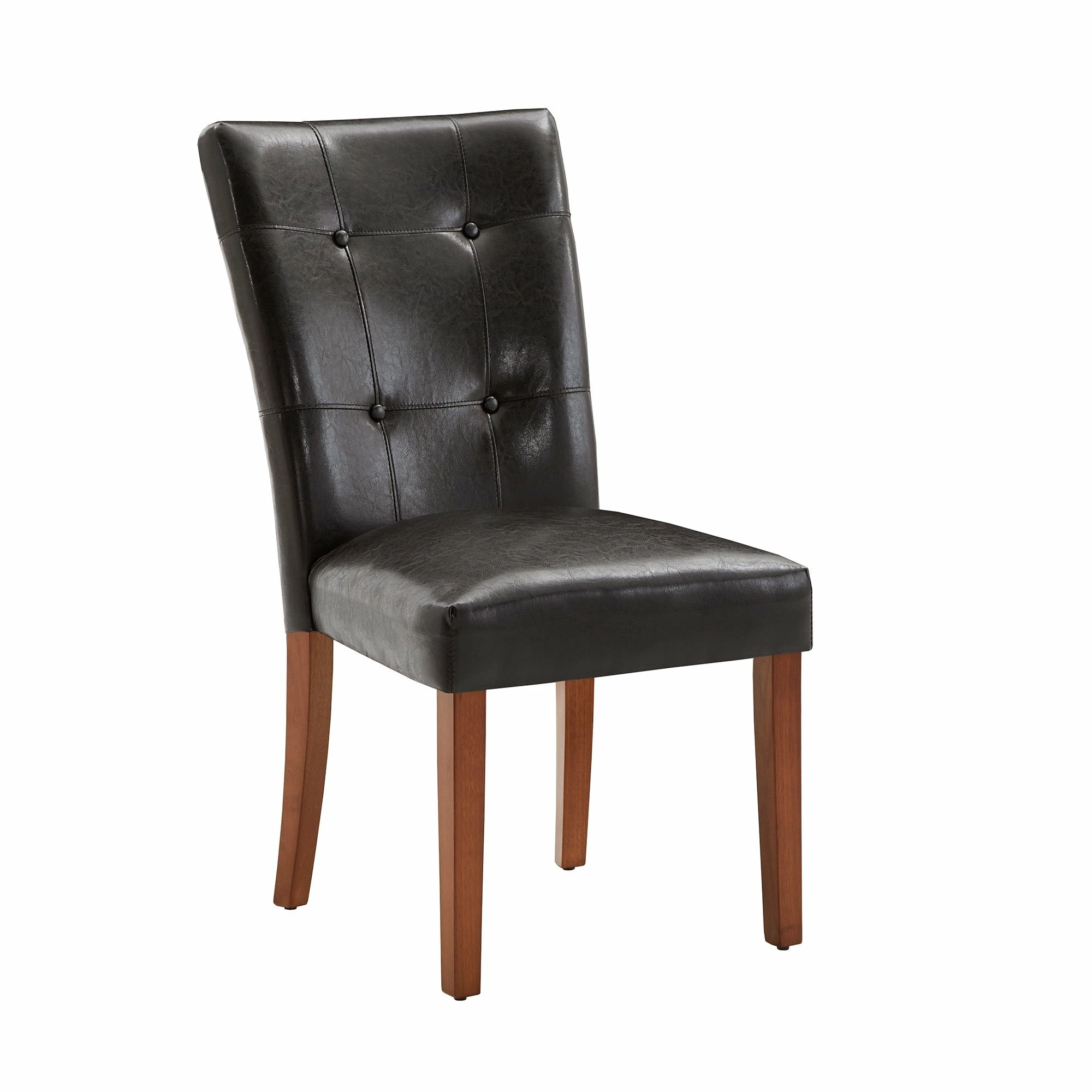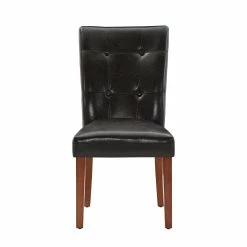 Update the look of any room in your home with these tufted side chairs from iNSPIRE Q Classic. The chairs feature a tufted-button design on the seat back that add a touch of elegance to the laid back silhouette. Dark brown vinyl complements the cherry wood-stained legs for a classic look.