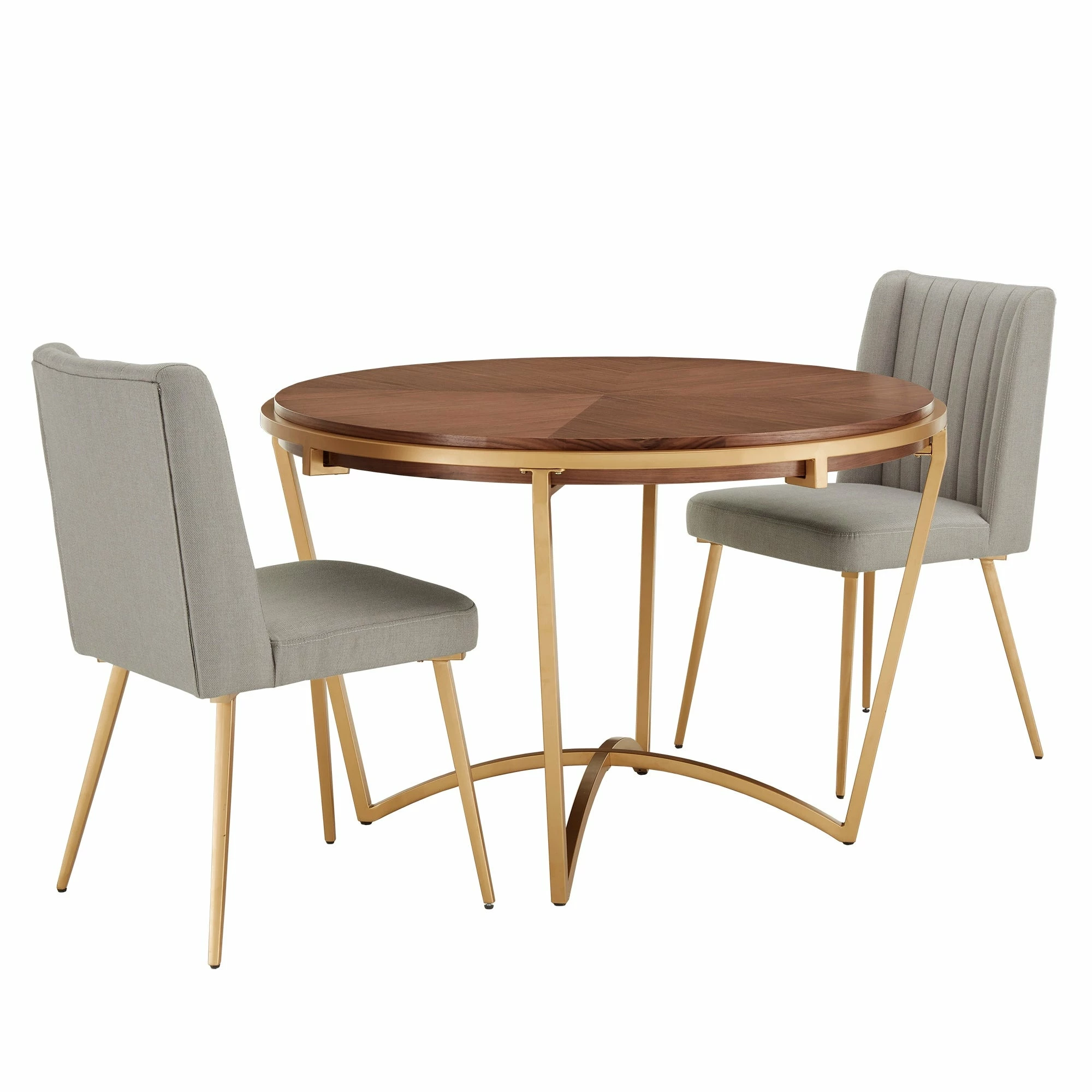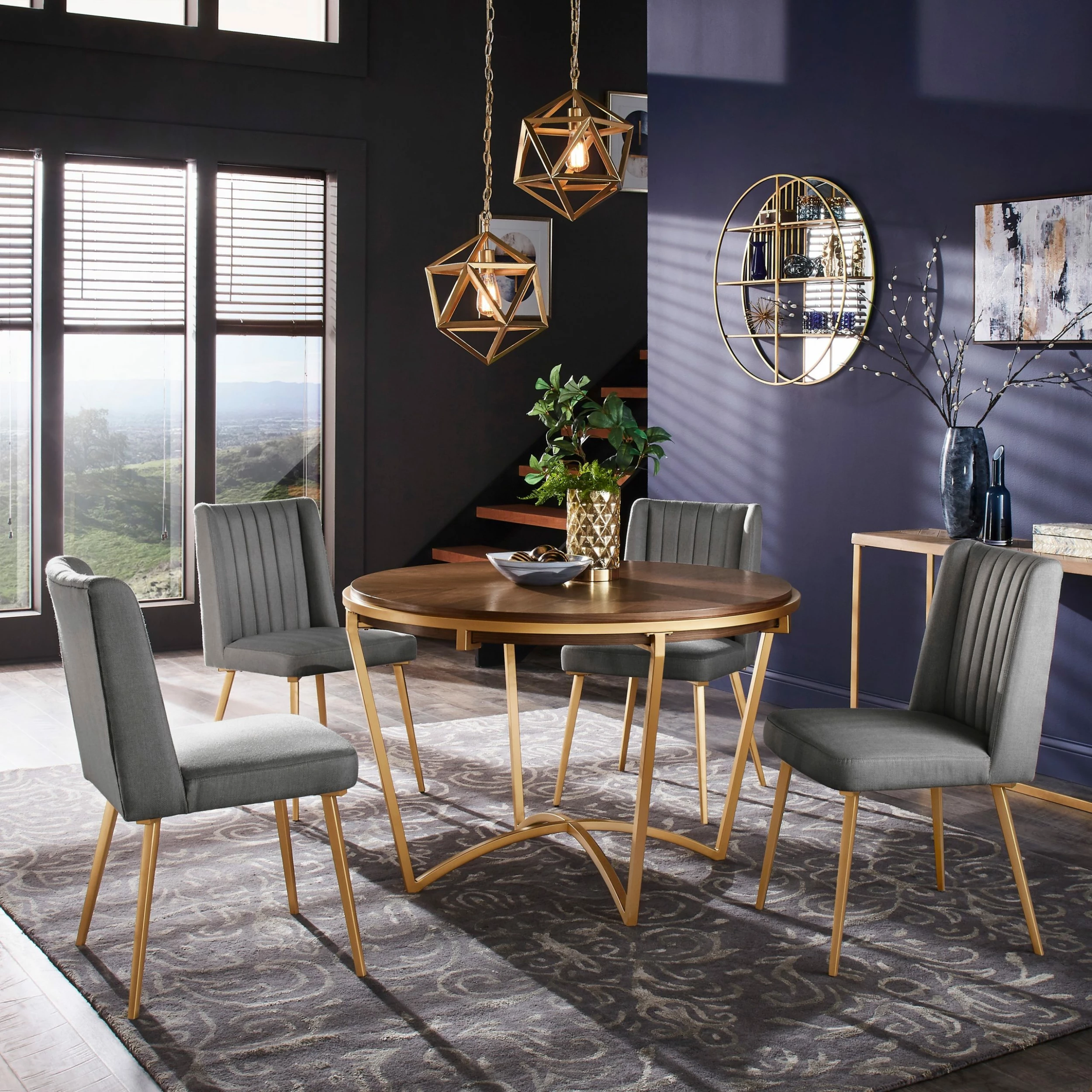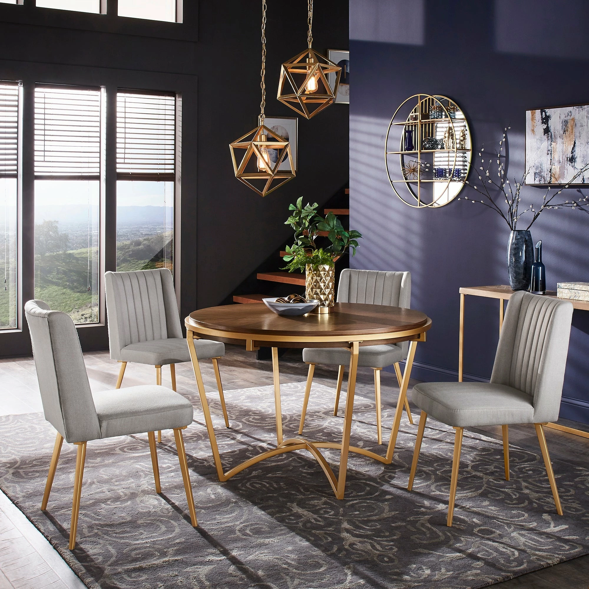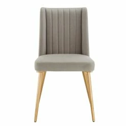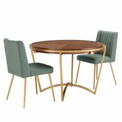 Create a fresh, modern look in your dining room with this Natural Wood and Gold from iNSPIRE Q Modern. With this gorgeous dining set, you’ll wow your guests with your eye for simplicity. Designed with ‘smart line’ detail, the dining table allows you to easily configure each chair around the base. Trendy fin-shaped detailing on each dining chair adds sophistication and avant-garde styling.