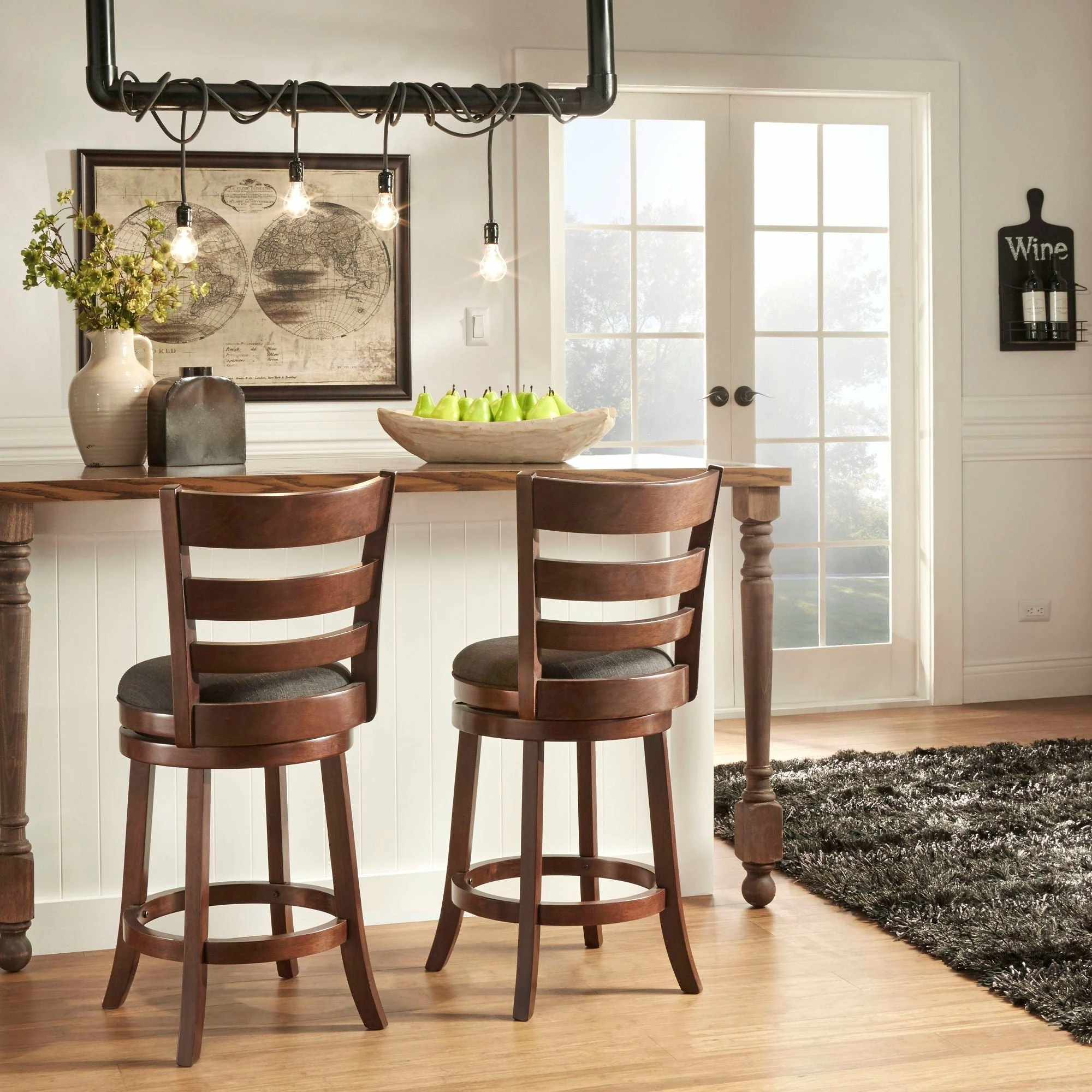Impress your guests with the Verona Counter Height Stool from iNSPIRE Q® Classic. With a convenient swivel and silky linen upholstery, this stool offers chic style. It is comfortable and sturdy enough for the man cave, but with dark cherry finish wood legs, is elegant and stylish enough to use for seating at a kitchen bar or island.