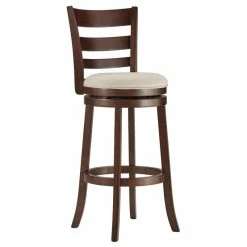 Impress your guests with this Verona ladder-back bar stool from iNSPIRE Q® Classic. It is comfortable and sturdy enough for the man cave, but with cherry wood legs, elegant and stylish enough for seating at a kitchen bar or island. The soft linen upholstery is available in various neutral shades that play a lovely complement to any decor.