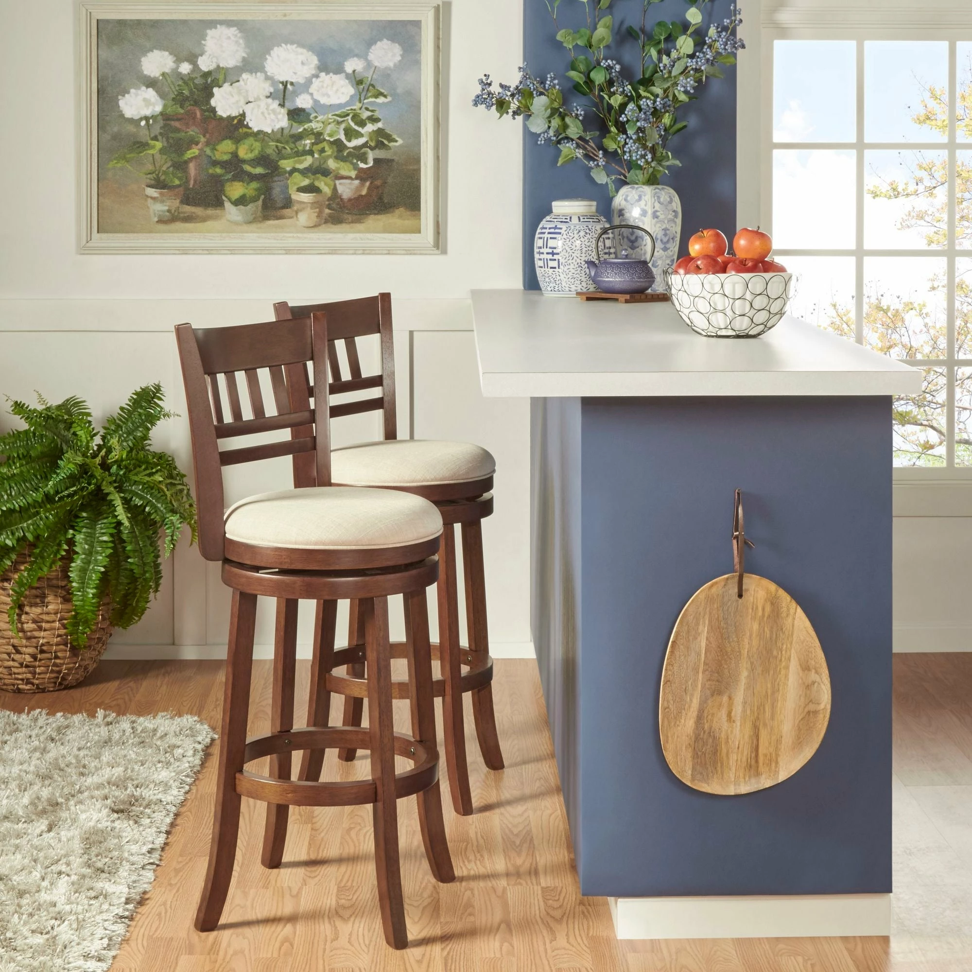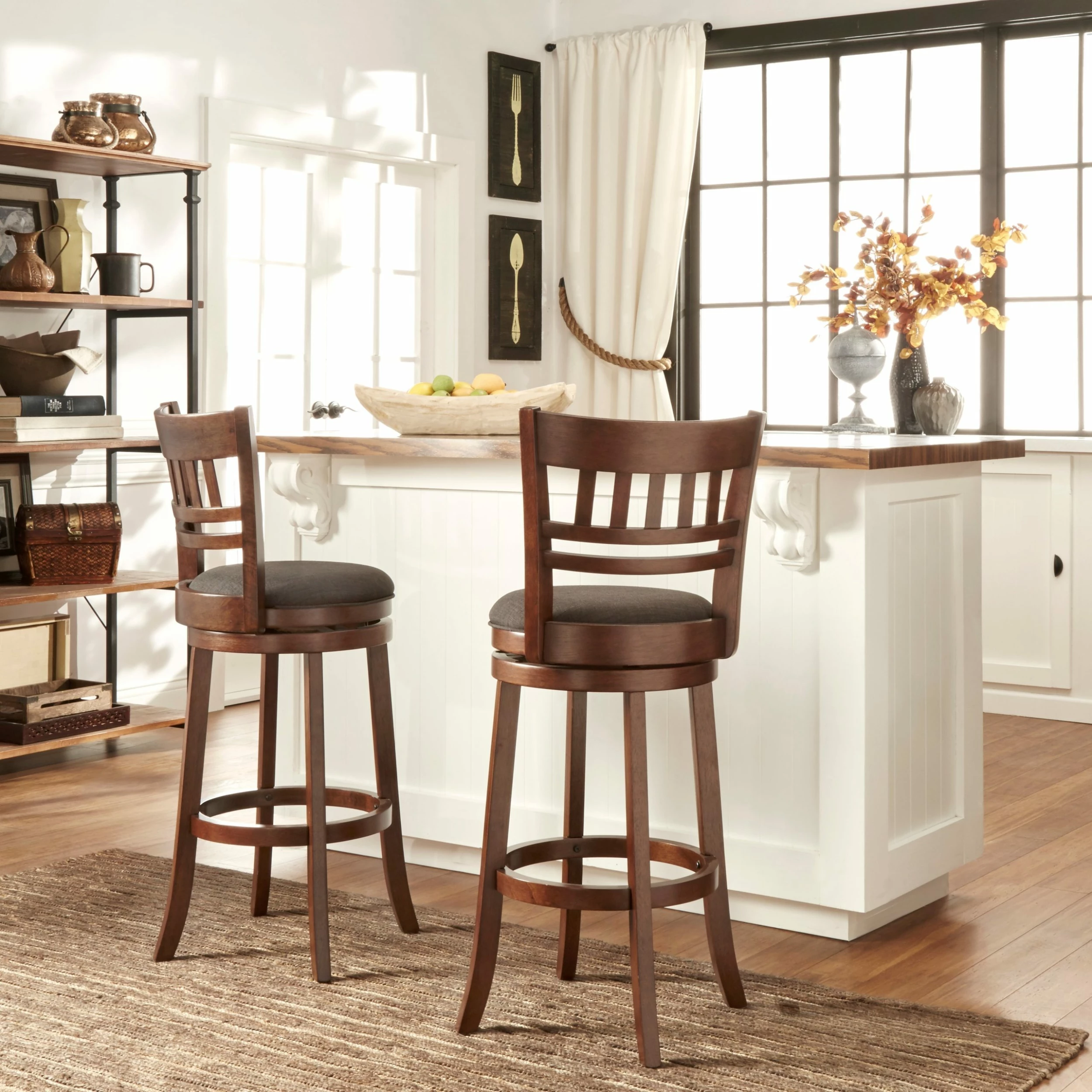 Impress your guests with this swivel Verona 29″ High Back Bar Stool from iNSPIRE Q Classic. It is comfortable and sturdy yet elegant and stylish, perfect for seating at a bar or kitchen island. Choose between a curved-back or lattice design to add to your kitchen space. Pub chairs are available in linen or faux leather with foam filled cushions, providing maximum comfort for you and your guests!