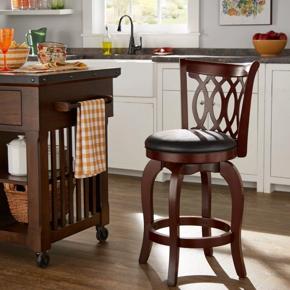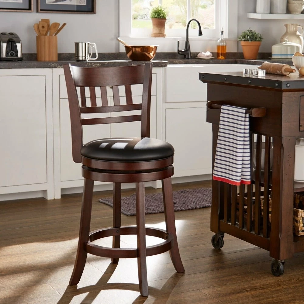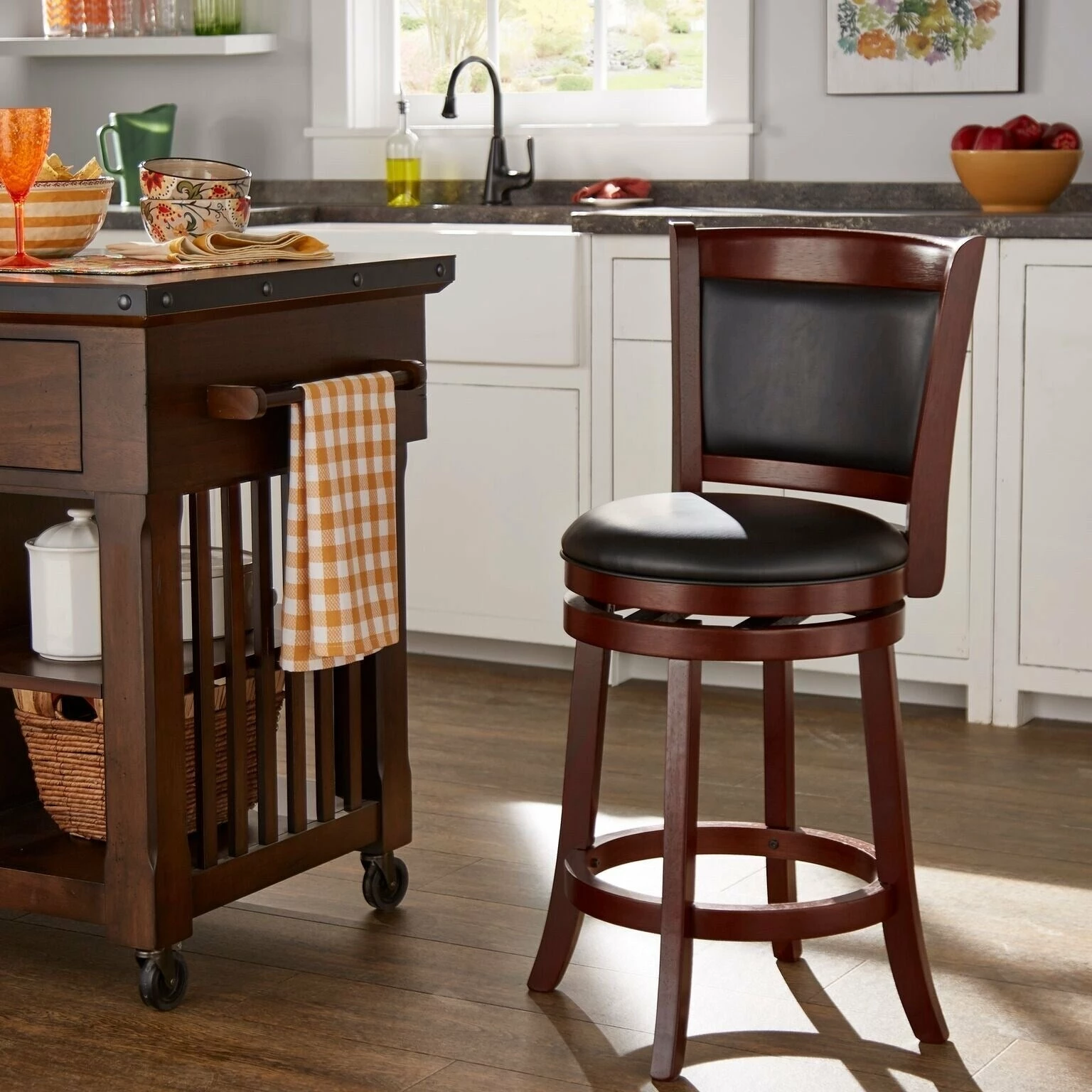 Add a modern touch to your decor with this stylish Verona counter-height stool from iNSPIRE Q Classic. The swivel stool features a solid wood frame and thick faux leather upholstery, making it durable enough to withstand years of use. The seat cushion filled with high-density foam for a plush feel. This modern, neutral design can be seamlessly incorporated into an array of indoor settings.