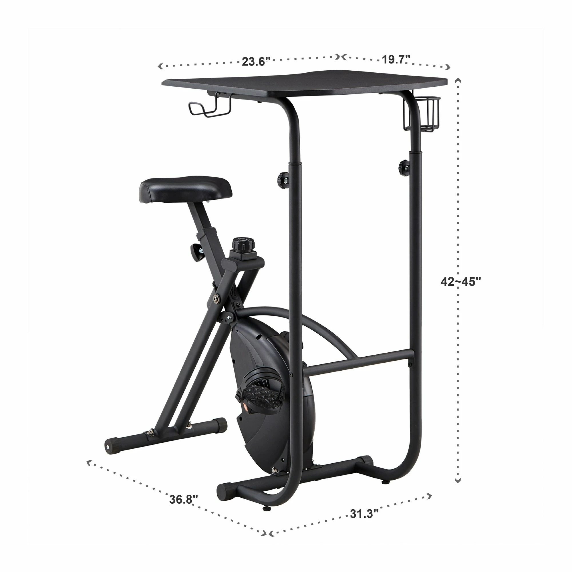 Stay active as you work with the Virgil Exercise Bike Desk by iNSPIRE Q Classic. Perfect for spaces large and small, this ergonomic piece merges an exercise bike with a desk. Comfort and security comes from the padded seat and textured pedals with straps. The adjustable desktop features two side holders for a water bottle and your headphones, so everything you need is in one convenient place.