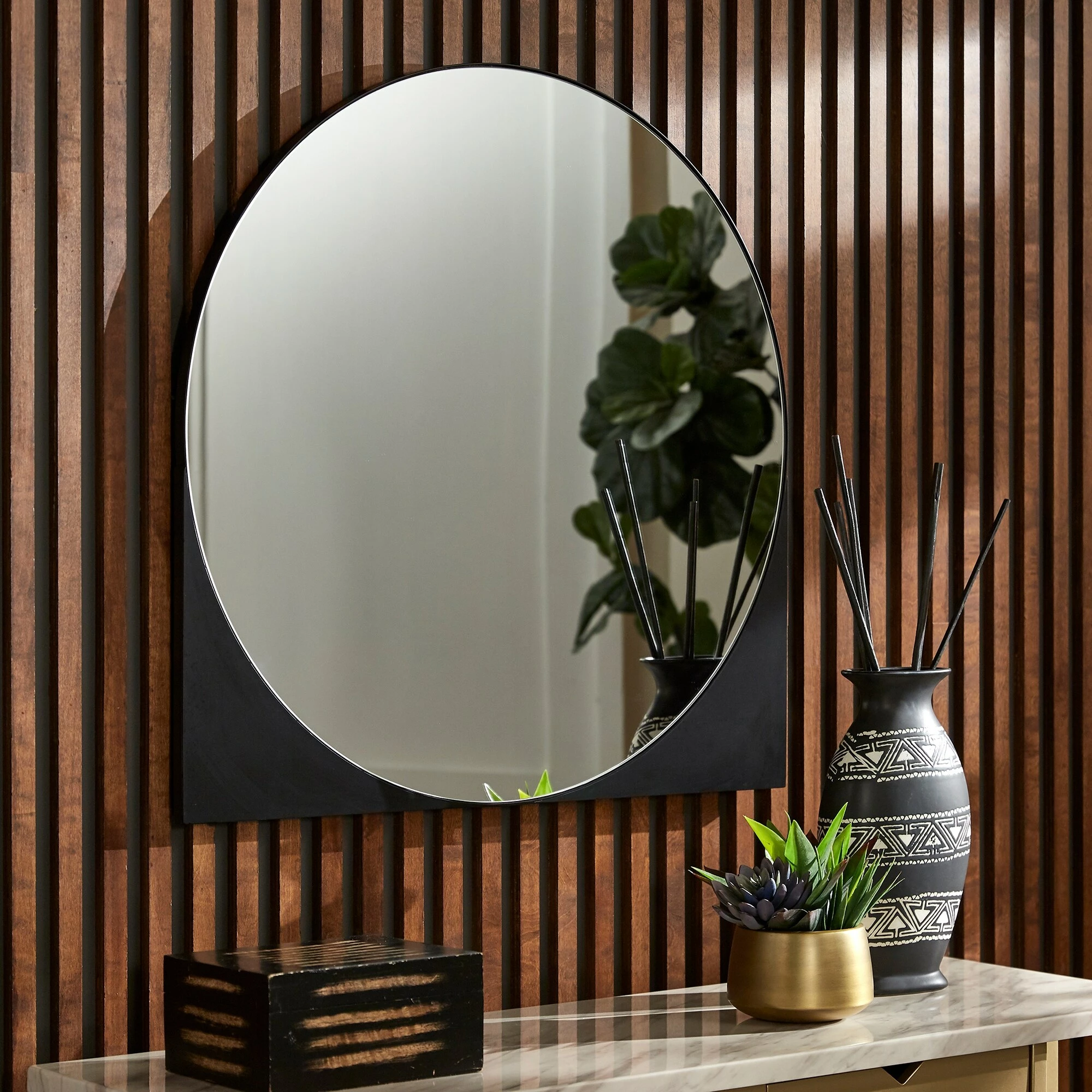 Any way you look at it, the Vittoria Metal Circle Wall Mirror from iNSPIRE Q Bold, is a winner. The circular mirror has a squared off metal base that creates a stunning statement. Reminiscent of art deco design, the simple and pleasing design is the perfect accent in any room.