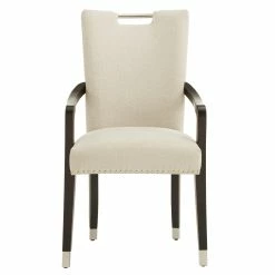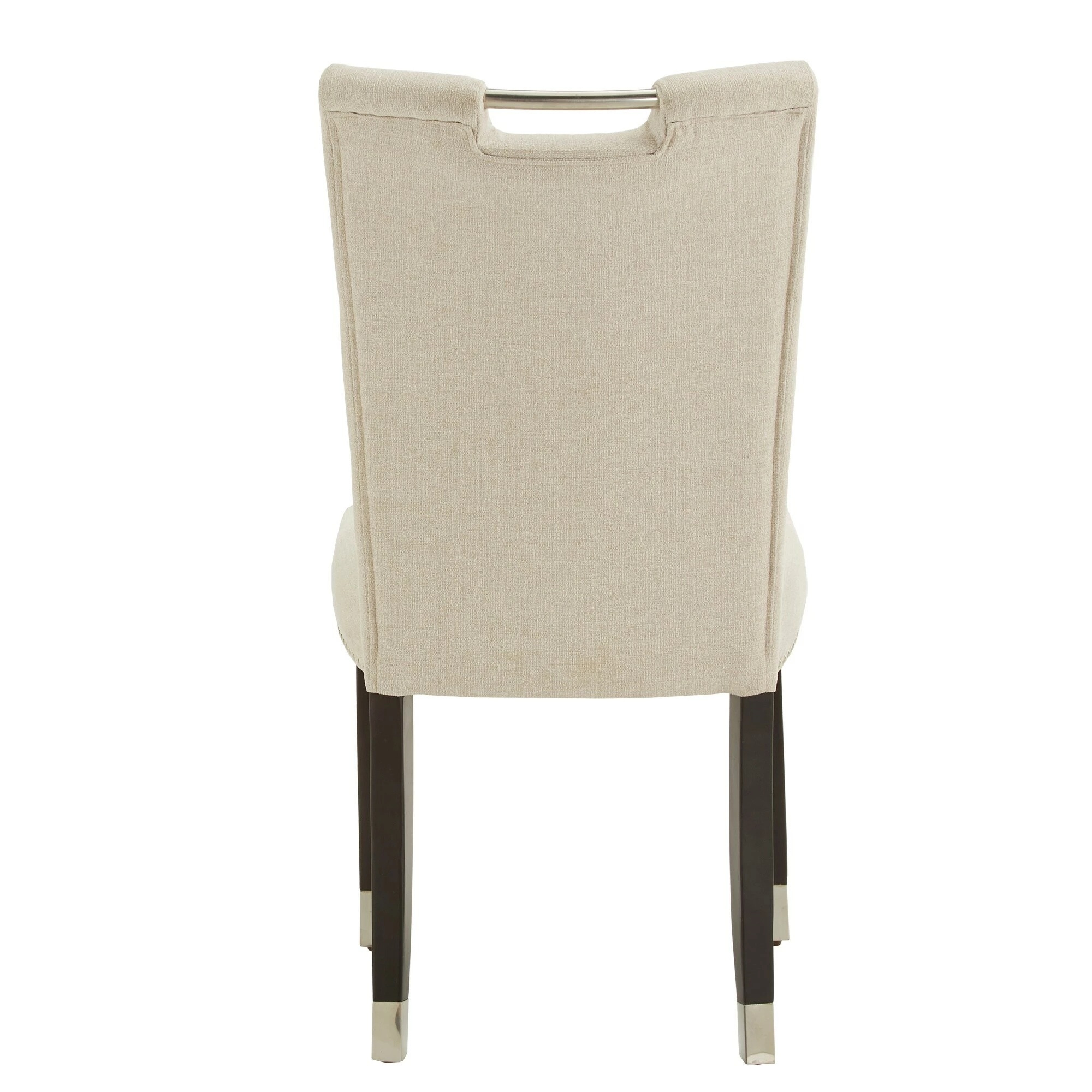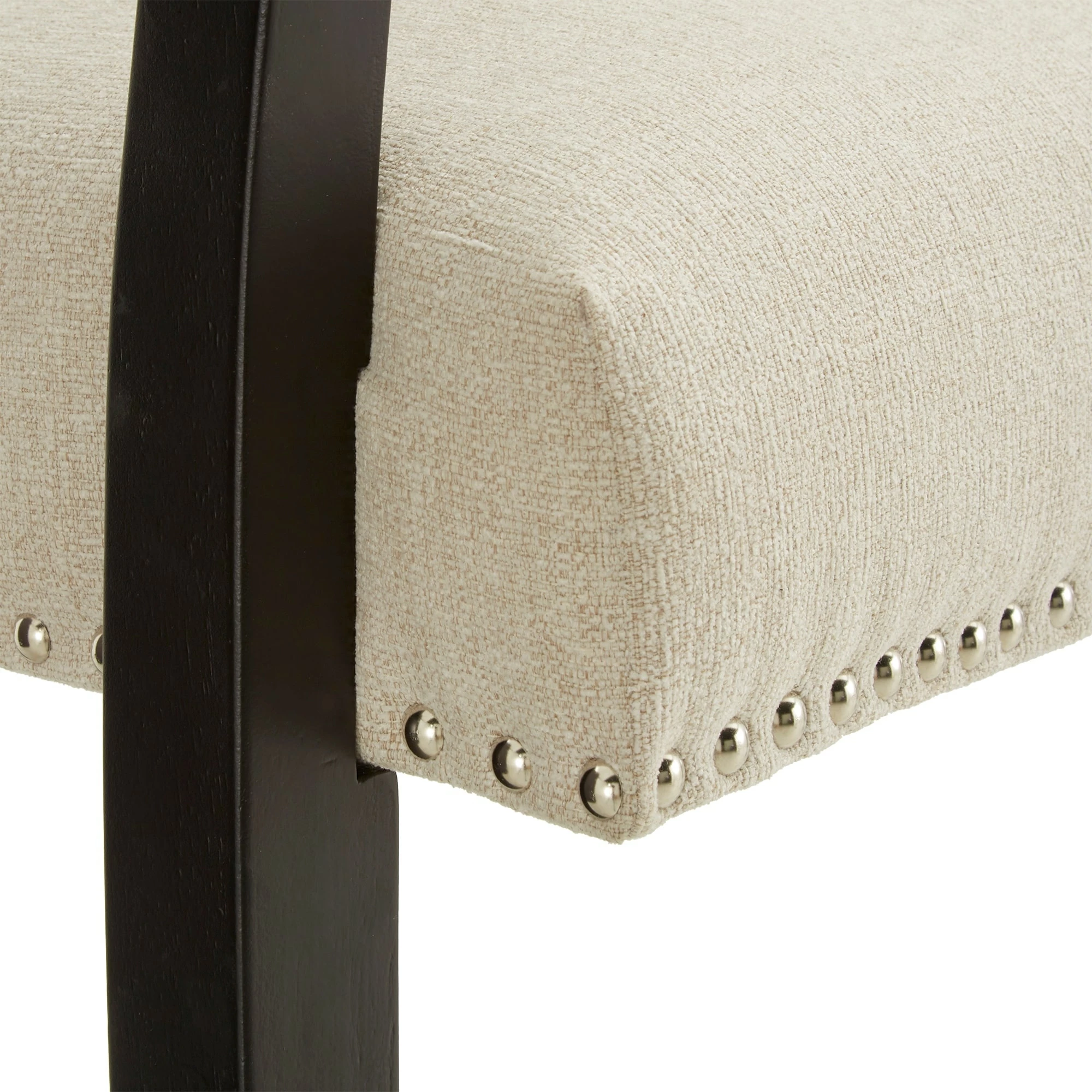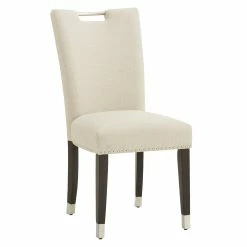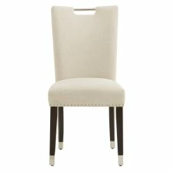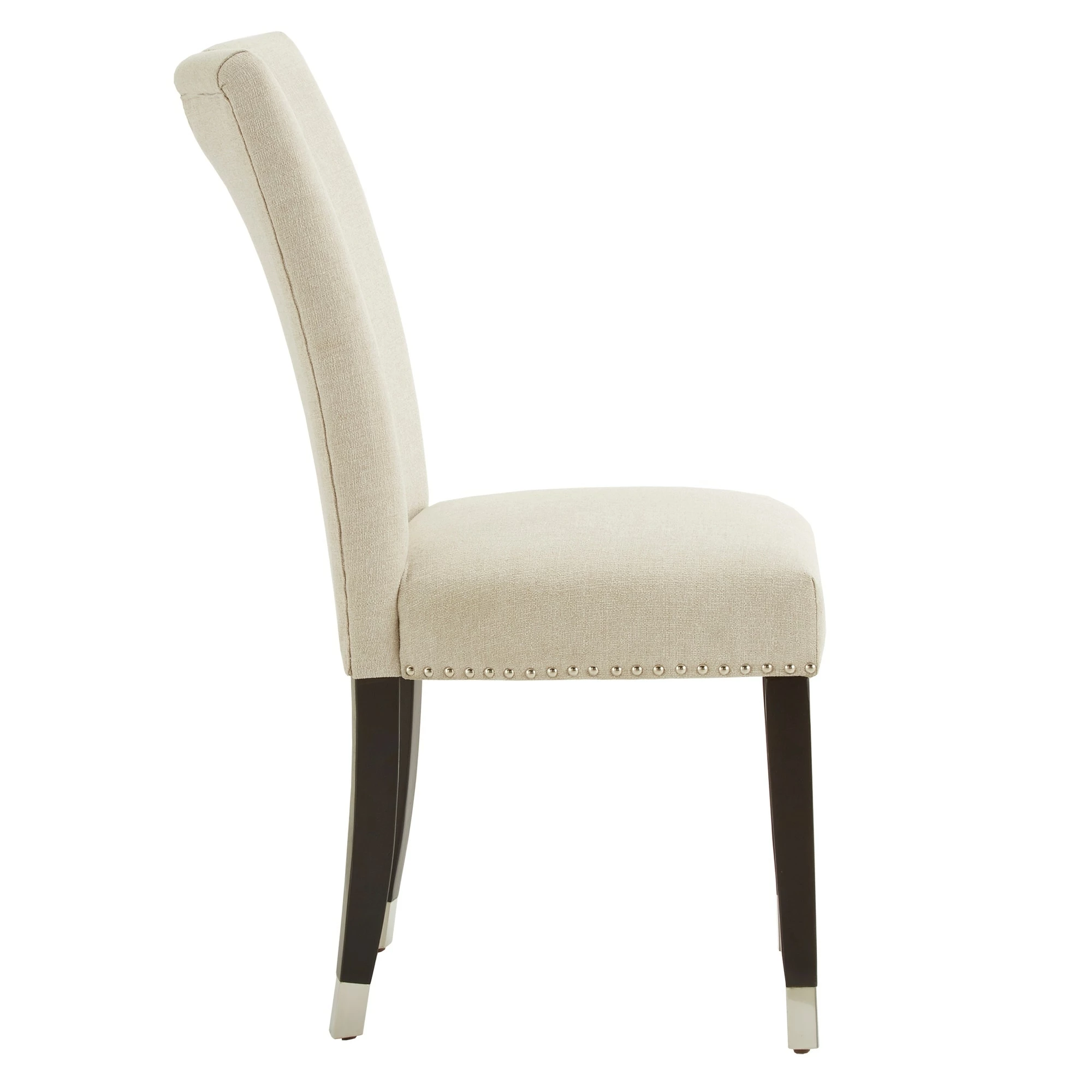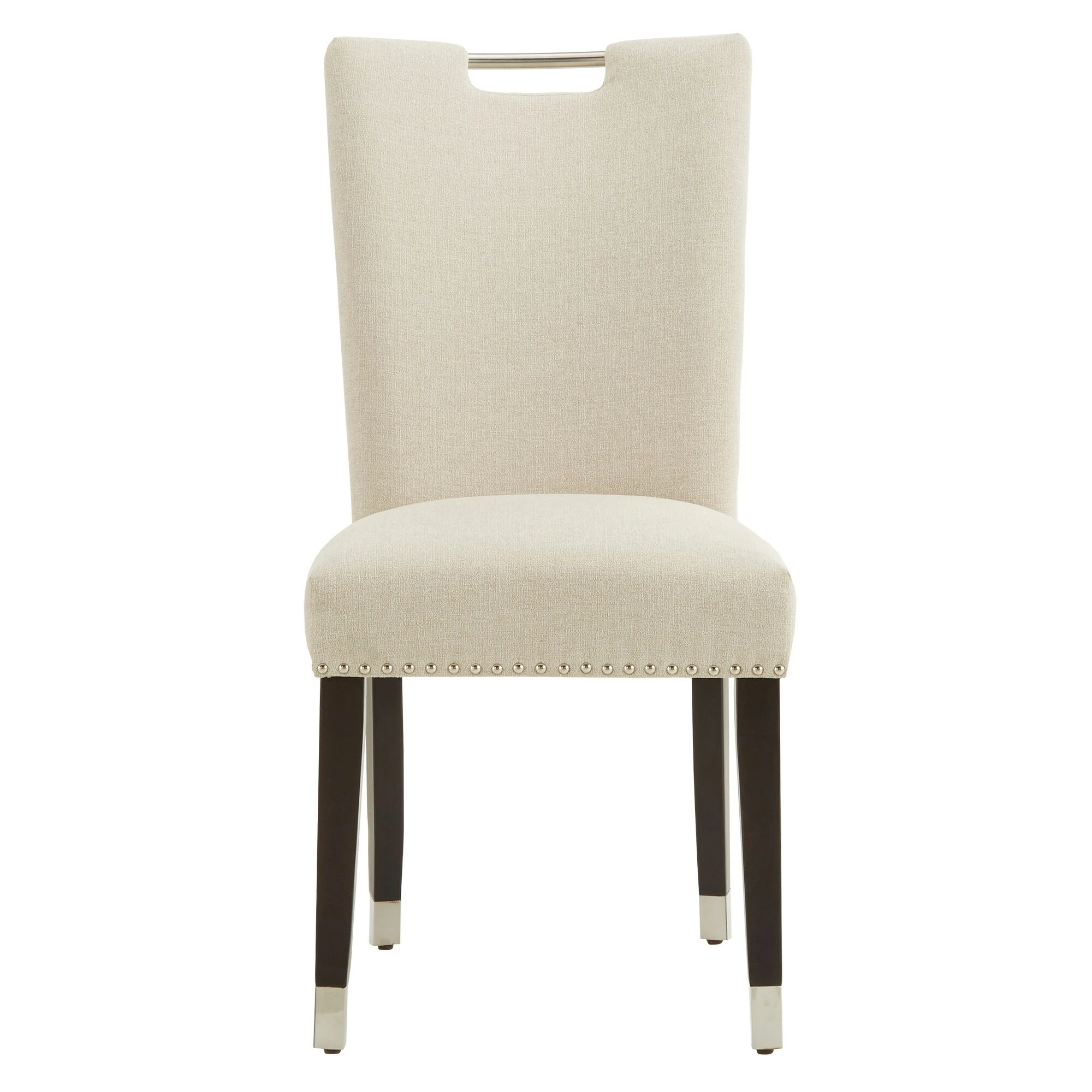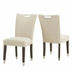 Looking to add a bright pop to your dining room? Well, no look no further. With your choice of arm or armless, the Willa Heathered Weave Parson Dining Chair (Set of 2) is a fantastic addition to any dining space. Most style designs will not be disrupted by the neutral tones of beige and black of this chair. It can sparkle in nearly any setting with the shiny metal handle, nailhead trim, and leg caps. Relax against the curved back of the chair and into the plush foam seat. The arm option offers a great place to rest your elbows. Solid wood and rubber wood comprise the frame to make it durable and stain resistant.