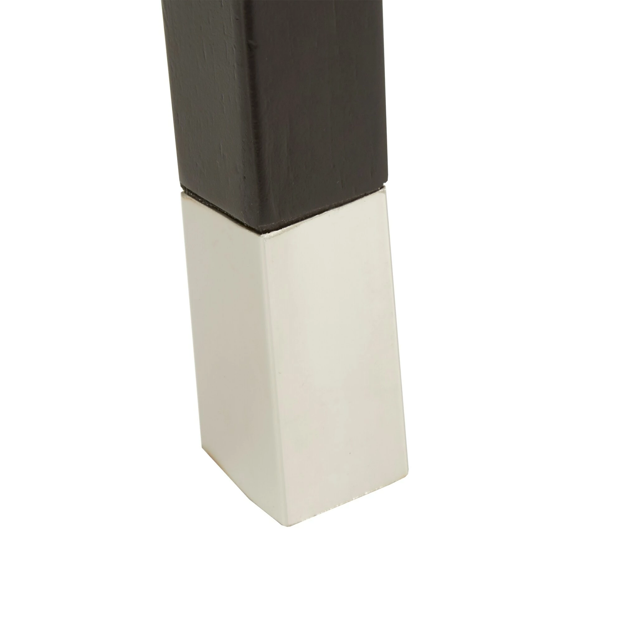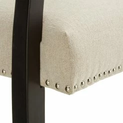 - Made with solid wood, rubber wood, foam, fabric, and metal