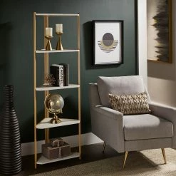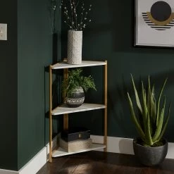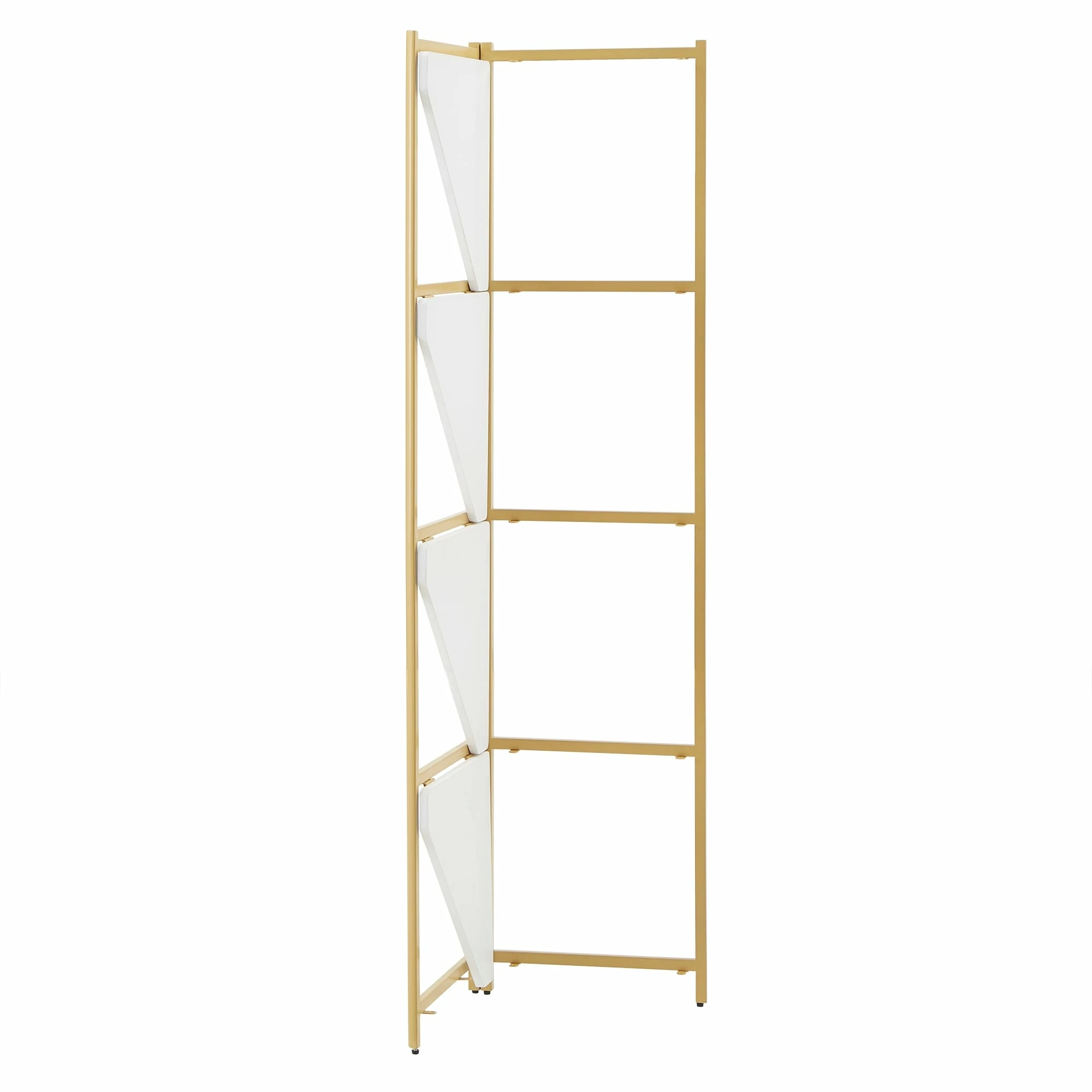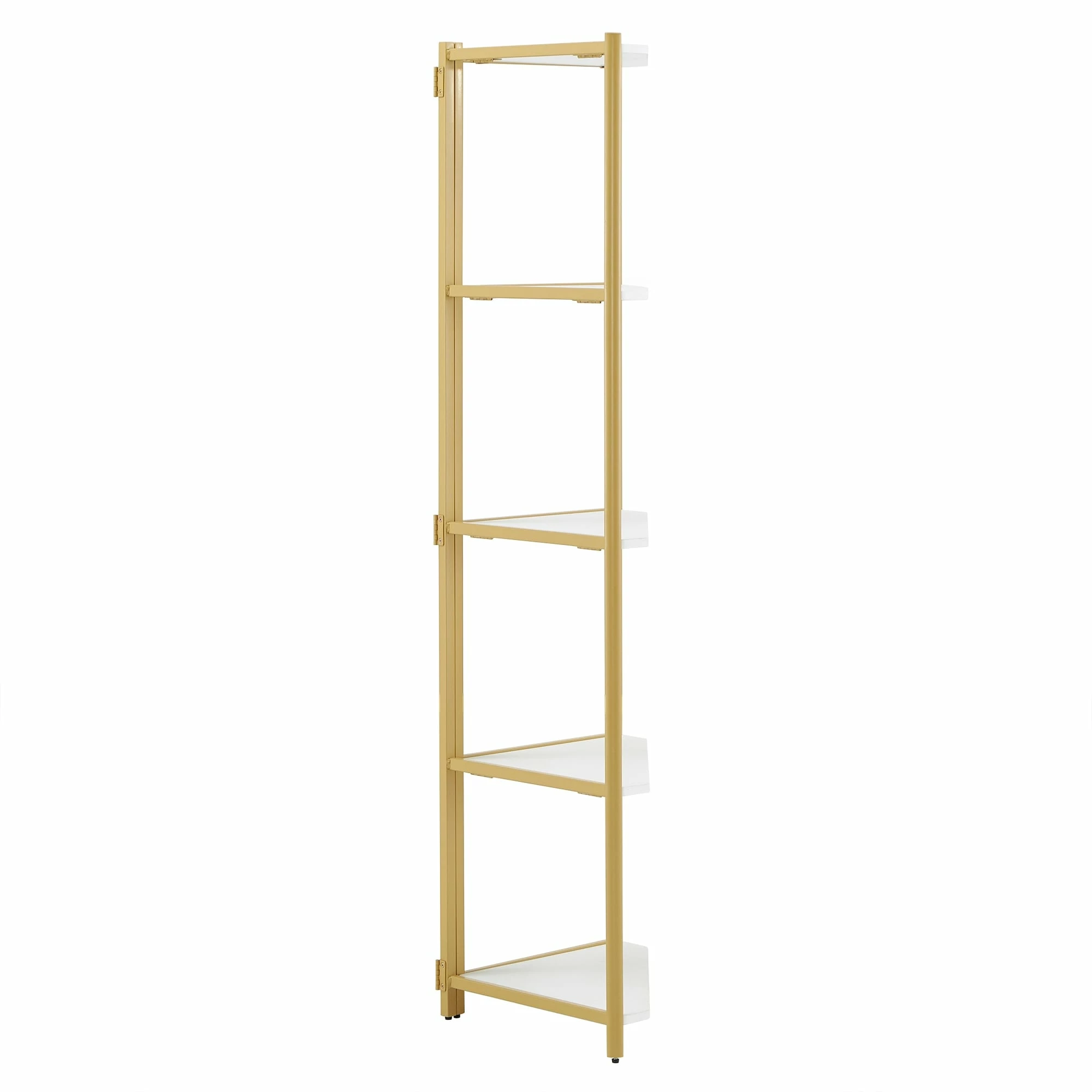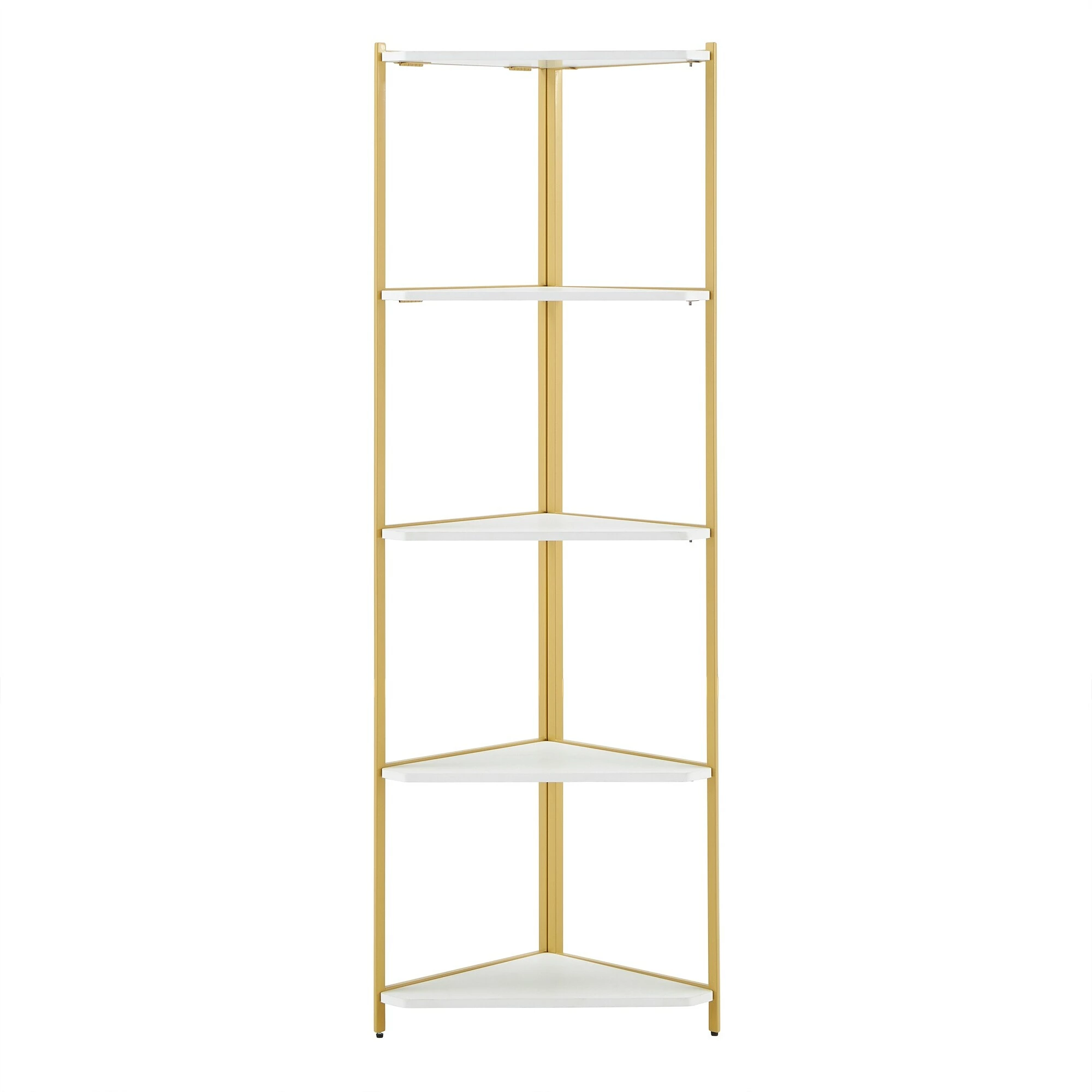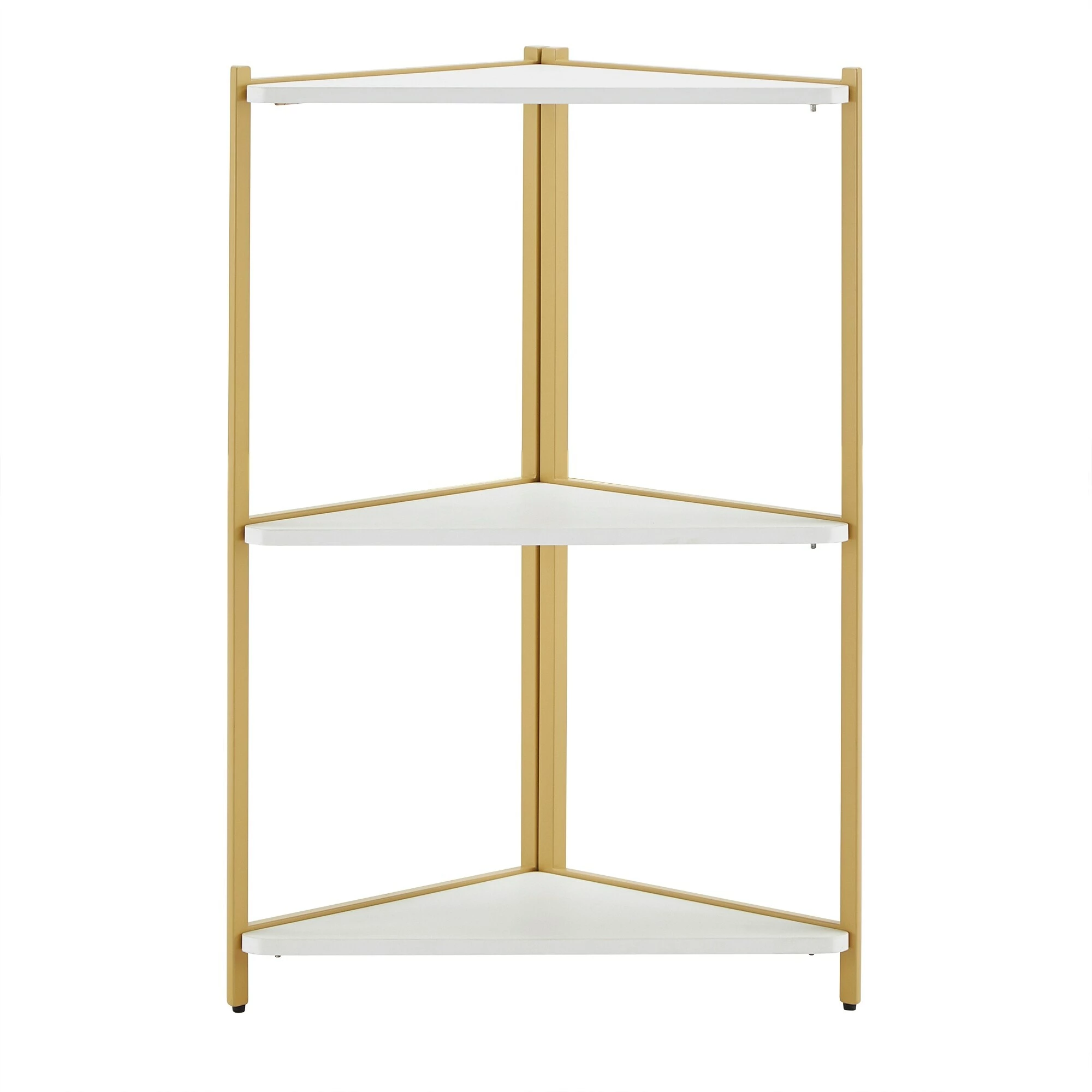 Round out any room of your home with the Winnie Two-Tone Corner Bookcase by iNSPIRE Q Modern. Sleek and simple, this lovely piece boasts a minimalist design that perfectly fits into any corner. Smooth white shelves provide a great spot to display your belongings, while a gold-finished metal frame adds a touch of glam. Pair this chic piece with any bold or contemporary design styles.