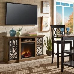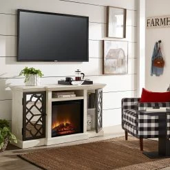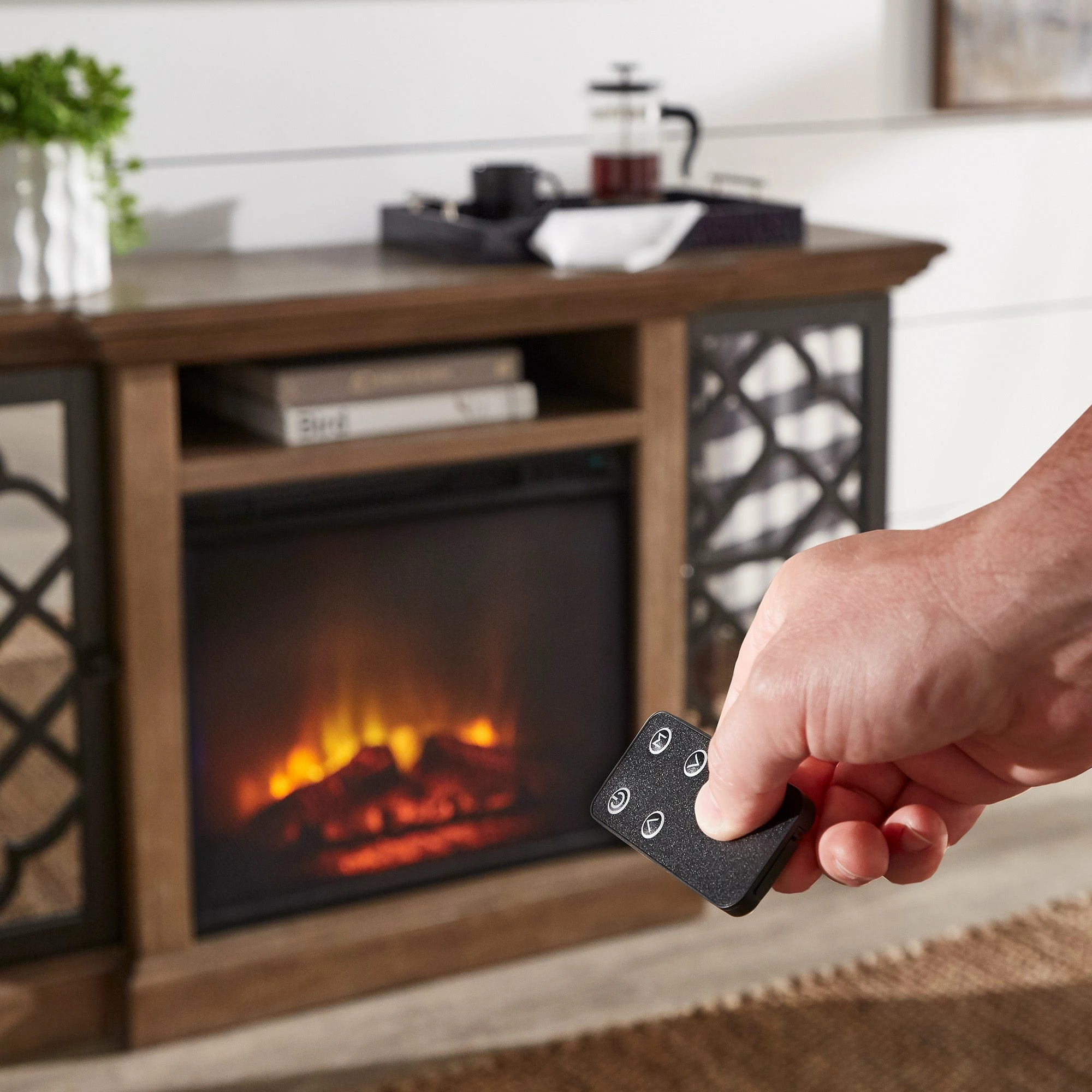 Bring warmth and charm to your home with the Zurich Wood Black Metal Electric Fireplace by iNSPIRE Q Modern. Stylish and innovative, this state-of-the-art piece comes with an integrated heater and lifelike flames, all conveniently controlled by a remote. This innovative fireplace also offers storage with two cabinets, both of which feature a mirrored surface with decorative mullions.