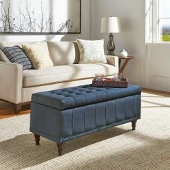 Best Pirce ๐ St Ives Lift Top Tufted Storage Bench By INSPIRE Q Classic Navy Blue Linen ๐งจ